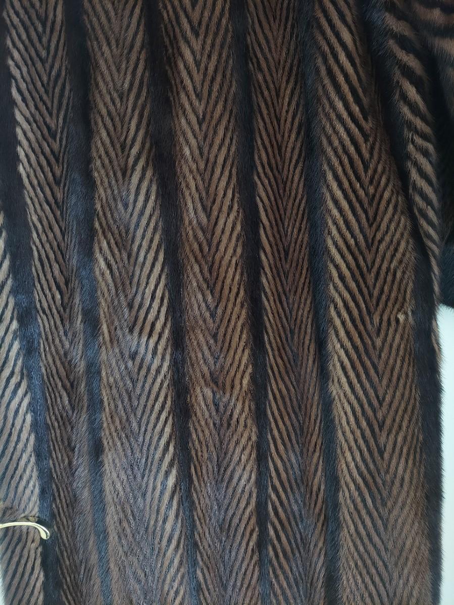 Beautiful fur coat that appears to be a mid century mink, expertly sewn in a chevron pattern. There are no material or car labels, only the custom tag for the original owner. Fits approximate size small. Please see photos for details. Shipping available