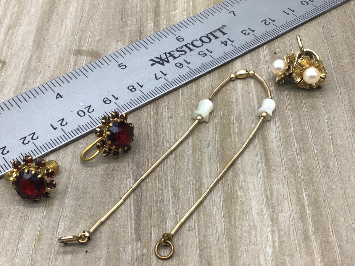 Vintage Chezvakia Red Earrings. Gold Filled Bracelet Pearl and Gold Filled Earrings. Vintage