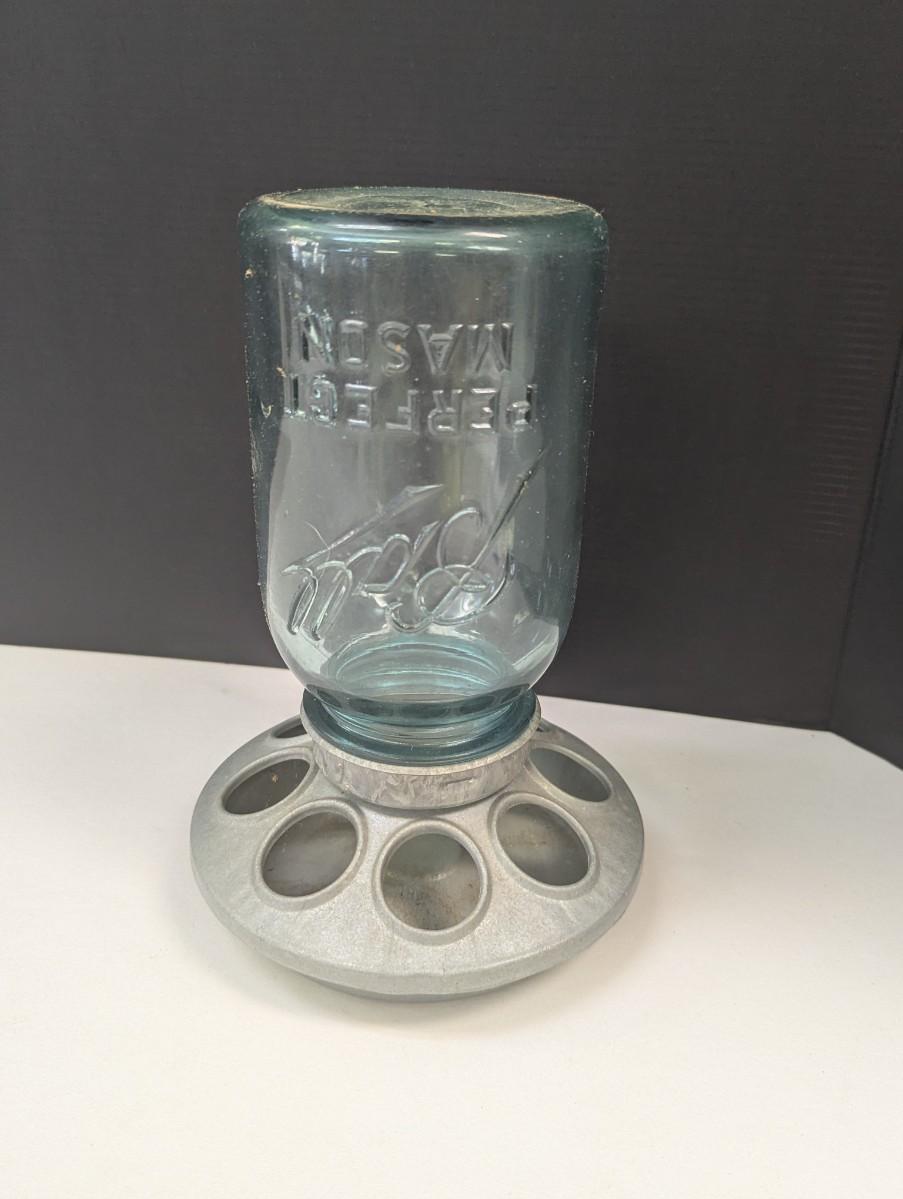 Vintage Chicken Feeder w/ Ball Glass Jar Farm House