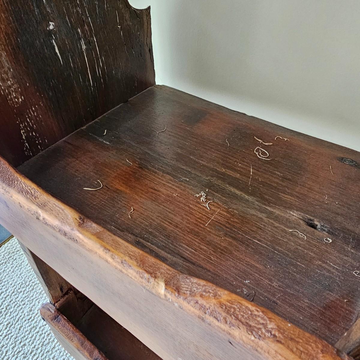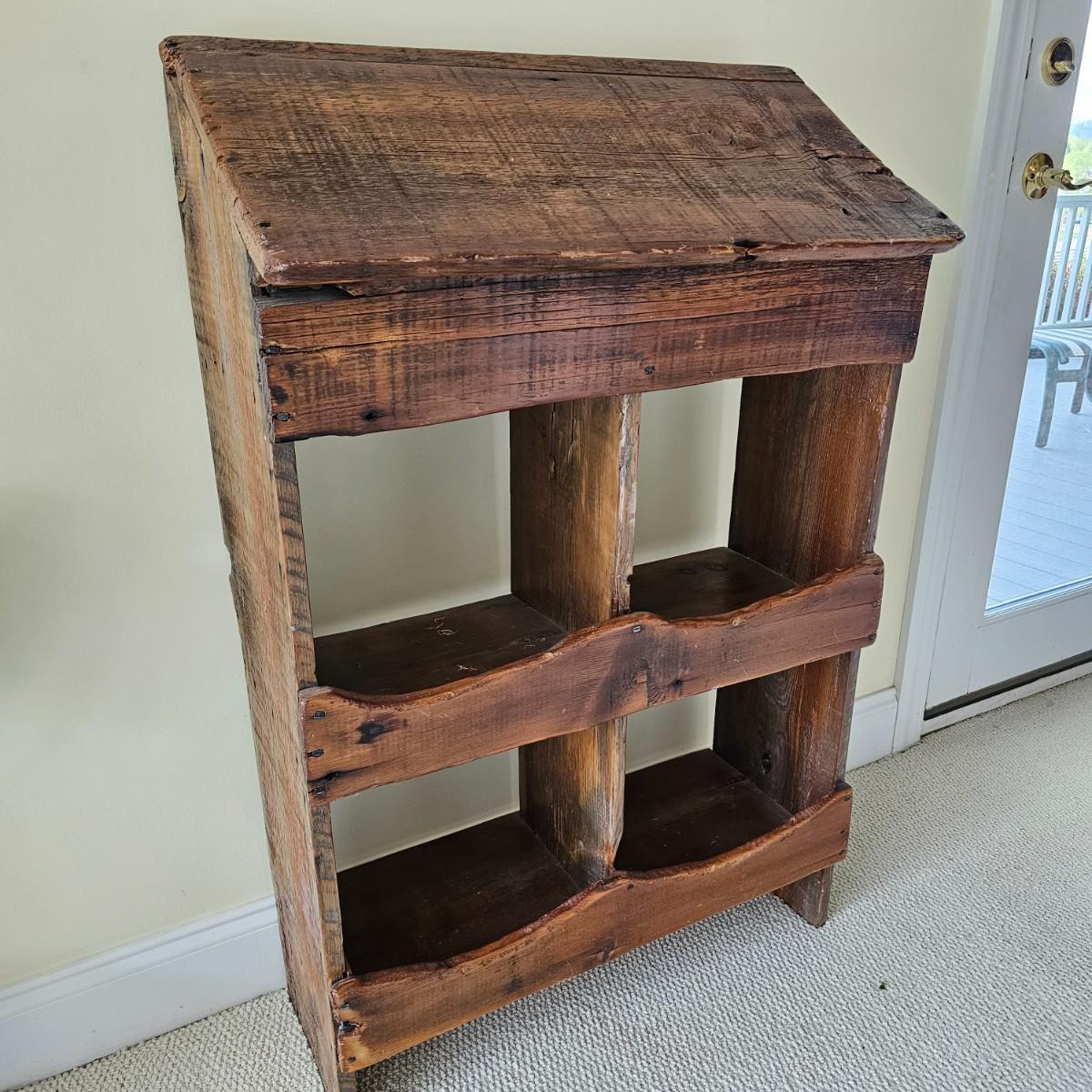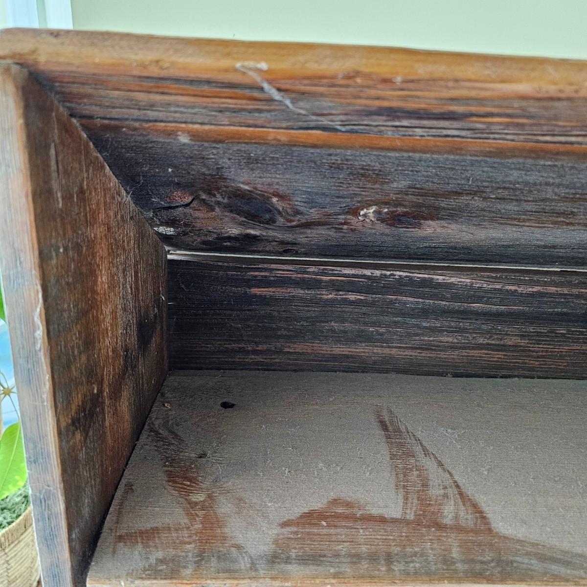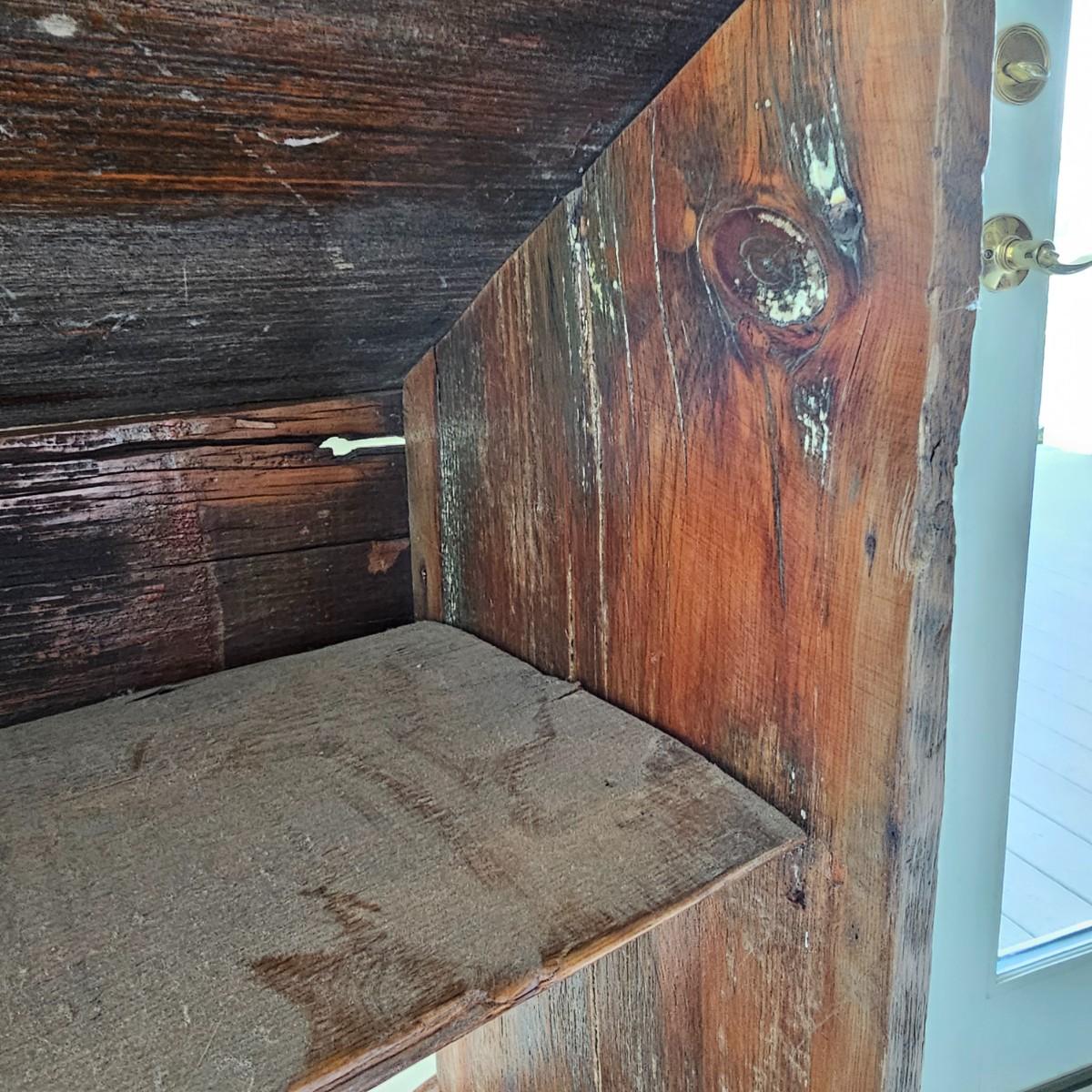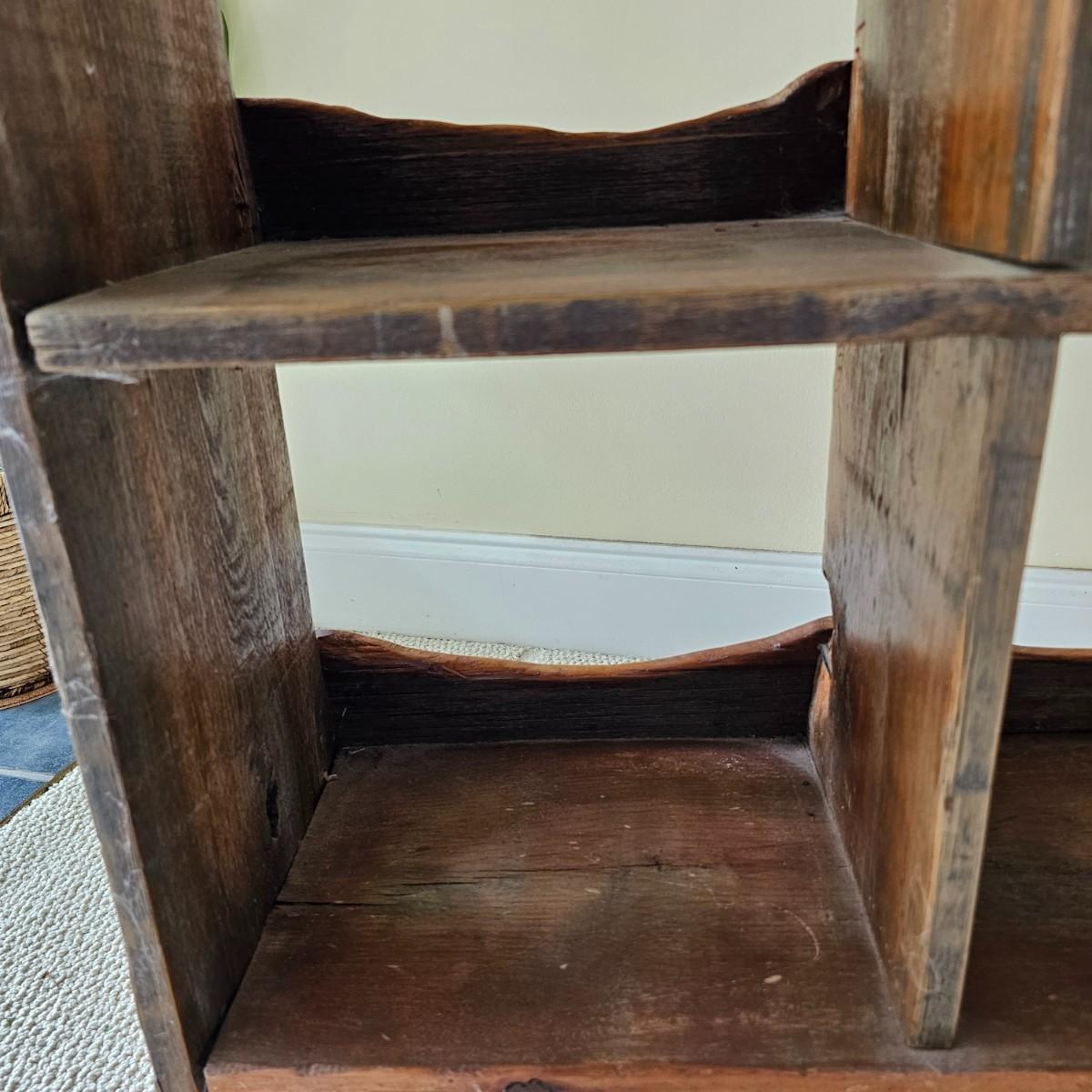 Old time chicken roosting box, made from solid oak. Boards may have been barn wood at one time. Assembled completely with cut nails. Box measures 12" x 27" x 42"H, shows wear marks at front from years of use. See photos for details. Local pickup only.
