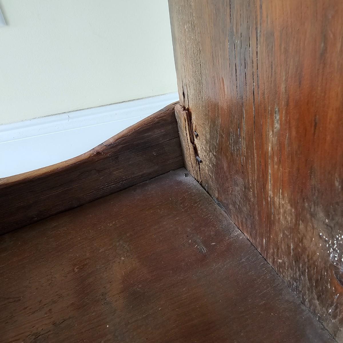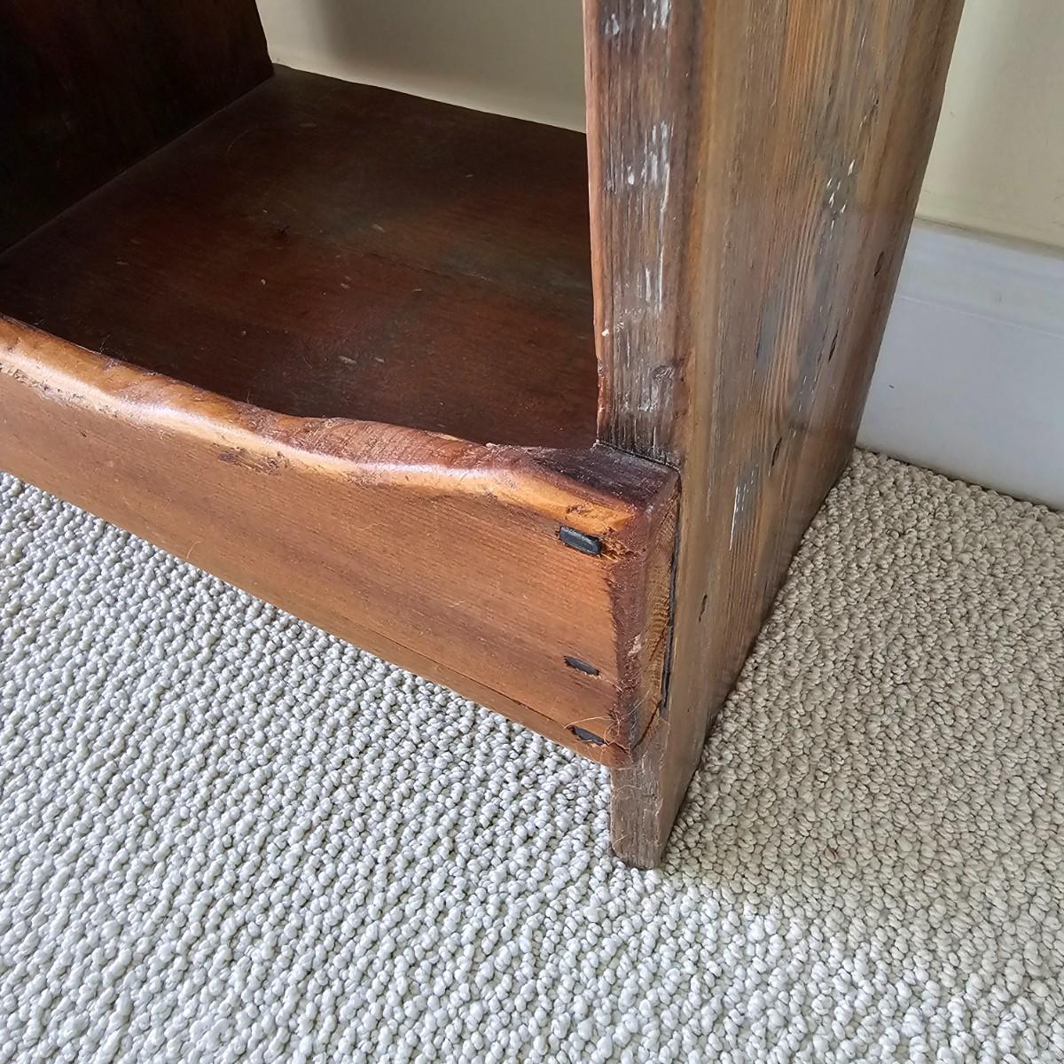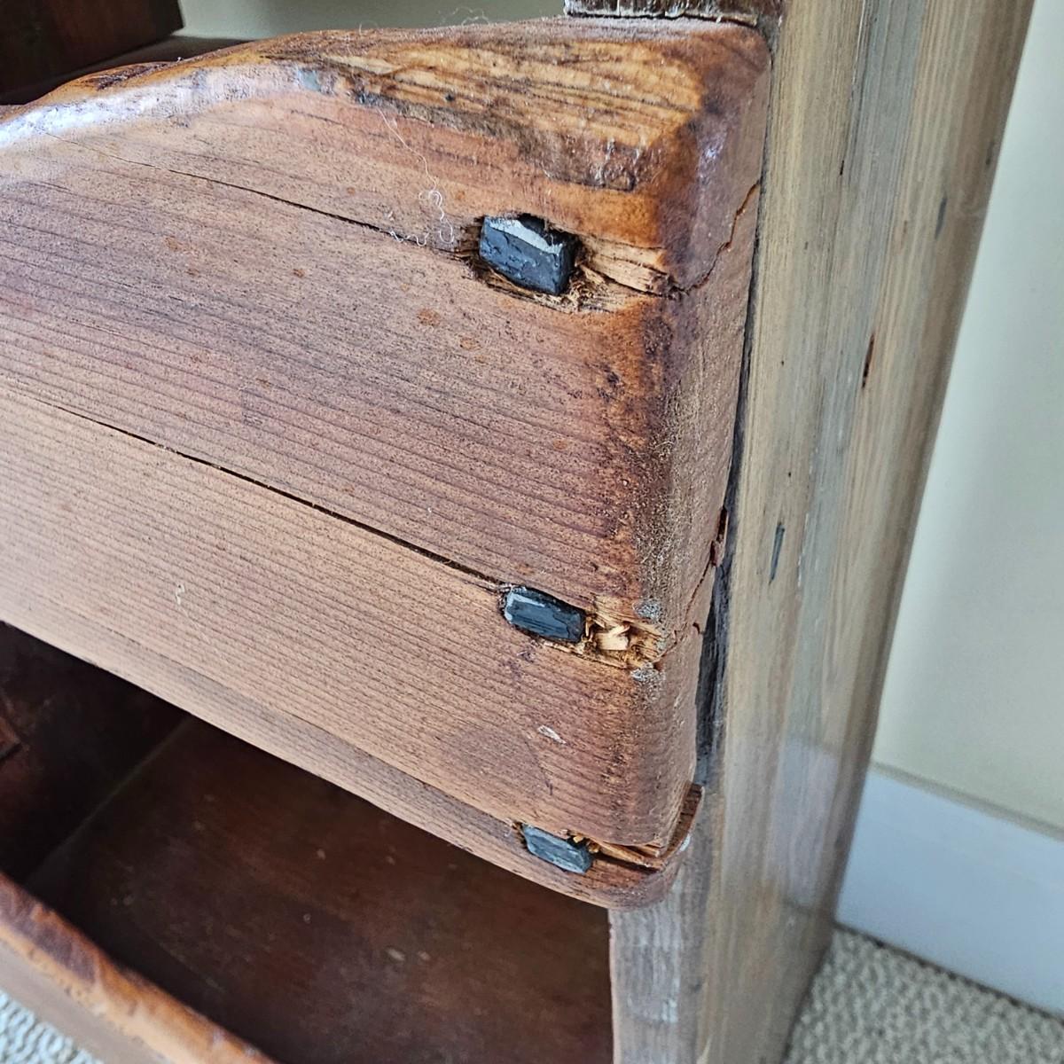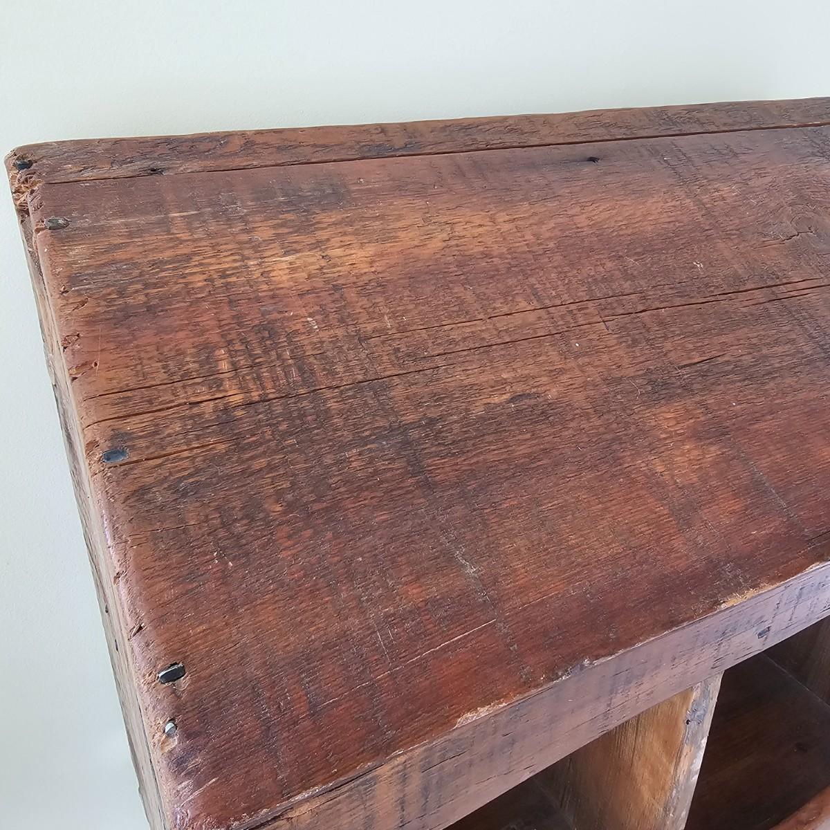 Old time chicken roosting box, made from solid oak. Boards may have been barn wood at one time. Assembled completely with cut nails. Box measures 12" x 27" x 42"H, shows wear marks at front from years of use. See photos for details. Local pickup only.