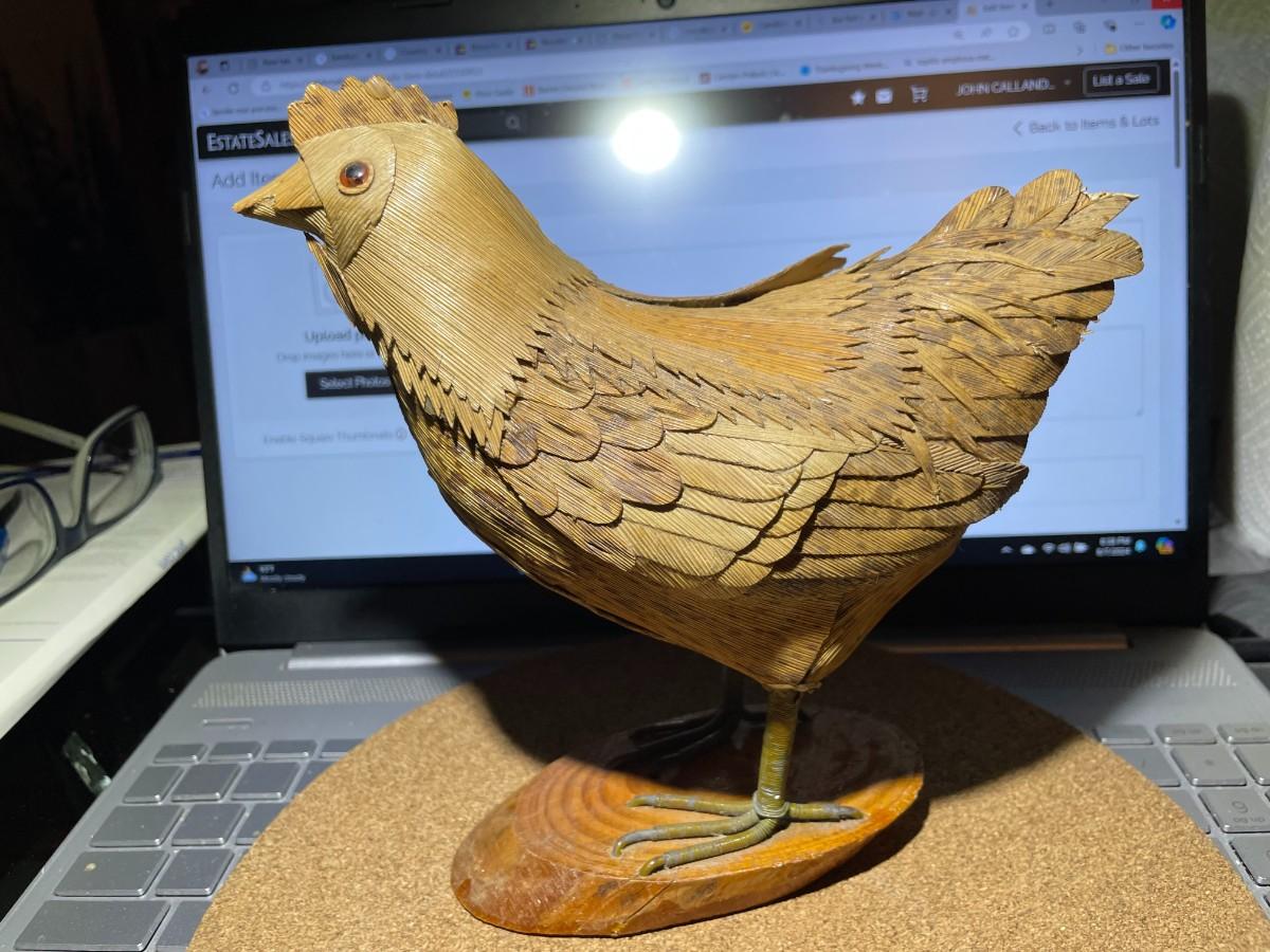 Vintage Chicken/Rooster Bamboo Like Figure 7" x 7.25" in Fair-Good Preowned Condition. $10 Domestic Shipping.
