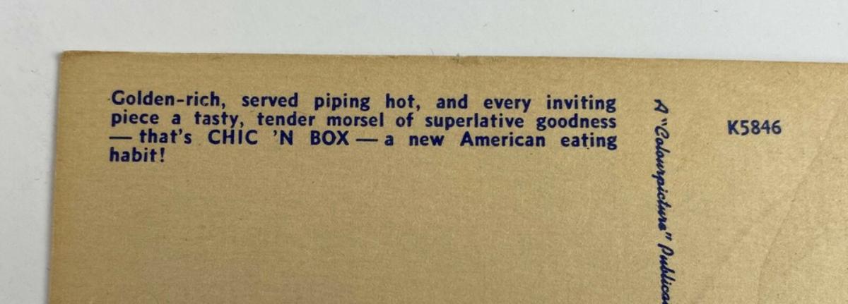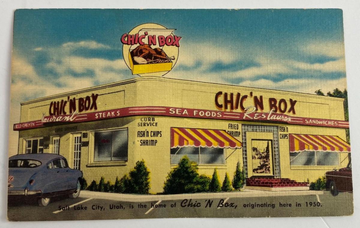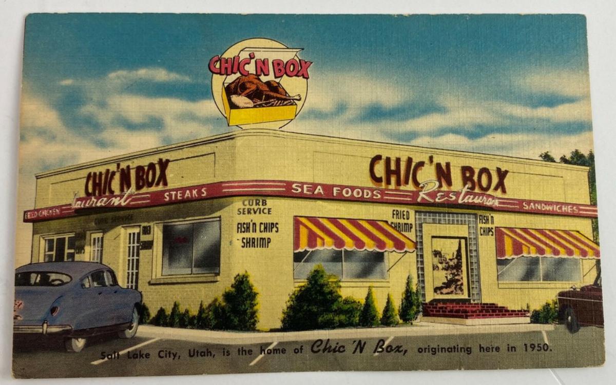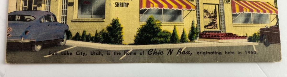 vintage CHIC'N BOX SLC UTAH ROADSIDE RESTAURANT ADVERTISING POSTCARD 1950s