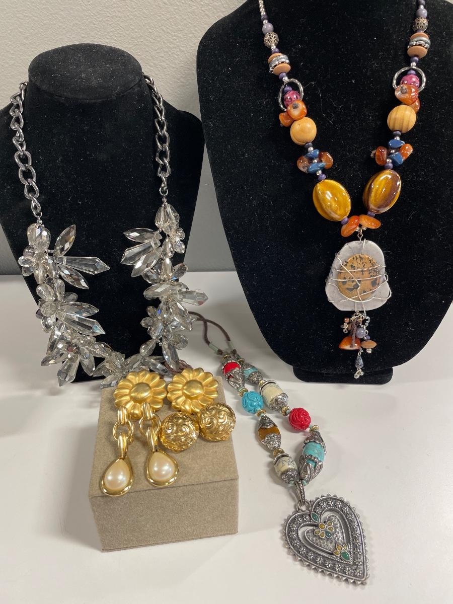 Vintage Chicos necklaces & 3 earrings