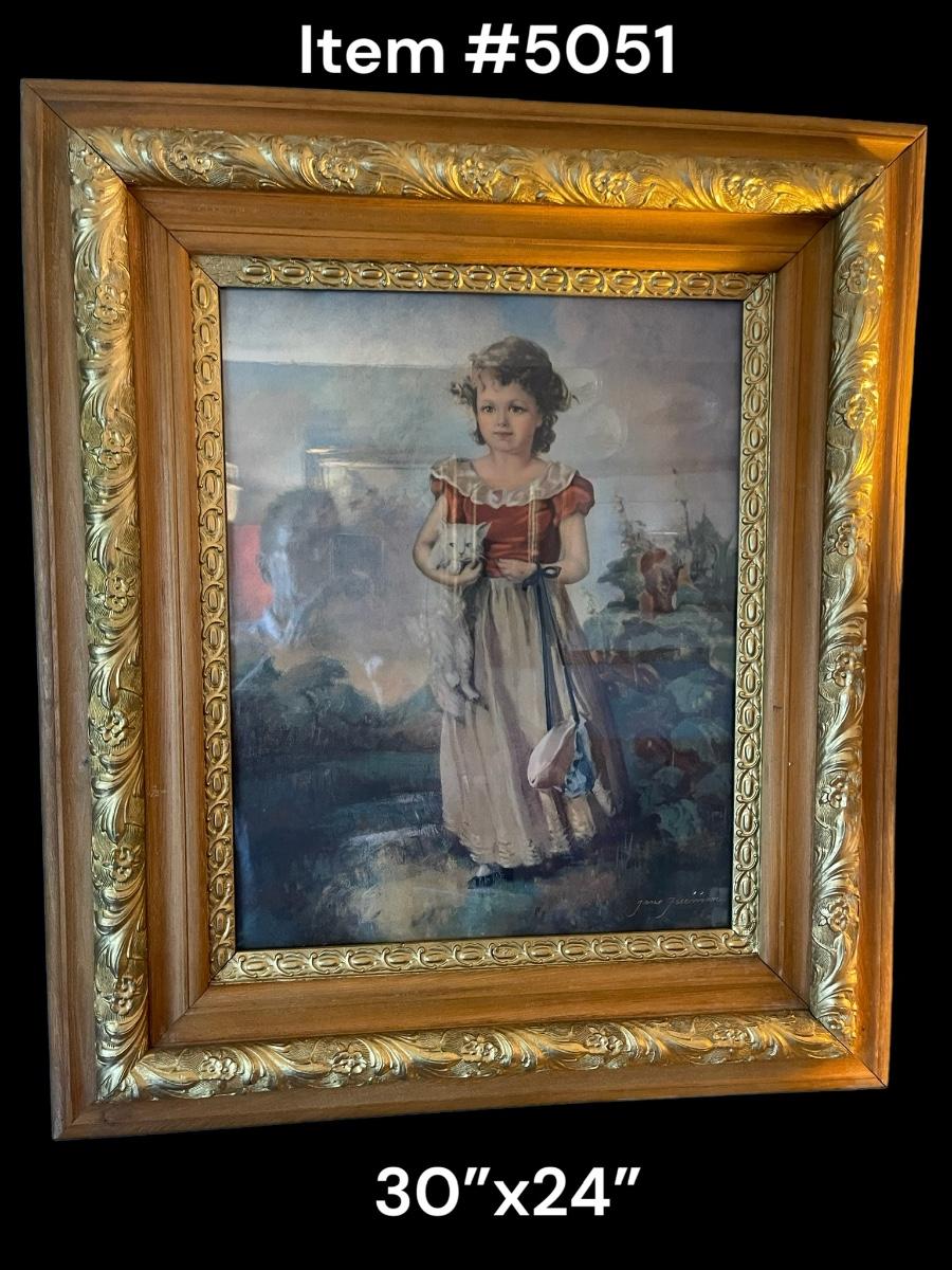 & Jane Freeman Girl and Kitten Heavy Nice Vintage Matching Frames $75 each or Both for $110. 30 x 36