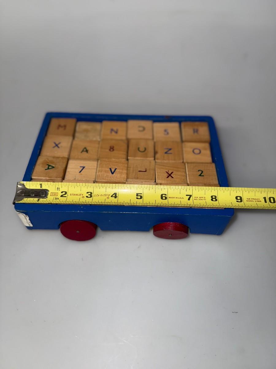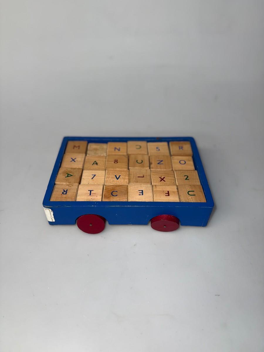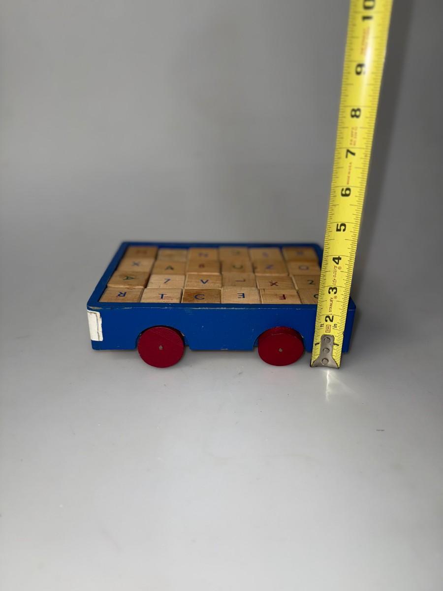 Vintage Children's ABC's Blocks in a blue car with red wheels
