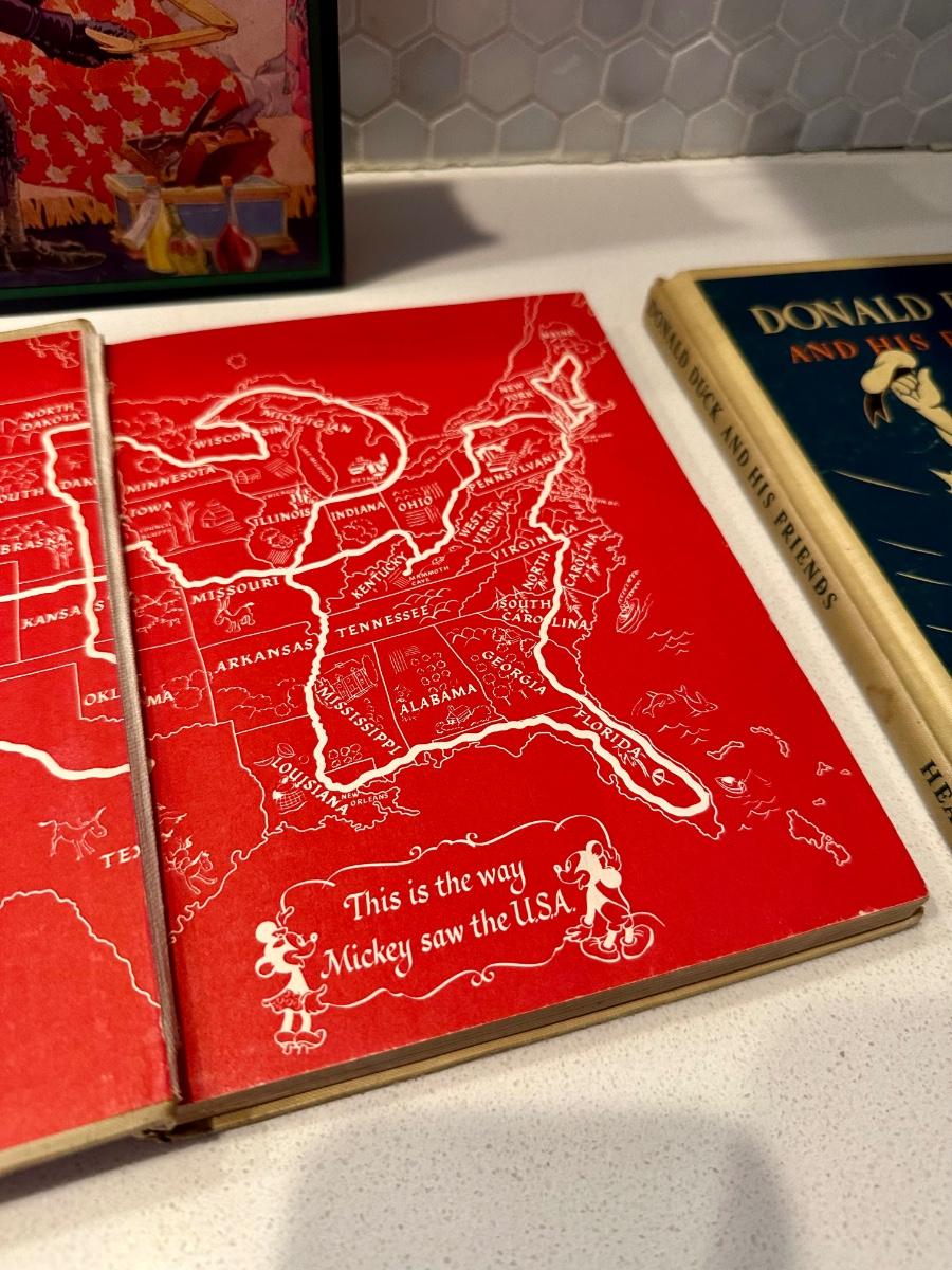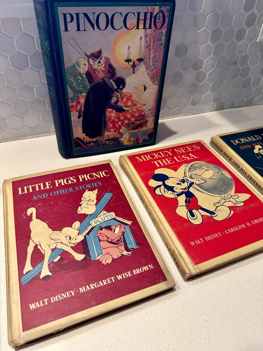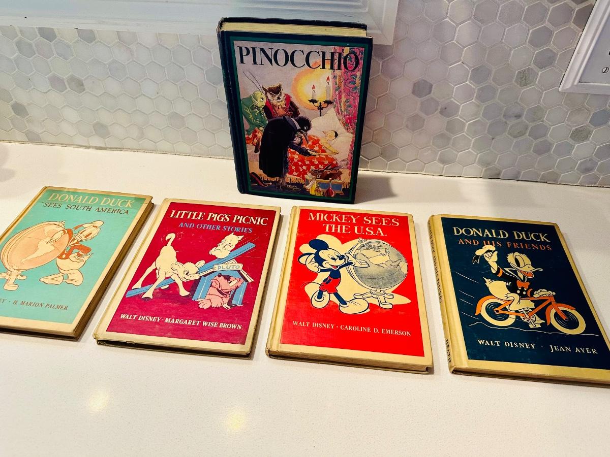VINTAGE CHILDRENS BOOKS, MICKEY SEE THE USA, DONALD DUCK AND HIS FRIENDS, LITTLE PIGS PICNIC, DONALD DUCK SEES SOUTH AMERICA, PINOCCHIO