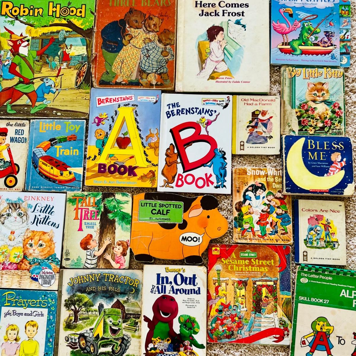 Lot includes dozens of children’s classic tales and stories from the 1980's back to copyrights in 1923. Stories such as The Three Bears, Disney Christmas, Young Adult, Heidi, Rin Tin Tin, early learning and many more stories, (GR-JM)