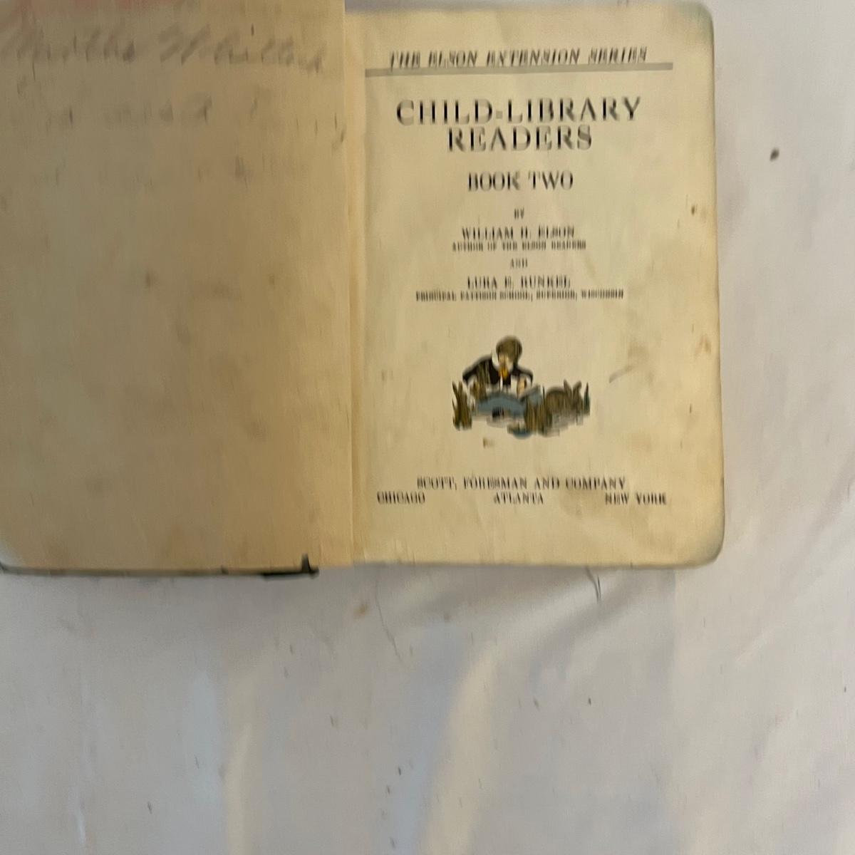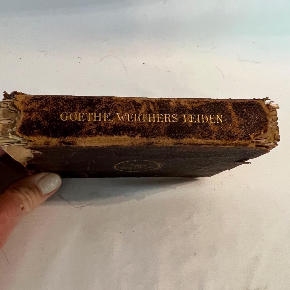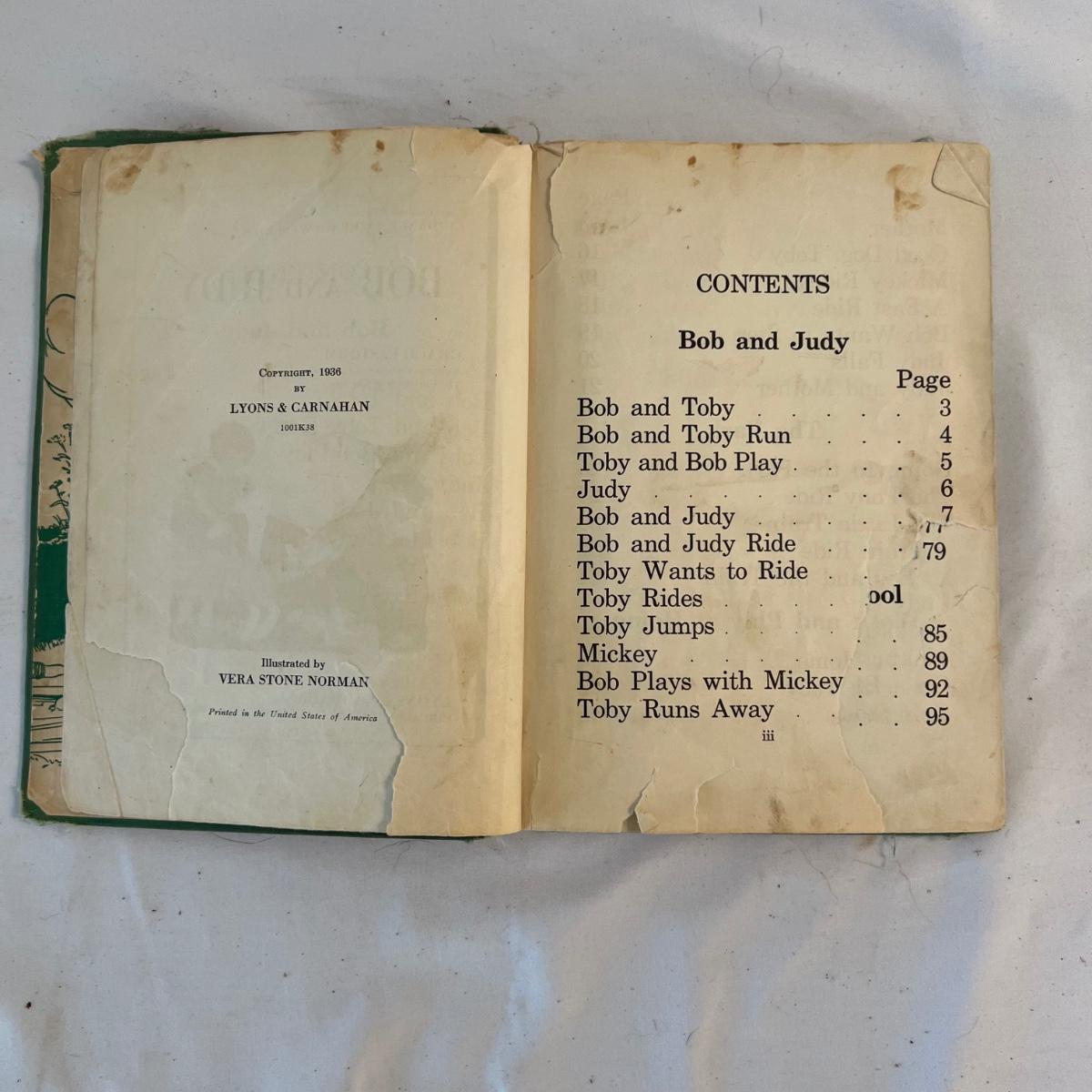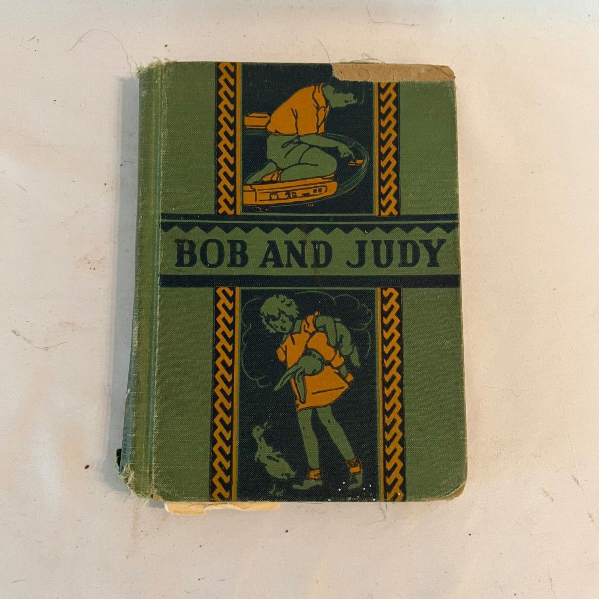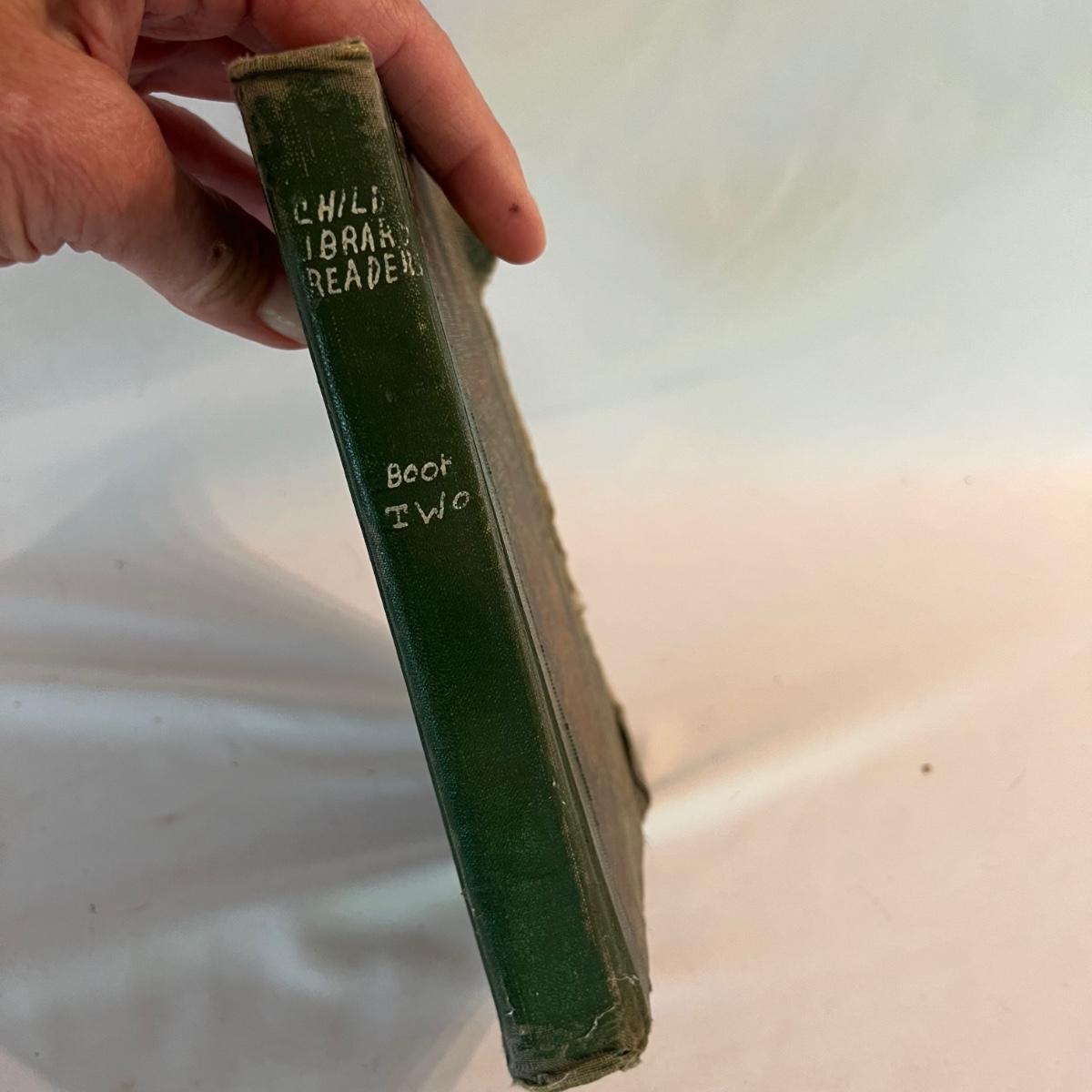 A collection of five books, printed from 1902-1930’s. Facts and Story Readers Primer (copyright 1930), Die Leiden does Jungen Werther Von Goethe (translation The Sorrows of Young Werther by Goethe) with a collection of old stamps inside, Child Library Reader (copyright 1925), Bob and Judy (copyright 1936), and Ether and Me by Will Rogers (copyright 1929).