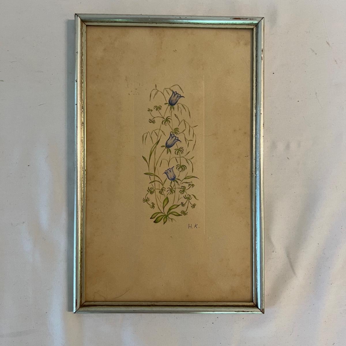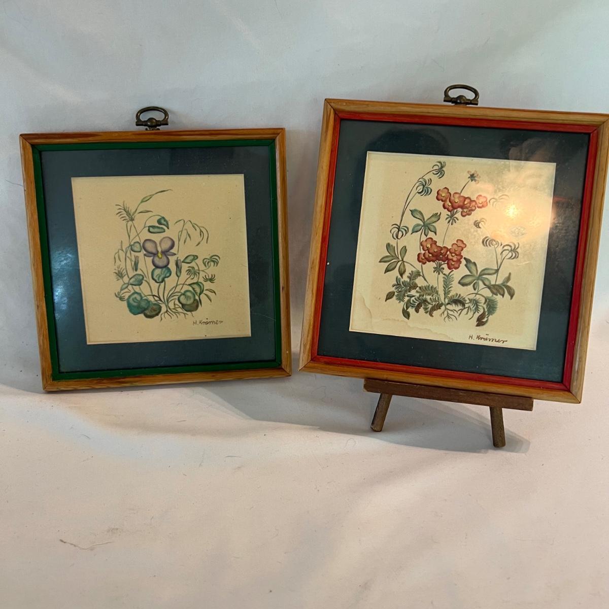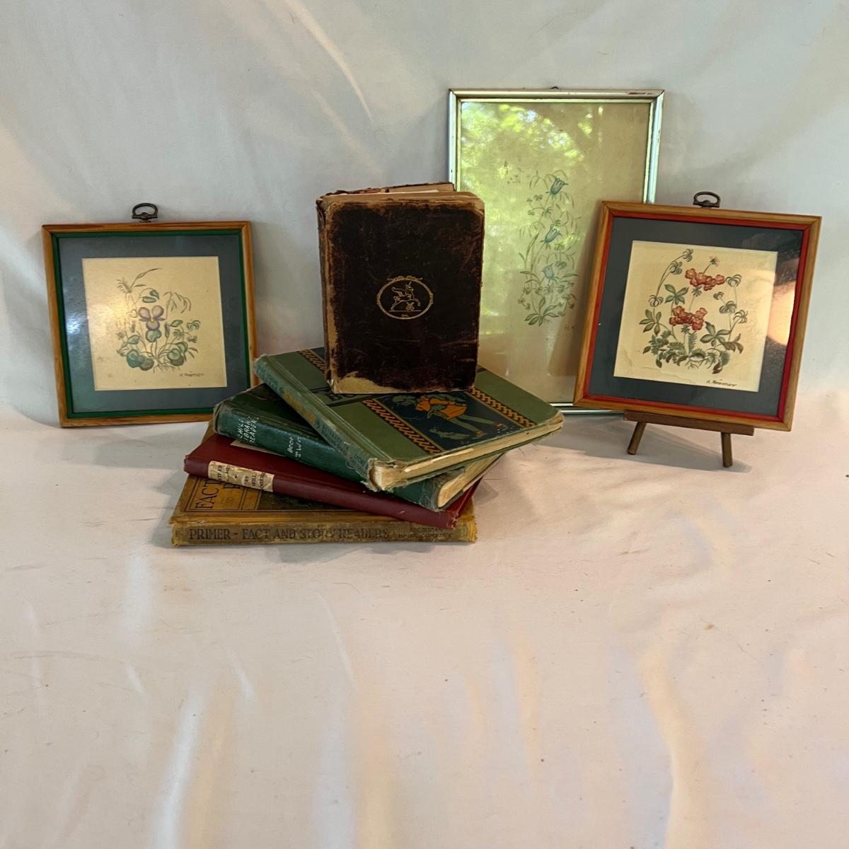 Antique Children’s Books & Framed Floral Watercolor Prints (B1-MK)