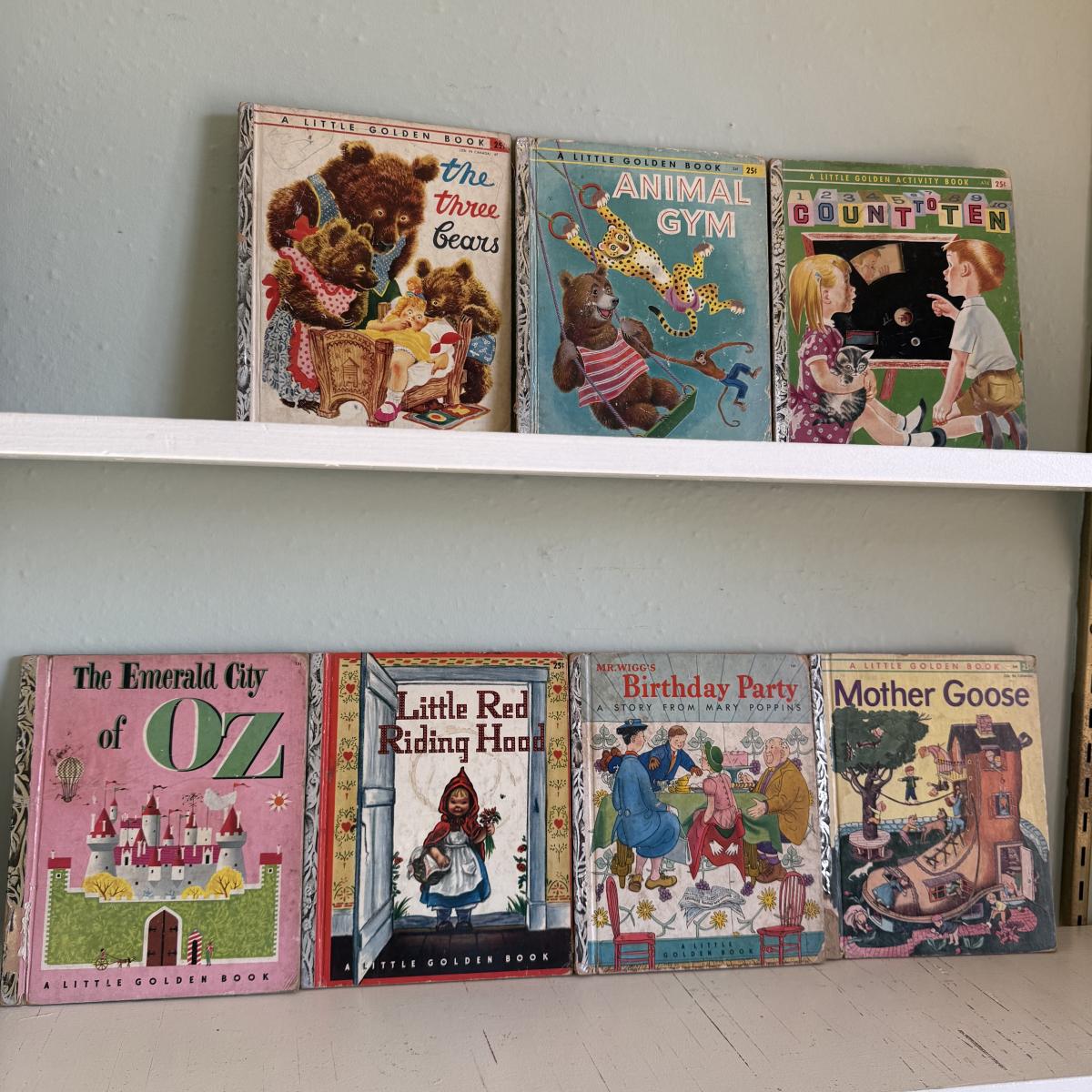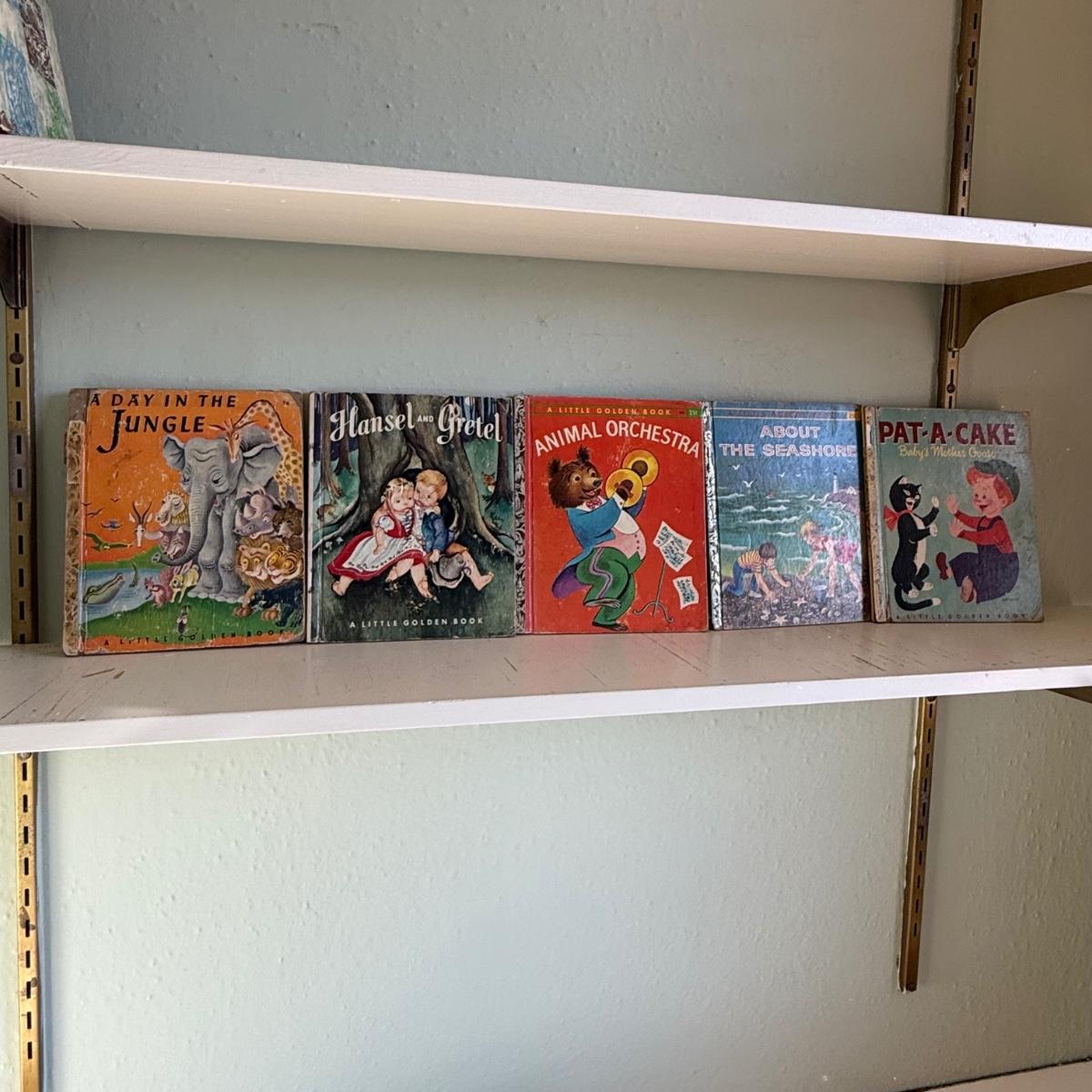 70+ vintage children’s books. There are multiple “Golden Books” sets, three “Happy Hollisters” books, a four-book set of “The Bible Story Library”, and a variety of other titles. Some books are well intact. Quite a few have damaged bindings or other wear. Please see photos for inventory and condition details.