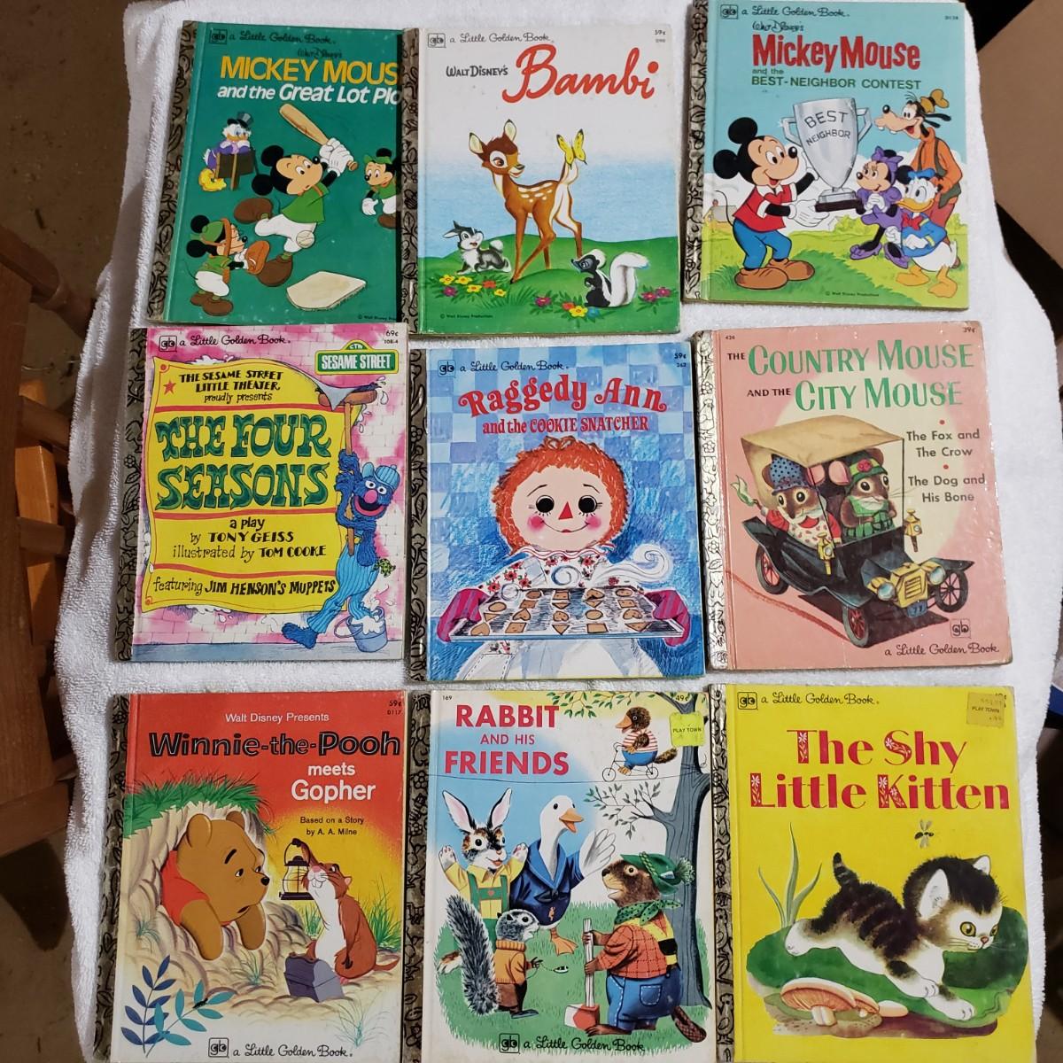 These are vintage children's books. A wide variety of author's and topics. See pictures for details. There are 26 Golden Books. Books have been in a basement and are musty, but are not damaged.