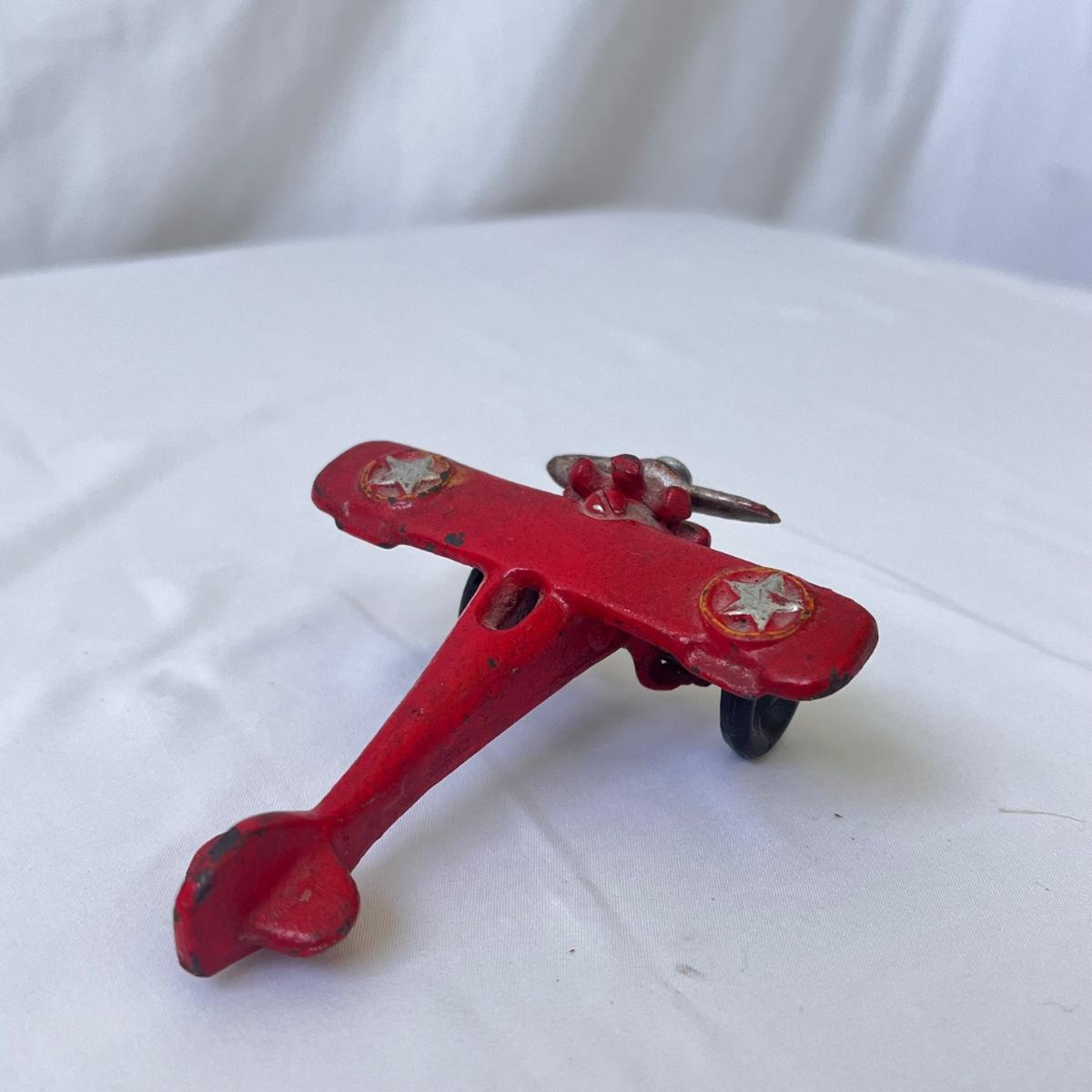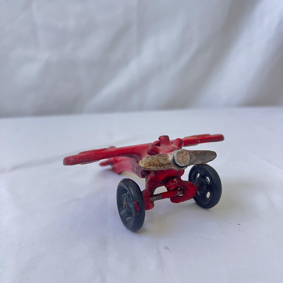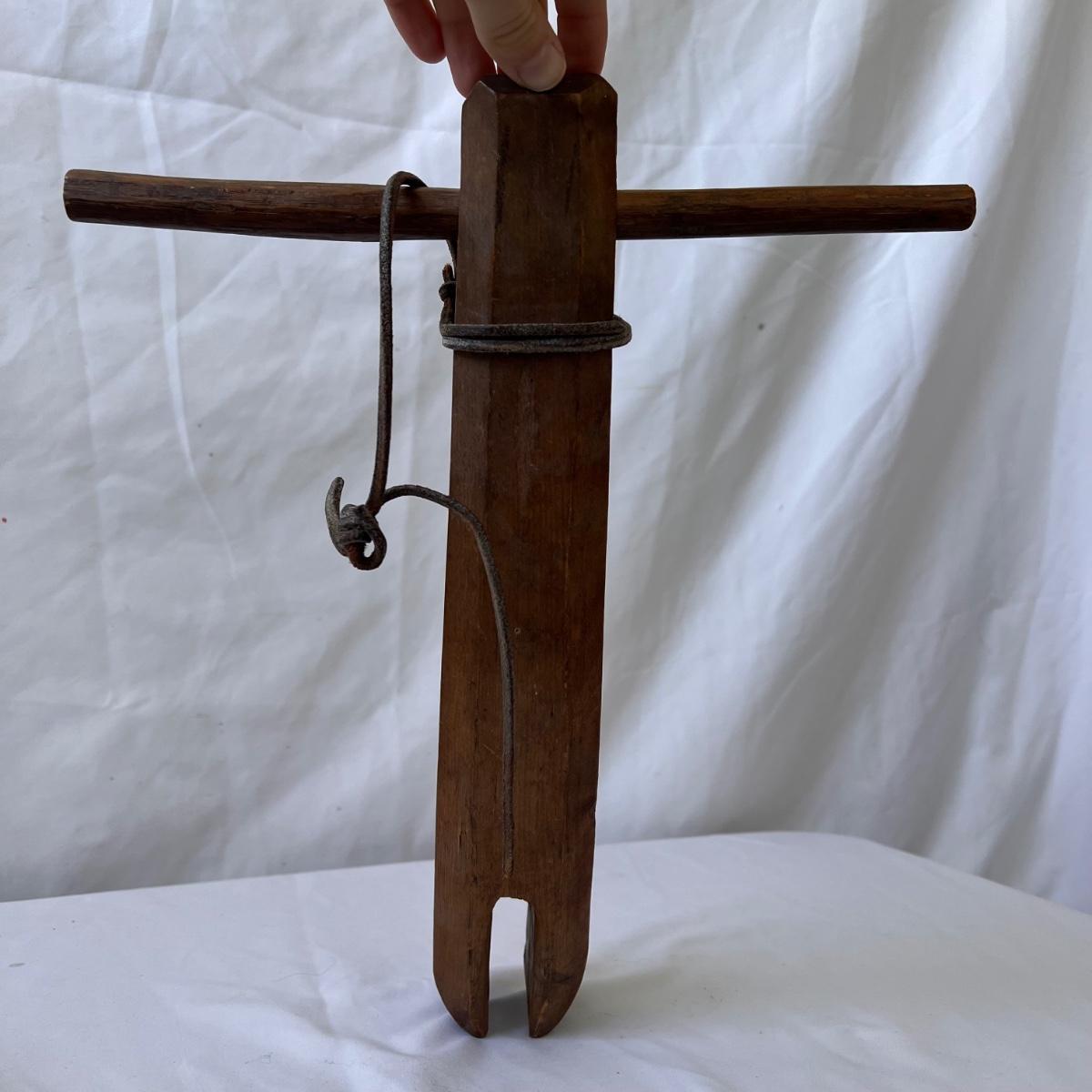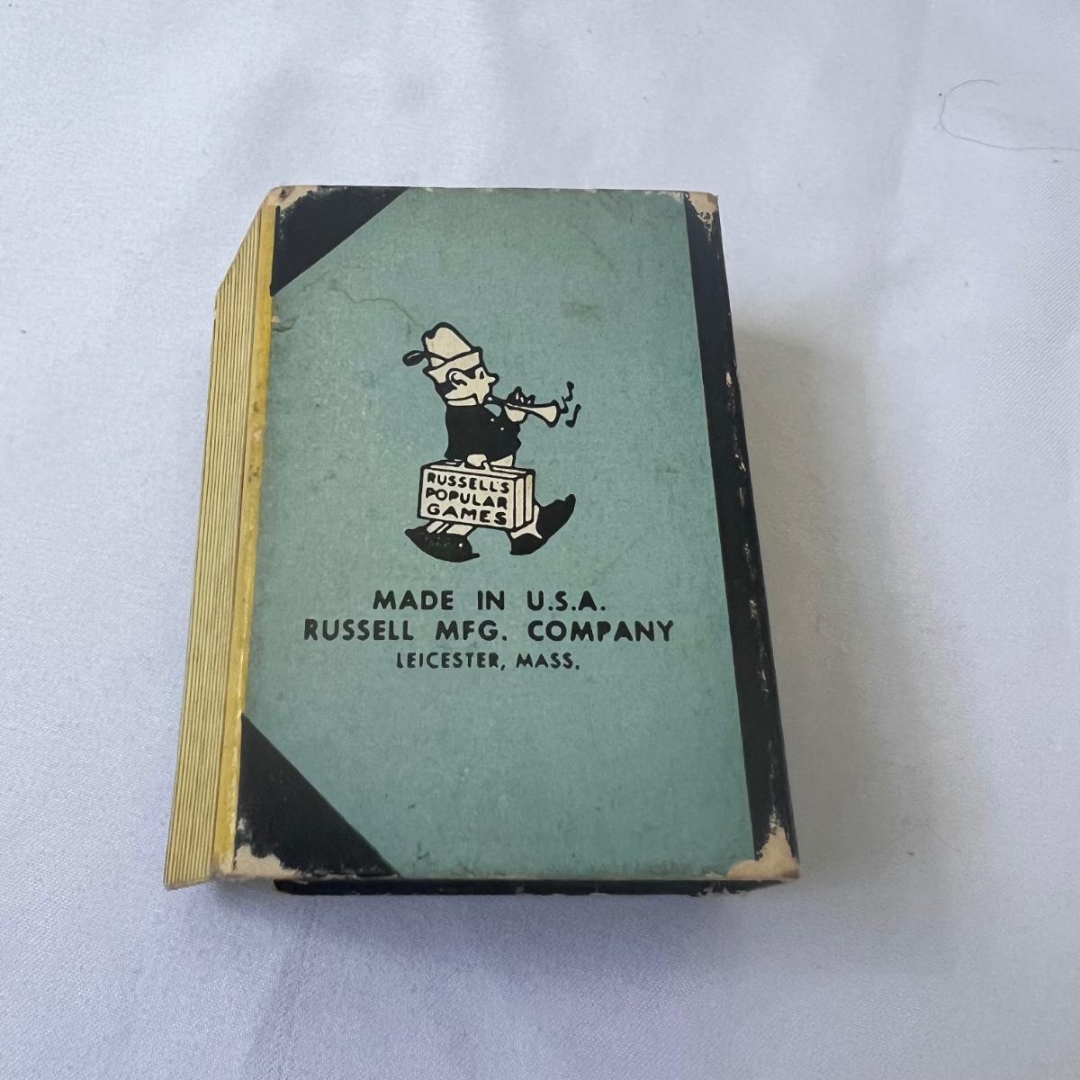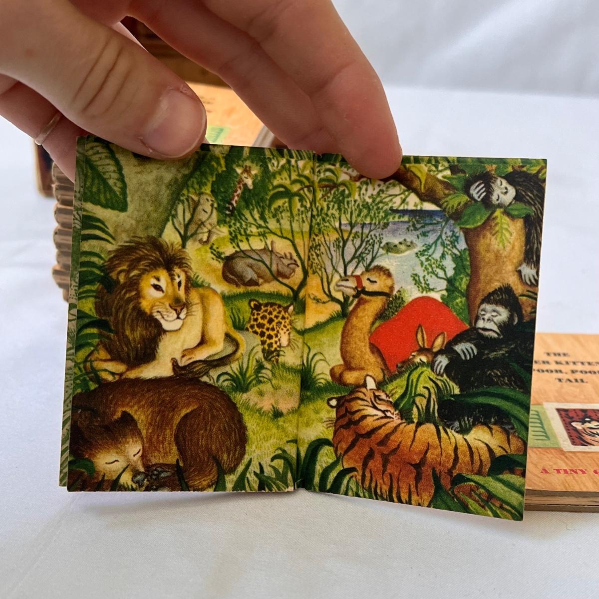 This lot of vintage children’s items includes several wooden pieces including a rocking horse, a double-sided game board, checkers pieces, a Milton Bradley Company peg board, a puzzle with painted pieces, a wooden hand-carved tool and a truck. Also included in the lot are a Simon and Schuster “Tiny Animal Stories” book collection, The Three Little Pigs card game by Russell MFG. Company, one plastic doll by Madame Alexander, one teddy bear with one eye missing (see picture included), and a cast iron helicopter. The wooden horse is the largest item, measuring 17.5” x 4” x 15”H. Shipping available.