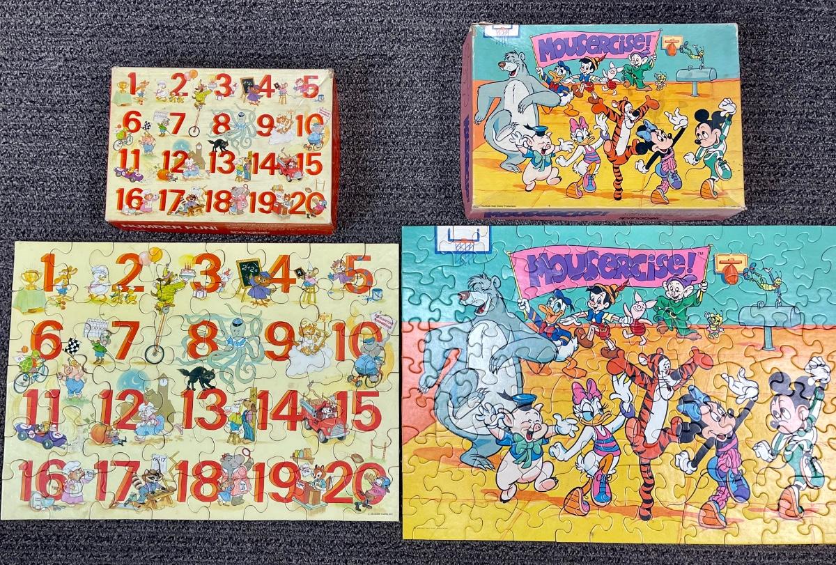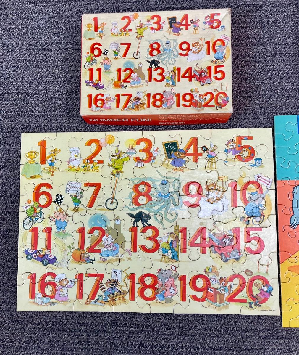Vintage Children’s Jigsaw Puzzle Lot - two springbok hallmark cards -Numbers & Disney