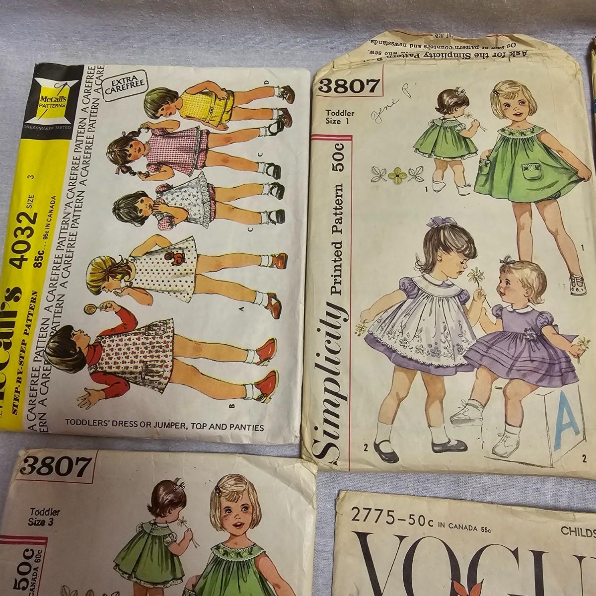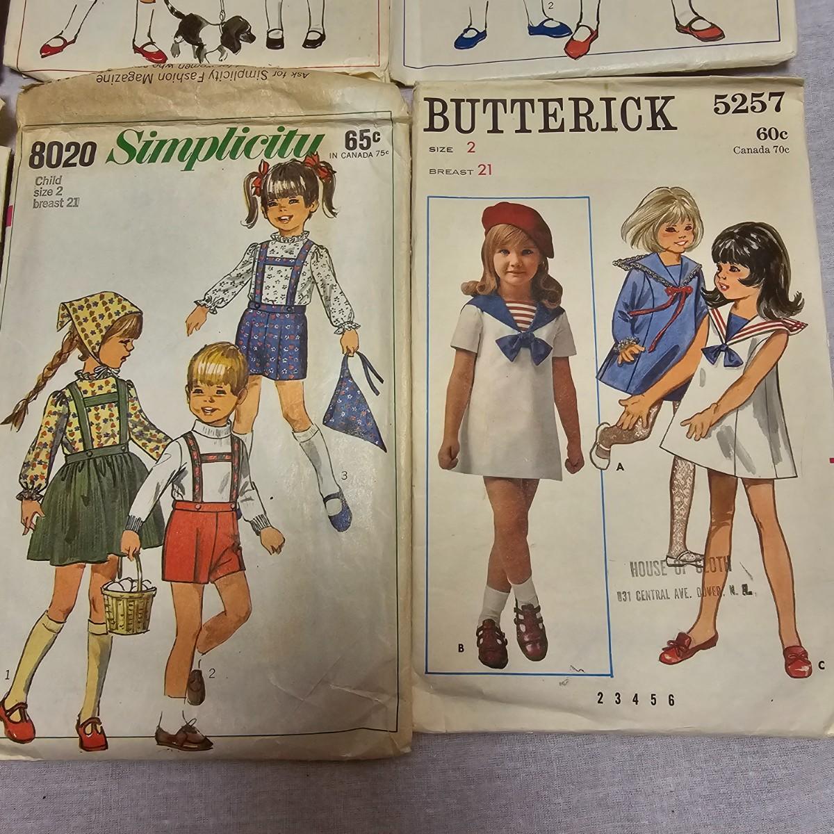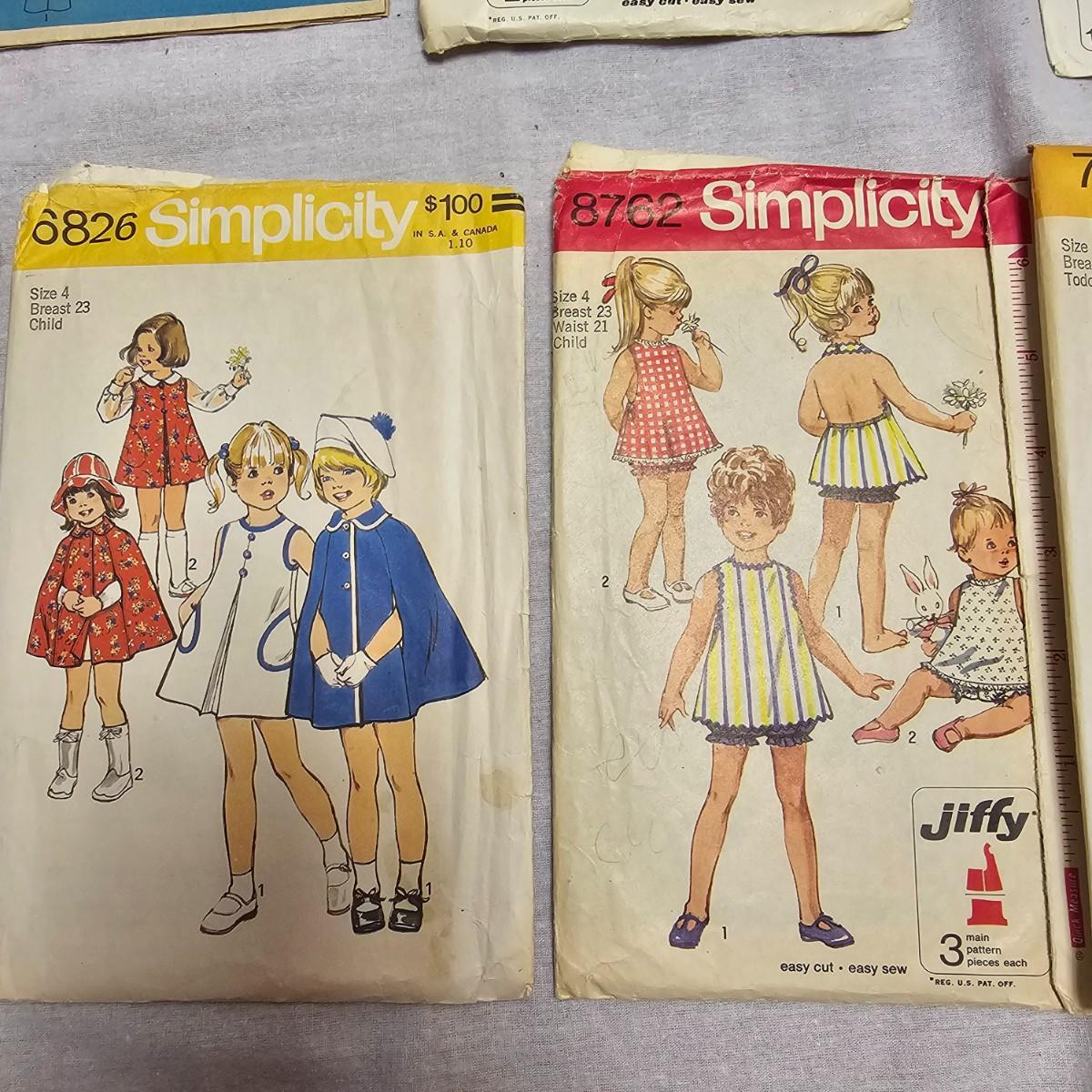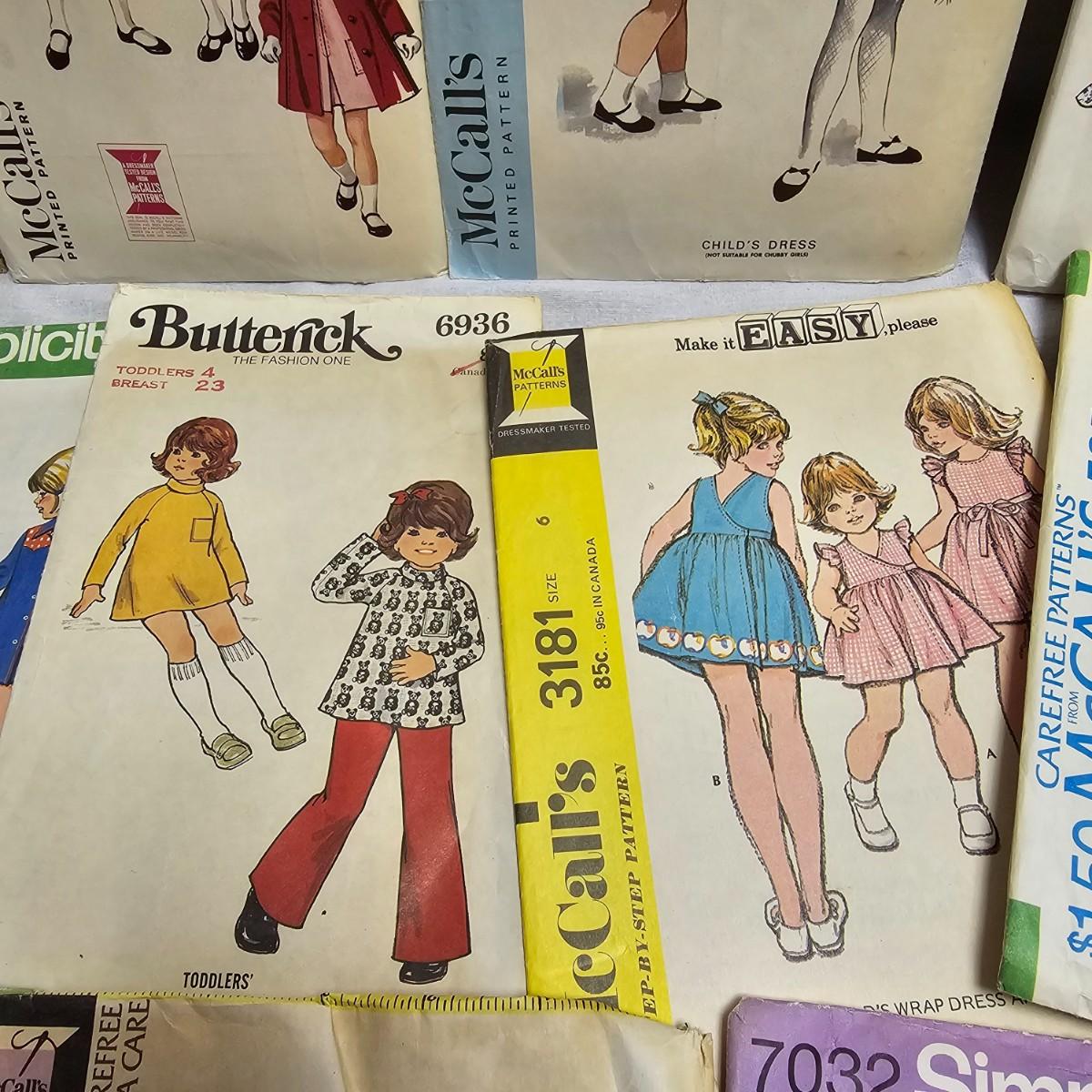 An entire box of sewing patterns specifically for young girls. Ages toddler to four and up by producers such as McCalls, Simplicity, Butterick, others. Approximately 100 or more patterns to fill a copy paper box. Not all patterns shown. See photos for details. Shipping available.