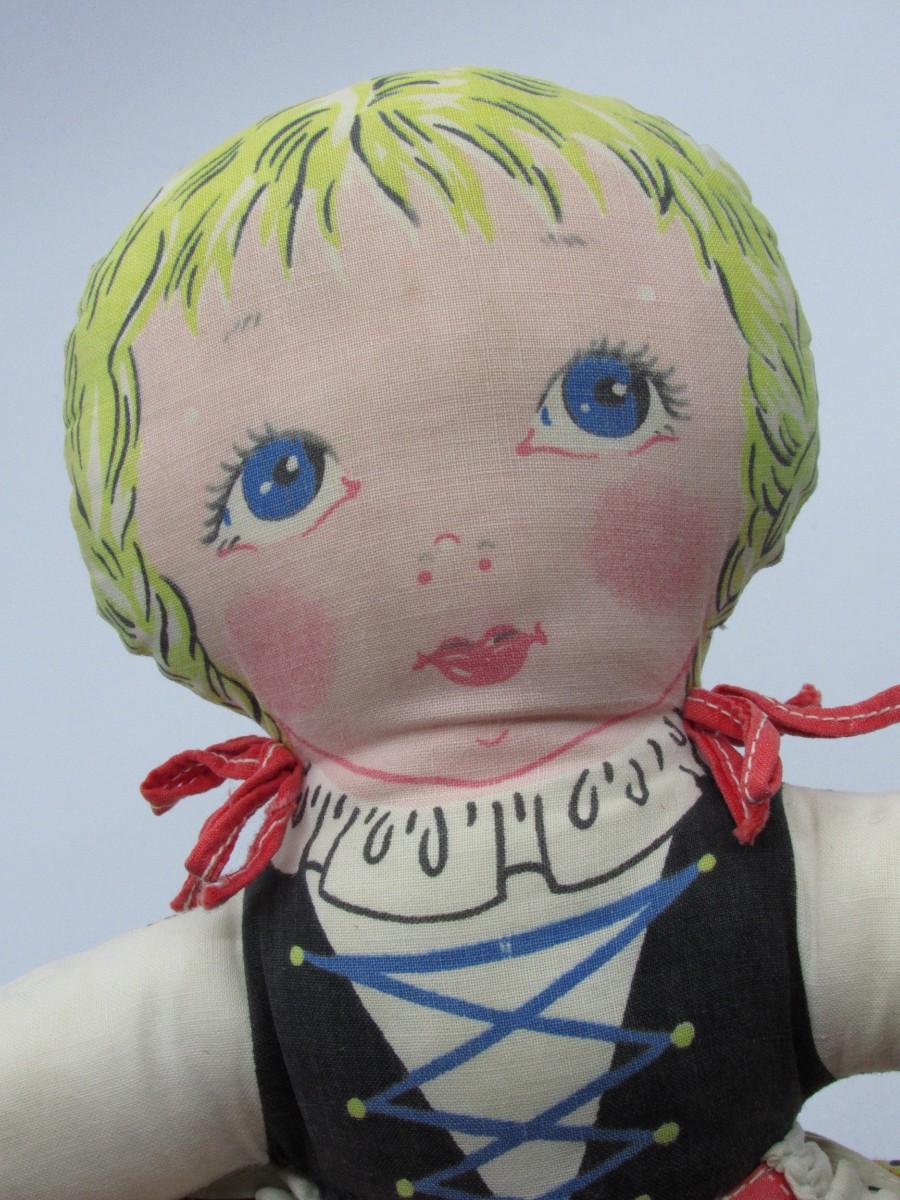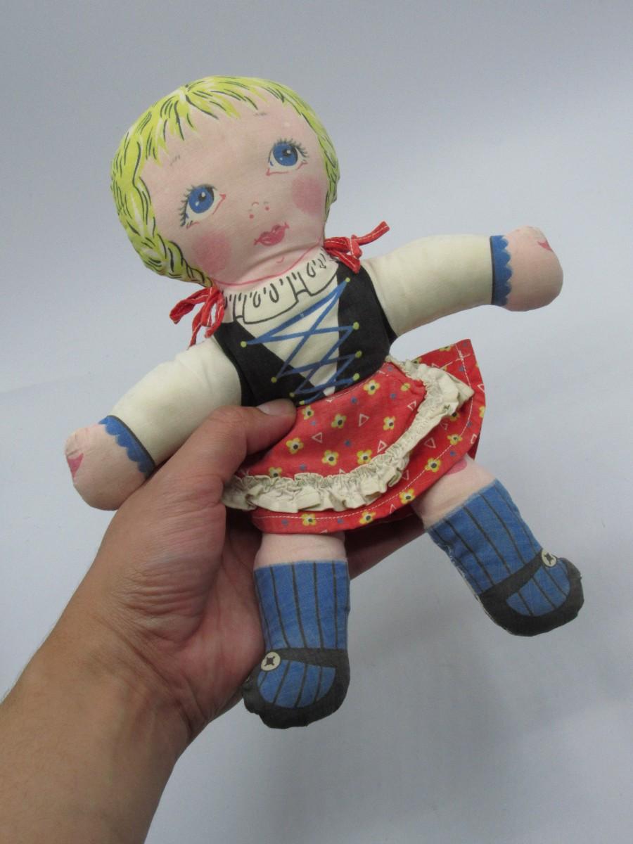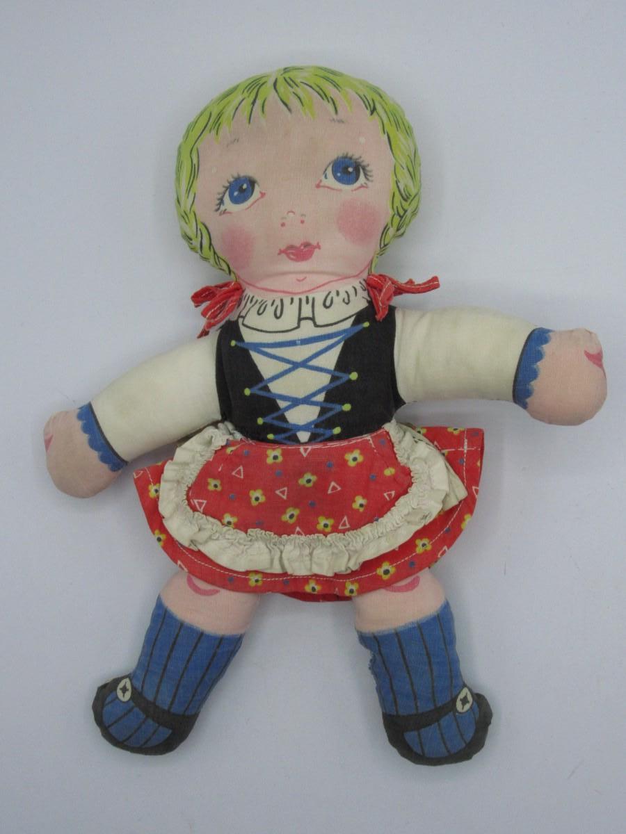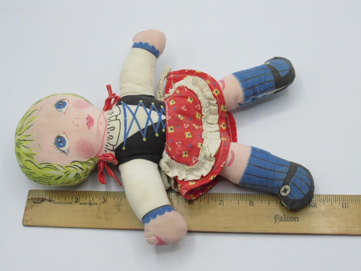 Vintage Children's Stuffed Sewn Rag Doll Traditional Wear Hansel and Gretel Cut Out Swiss German Girl