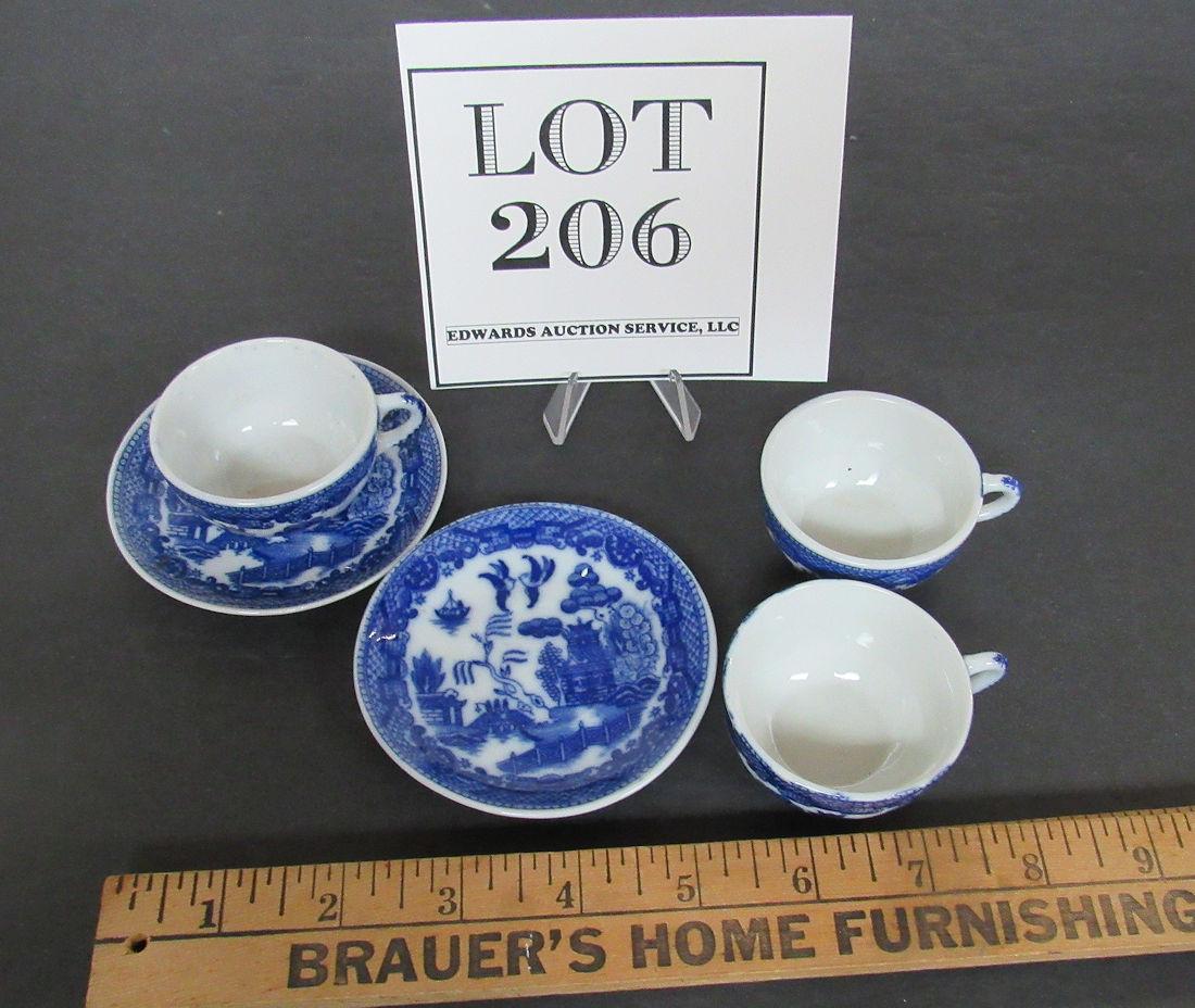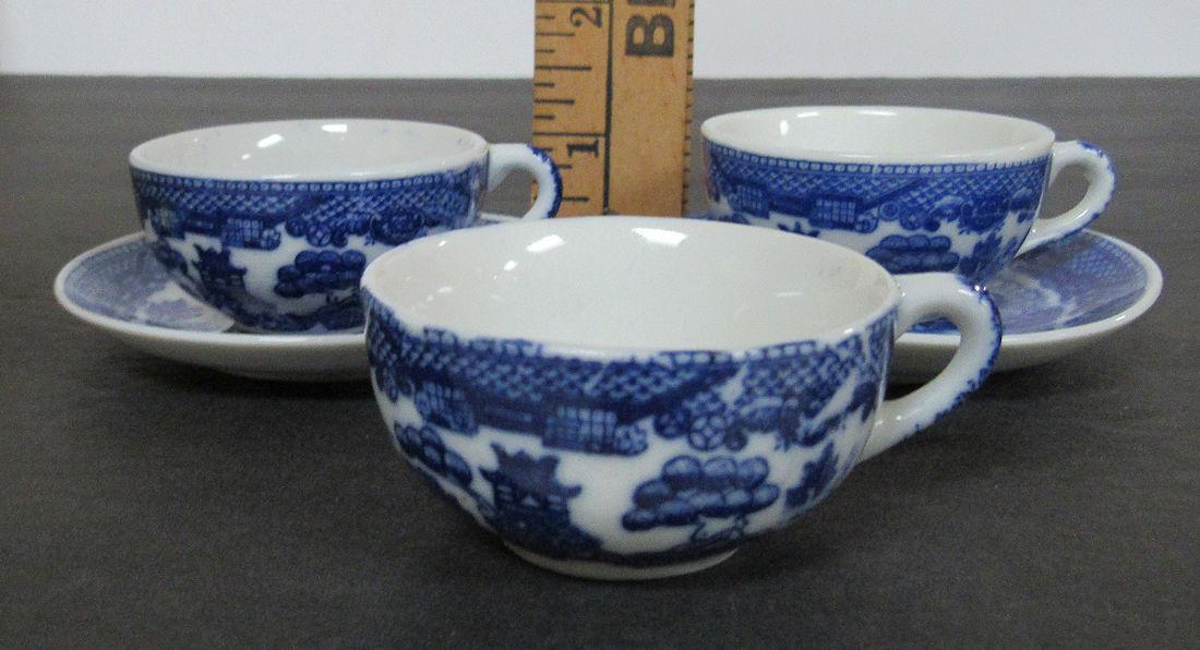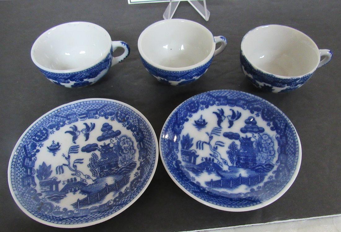 Vintage Child's Blue Willow, 3 Cups, 2 Saucers, Japan