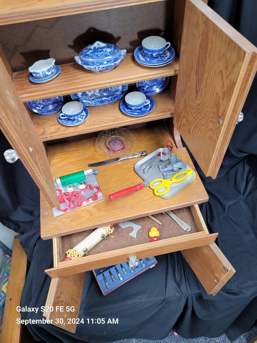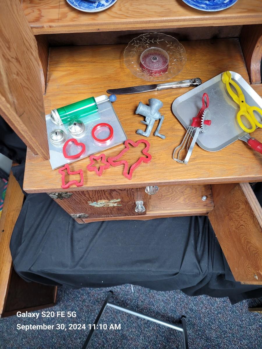 Also has a hand mixer, grinder, griddle, and lazy susan.