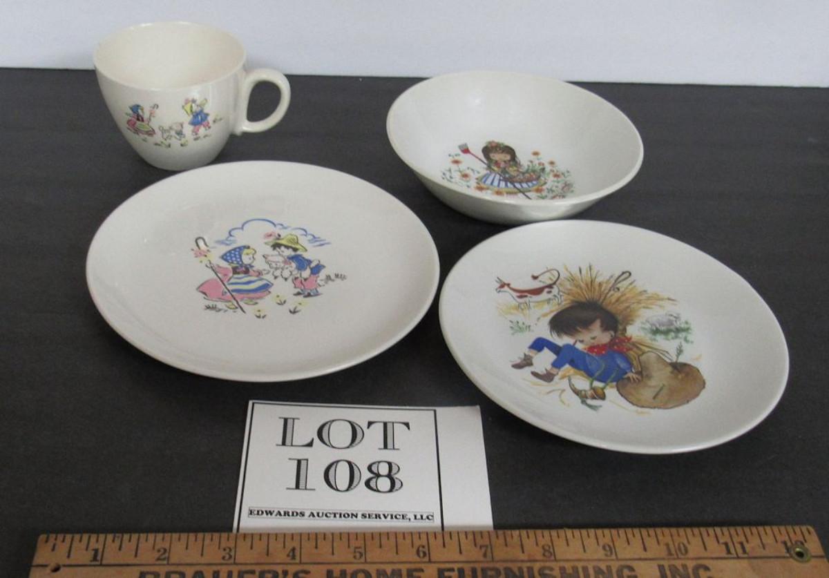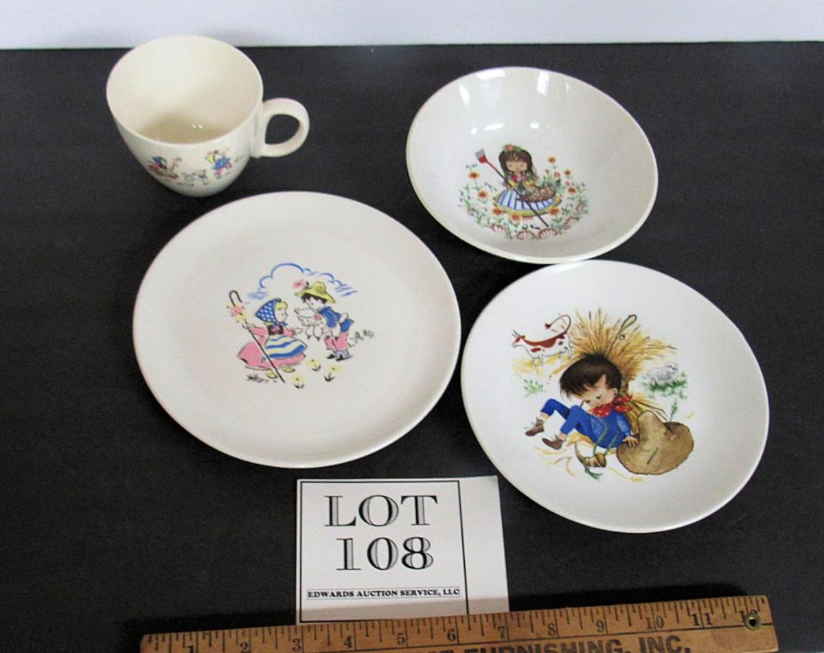 Vintage Child's Dishes, Staffordshire, England Bowl and Plate, WGR Advertising Cup/Plate