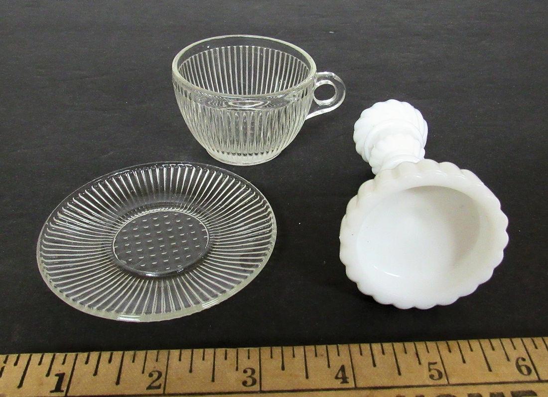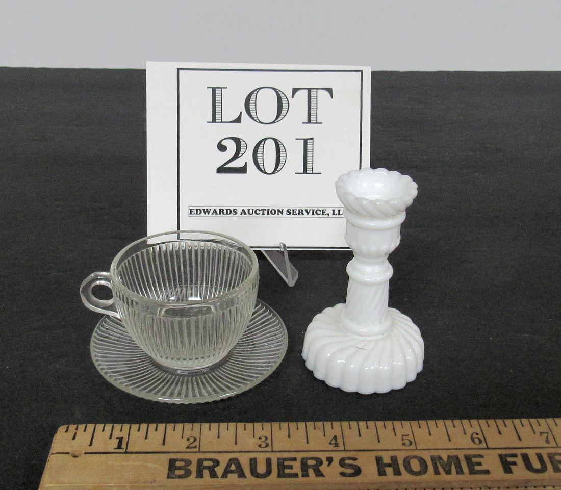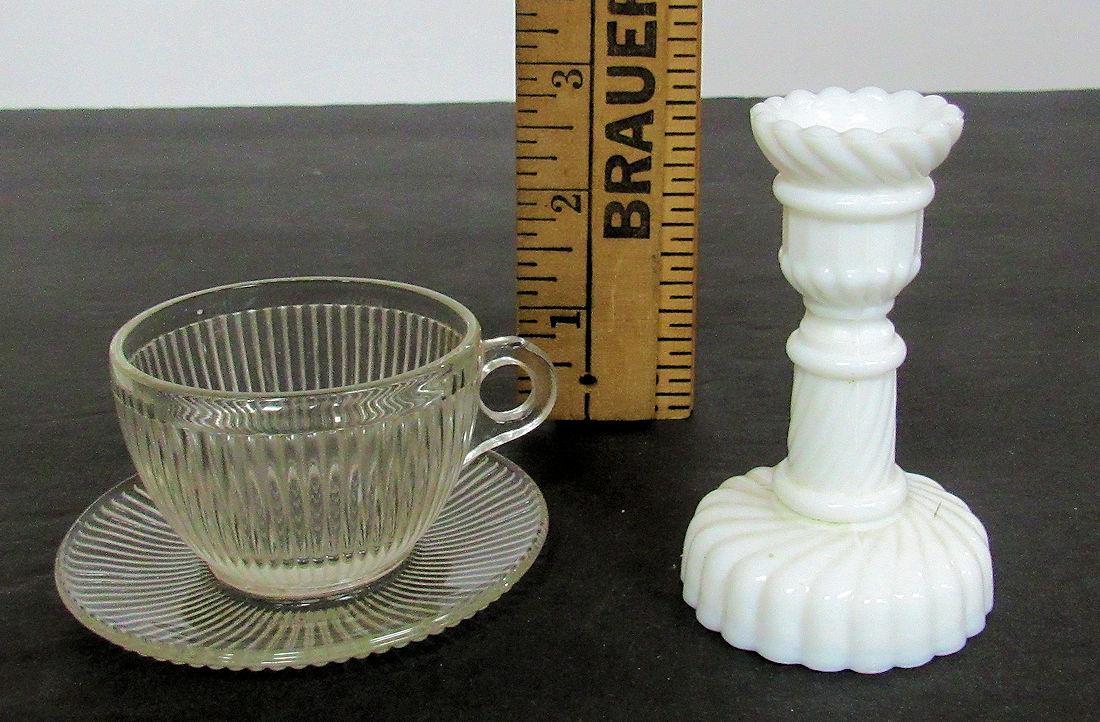 Vintage Child's French Milk Glass Candlestick and Homespun Cup and Saucer