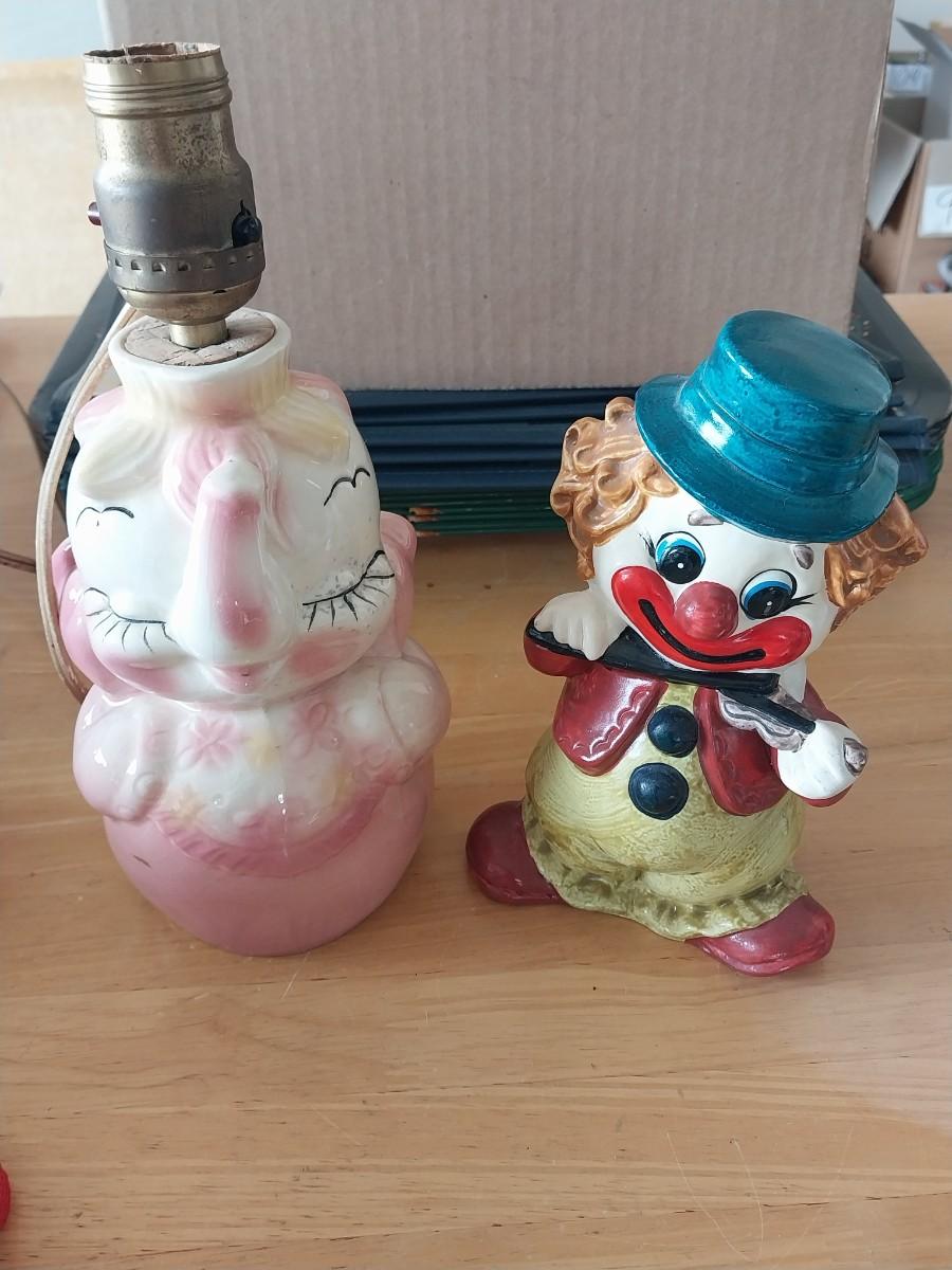 VINTAGE CHILDS LAMP AND CLOWN BANK