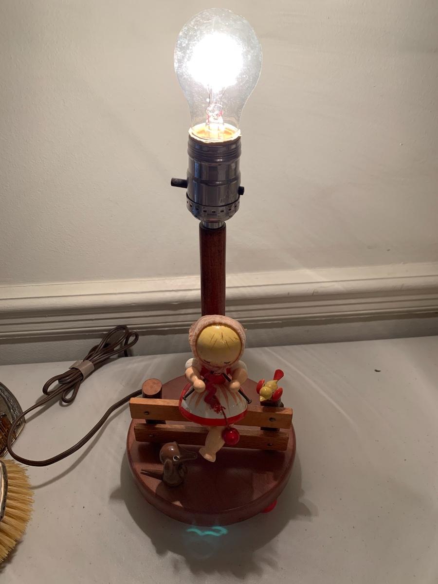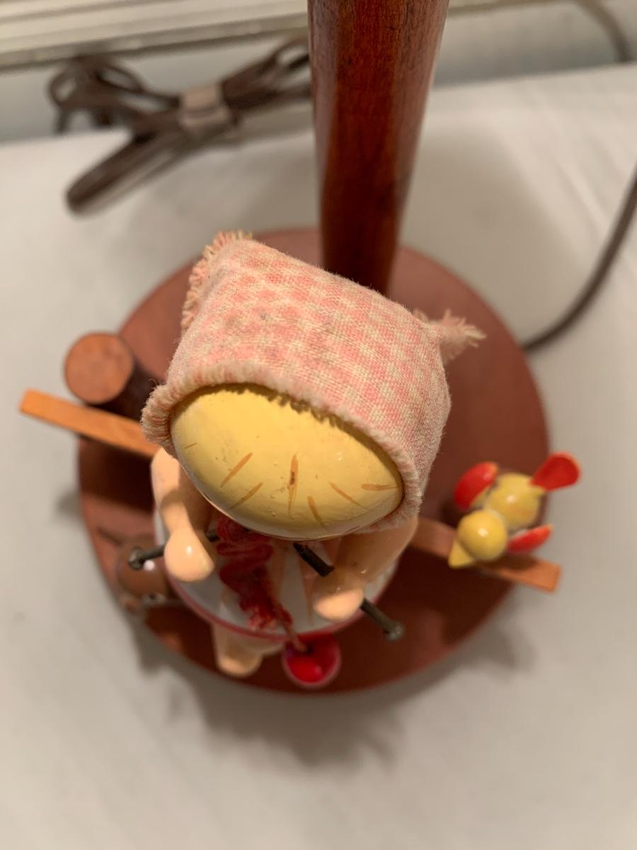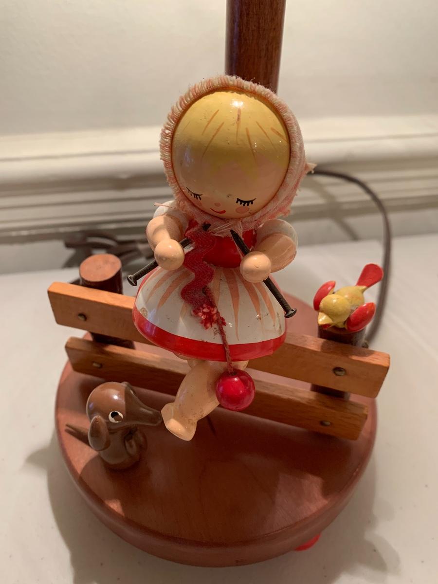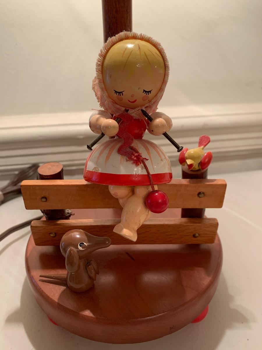 Vintage Child’s Nursery Lamp Girl Knitting Dog Bird