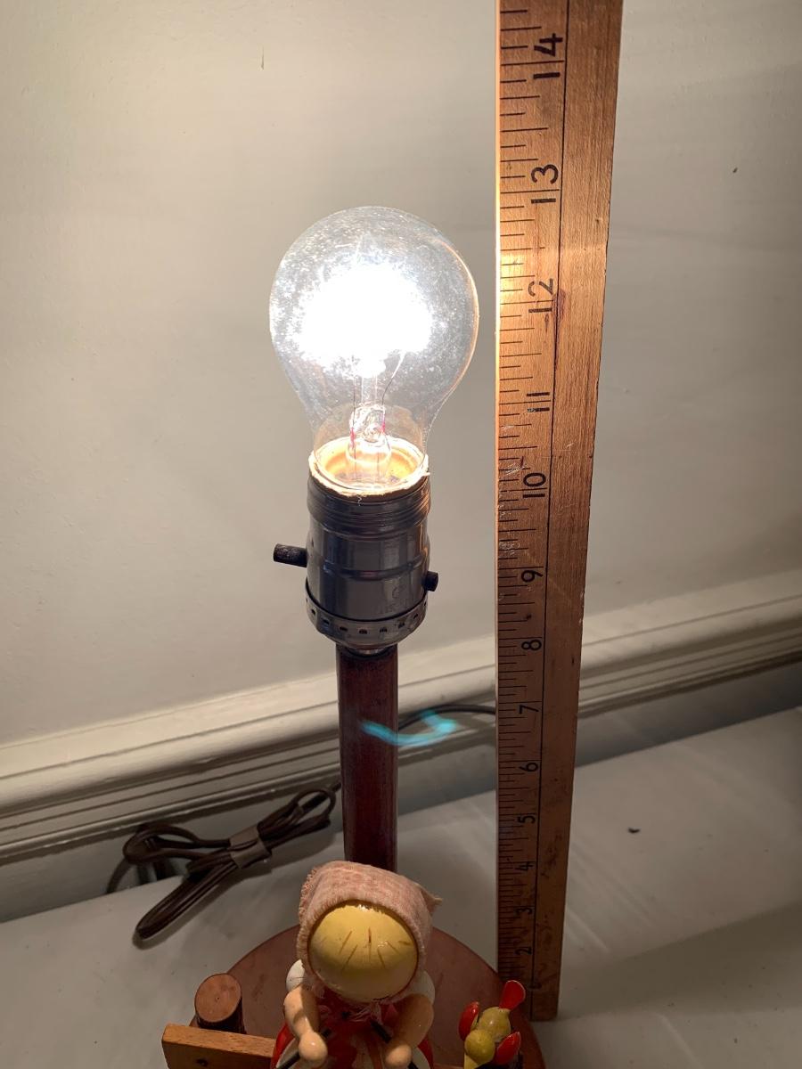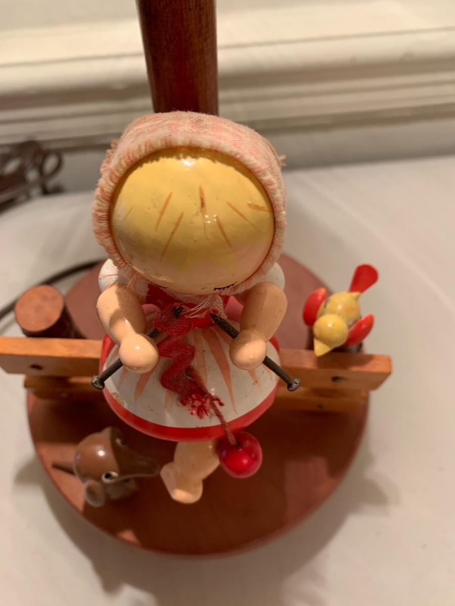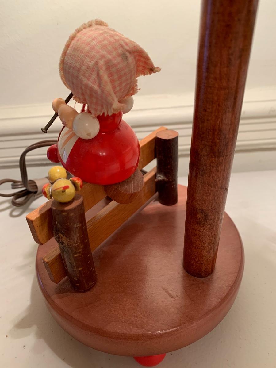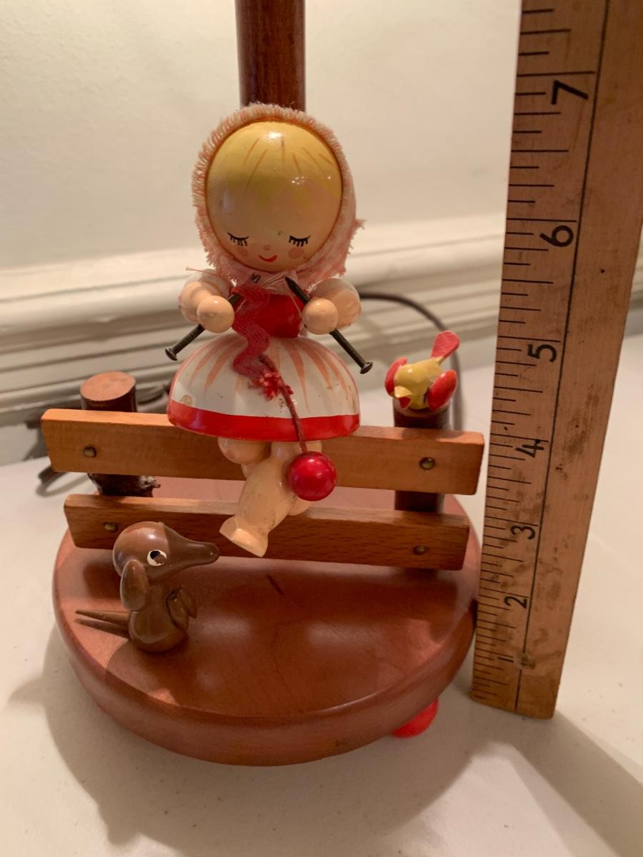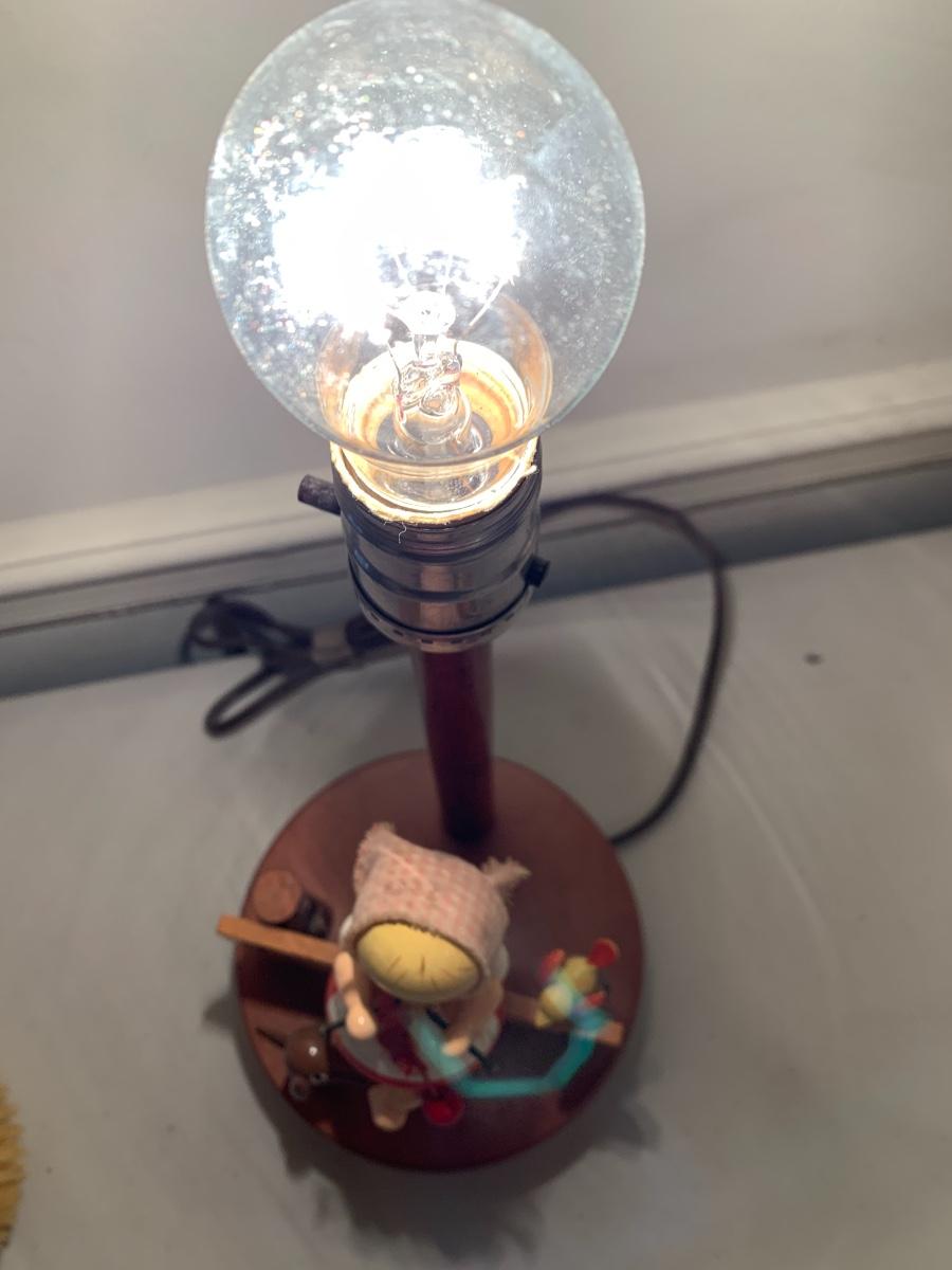 Vintage Child’s Nursery Lamp Girl Knitting Dog Bird