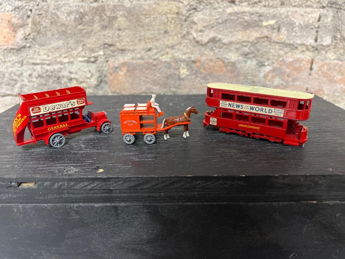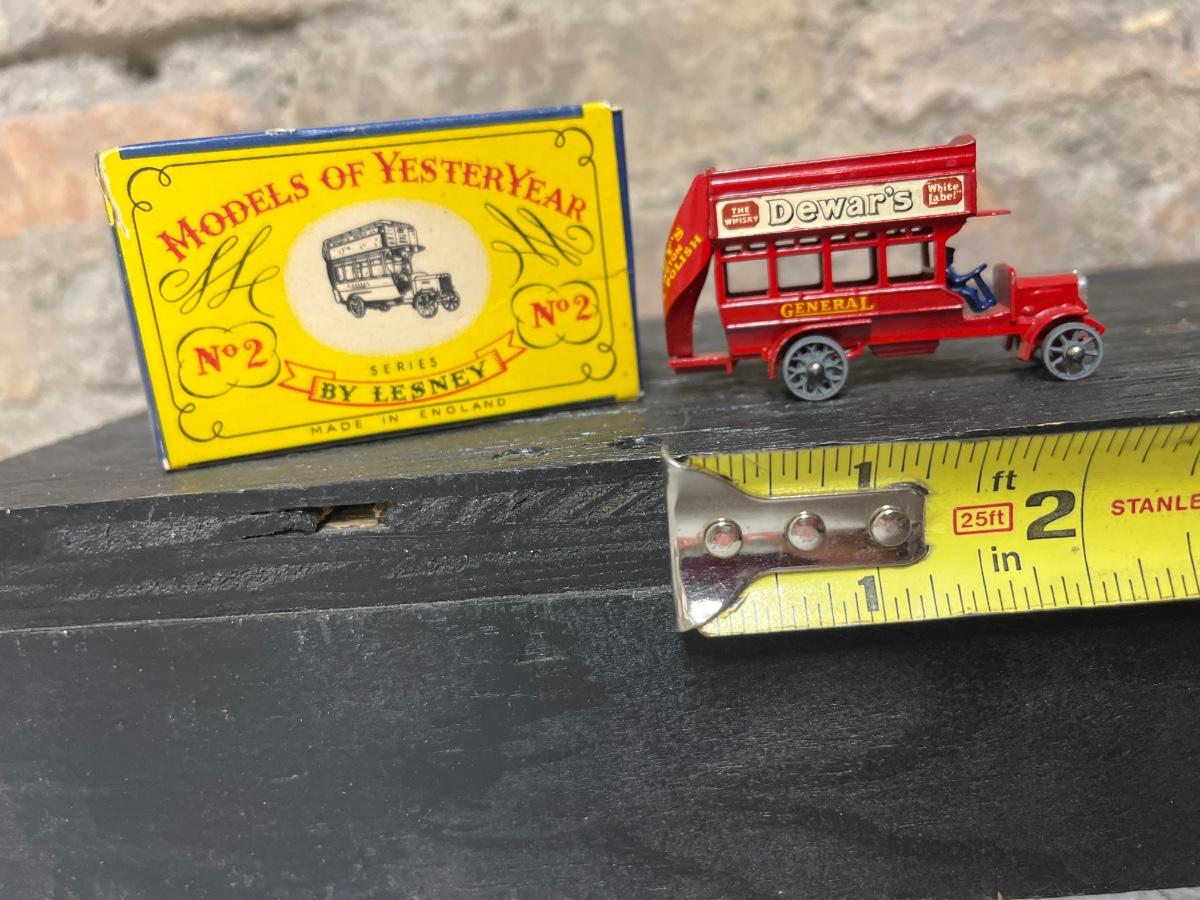 Vintage Jack in the Bank, vintage Tricky Sticks, and three Lesney Models of Yesteryear miniature models