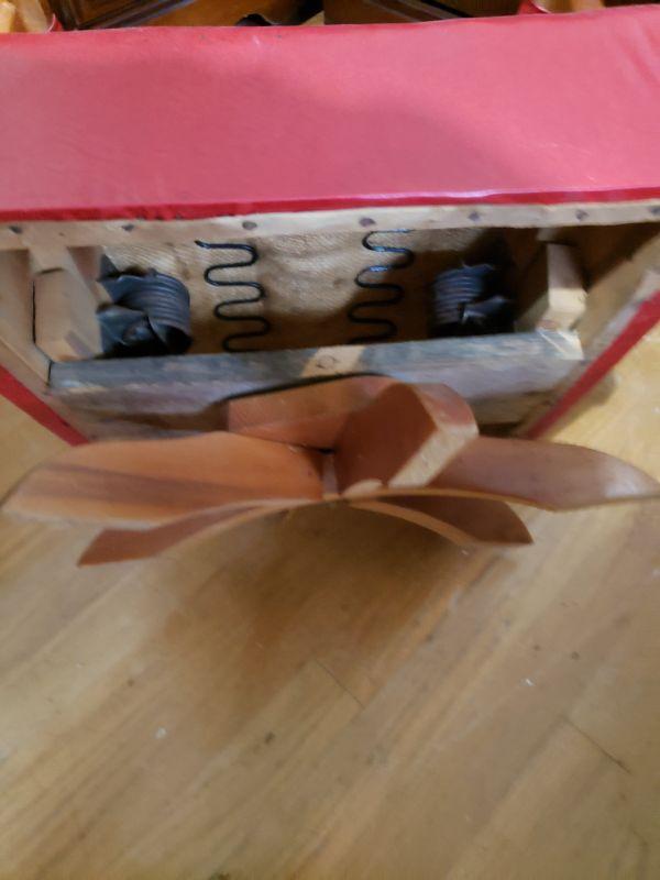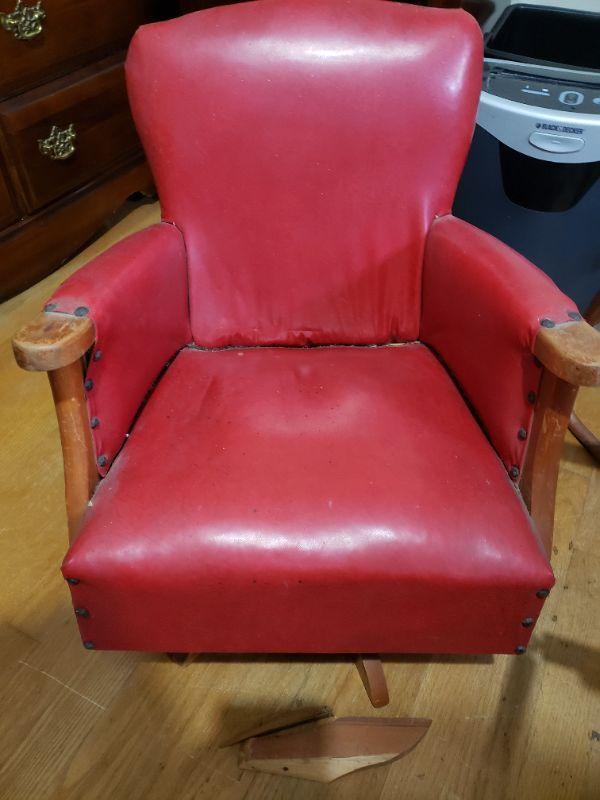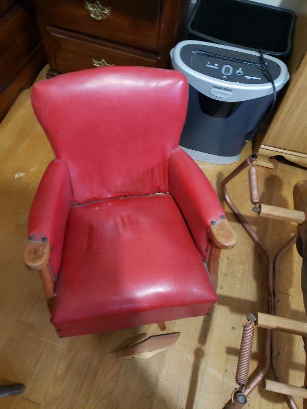 Nice rocking chair. One leg has piece of wood split off . I have the wood so it can be fixed. It doesn't affect it standing.