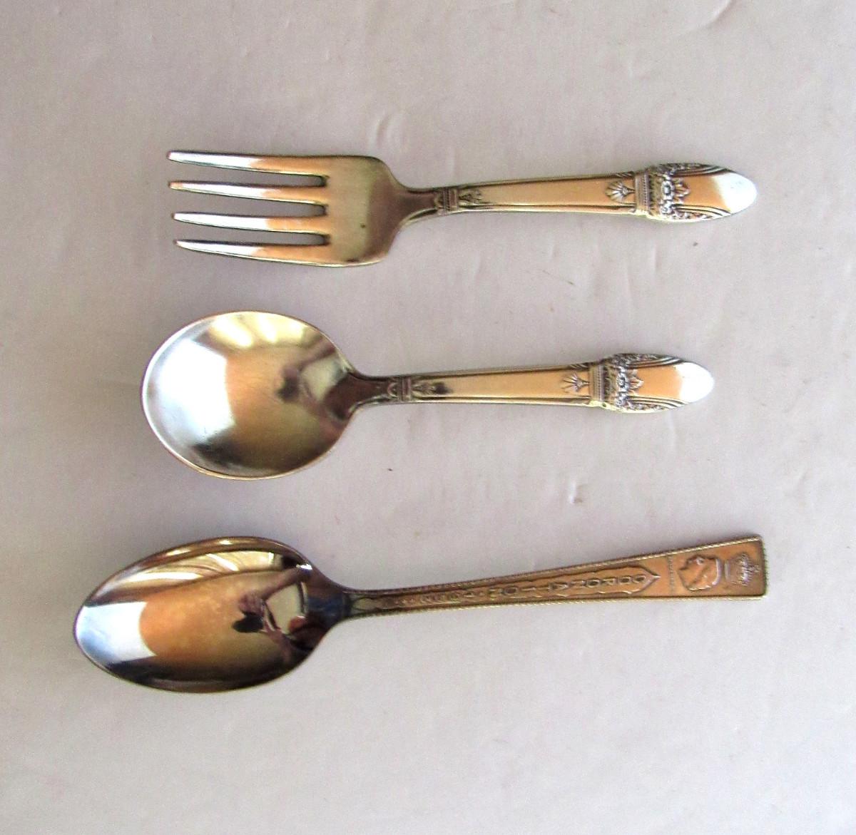 Vintage Child's Silver Plate Fork/Spoon Set, & Queen Elizabeth Coronation 1953 Spoon