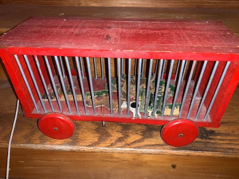 Vintage Child’s Toy Animal Cage With Lion Dominos