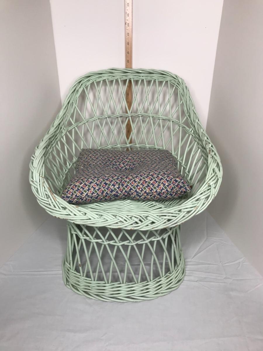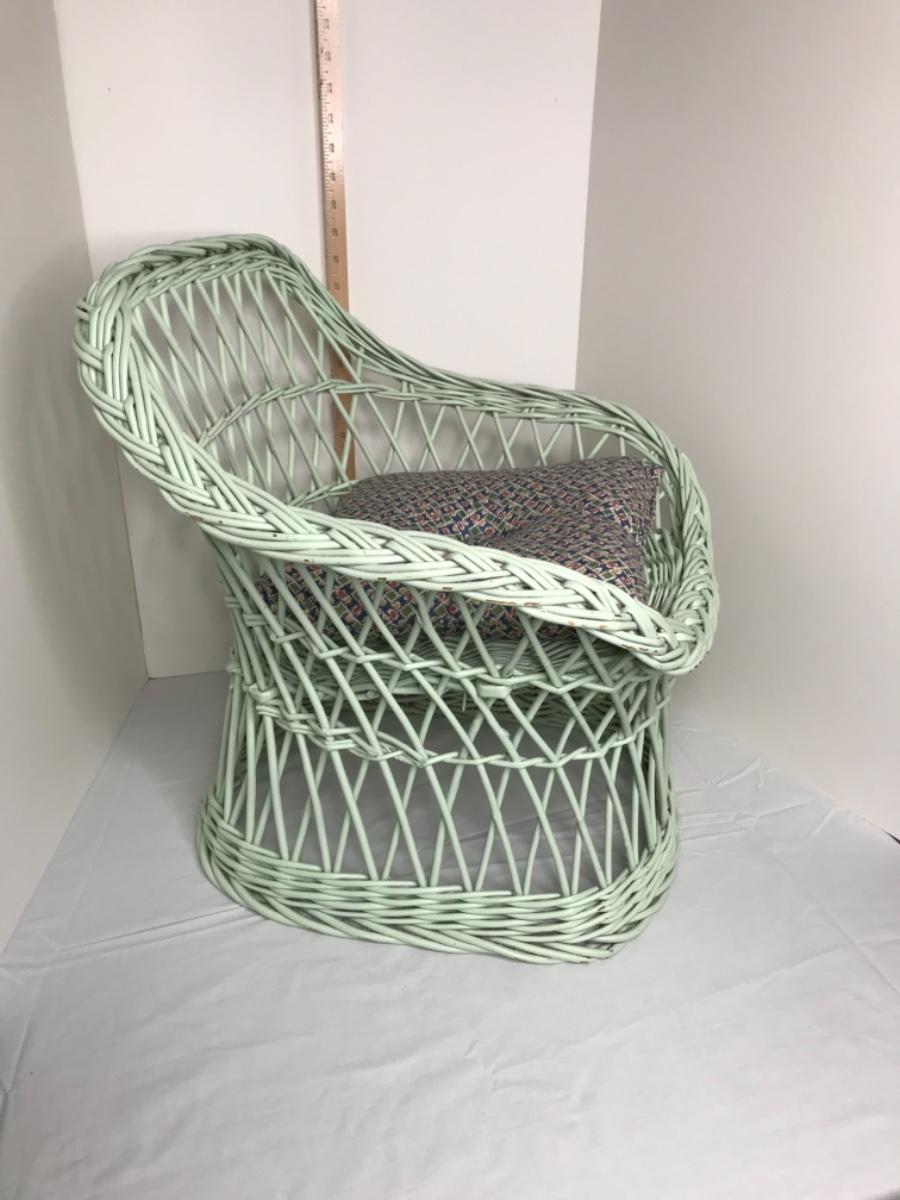 Adorable Vintage Light Mint Green Wicker Child’s Chair and cushion