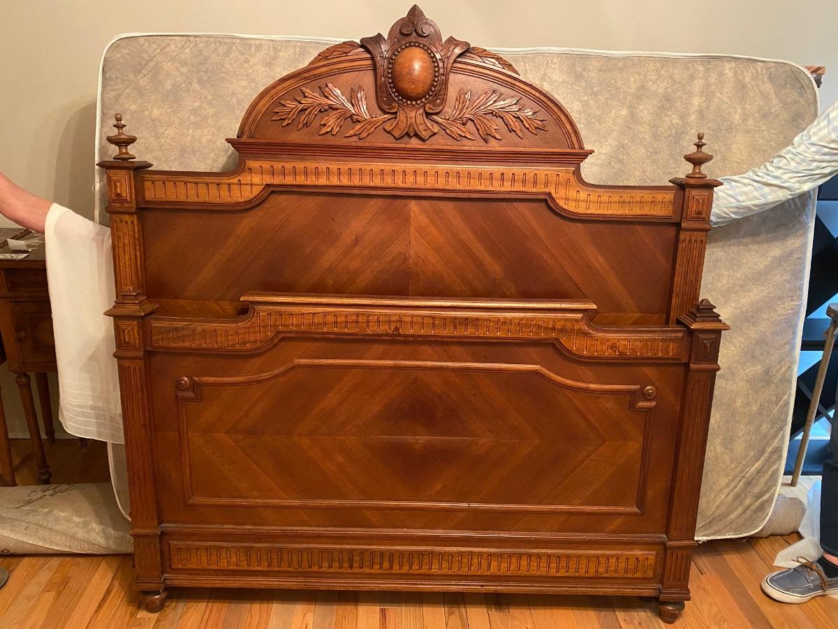 Antique French solid wood, double bed. Excellent condition. Beautyrest mattress & boxspring included - barely used.