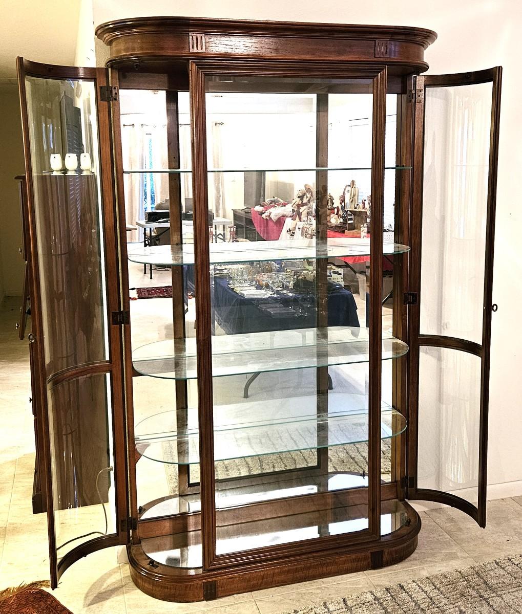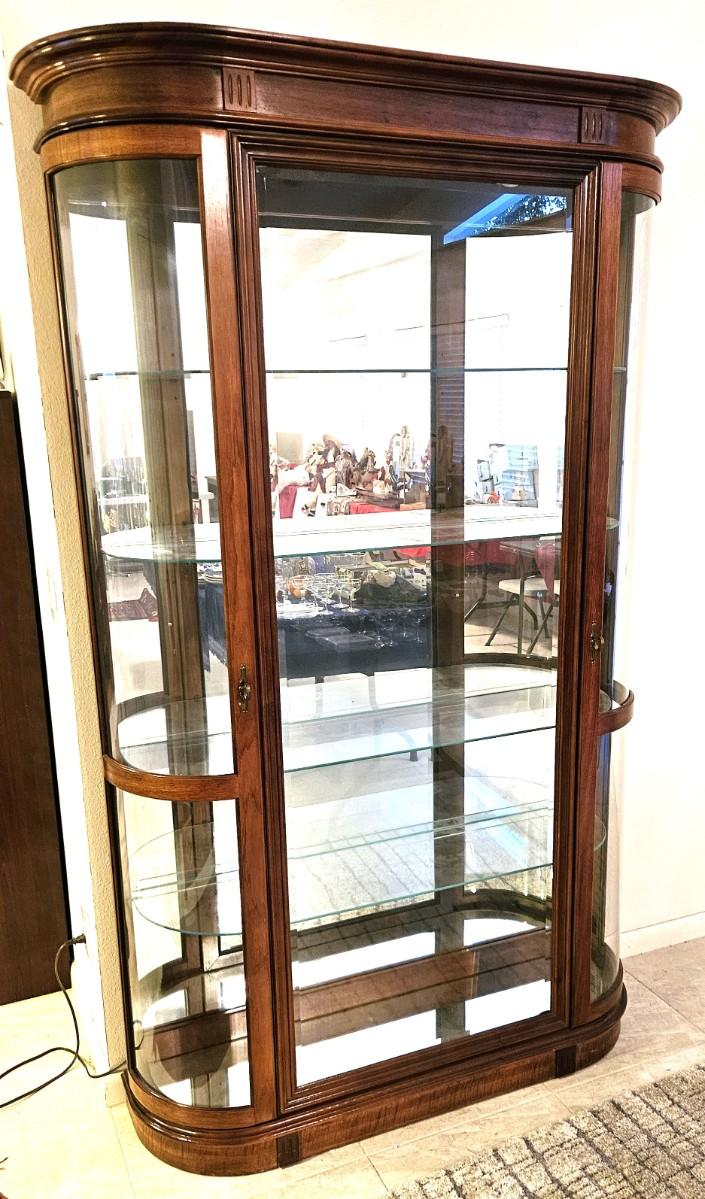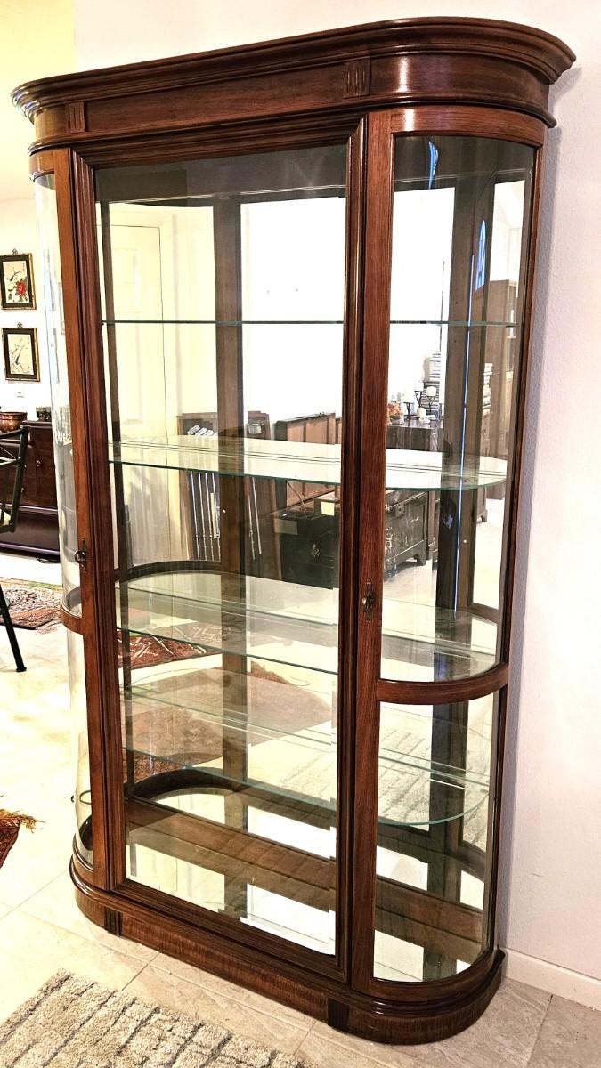 Vintage China Cabinet with Curved Glass