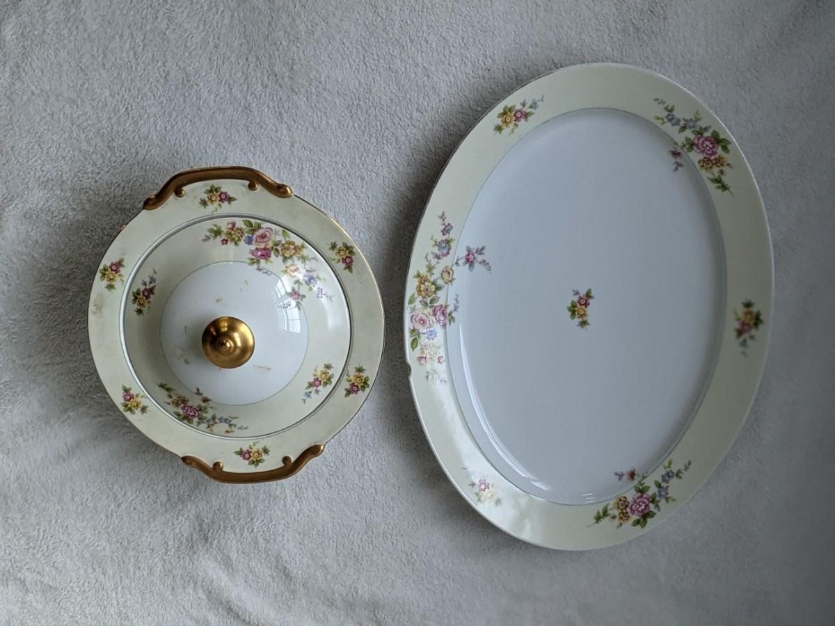Vintage China Serving Tray and matching soup tureen. Please note photo of tray showing a small chip. Please see all pictures as they are the best representation of the items. The pictures show condition, measurements if taken, and what is included in the lot. Due to the large amount that we photograph and the time frame, we are not always able to take measurements. All items unless noted, are pre-owned and have been used. If you purchased furniture, you must bring help. We do not allow one person to carry large furniture out on their own. Bring help, tools and a truck for the safety of our client’s homes, and your personal safety. Company policy. Thank you.