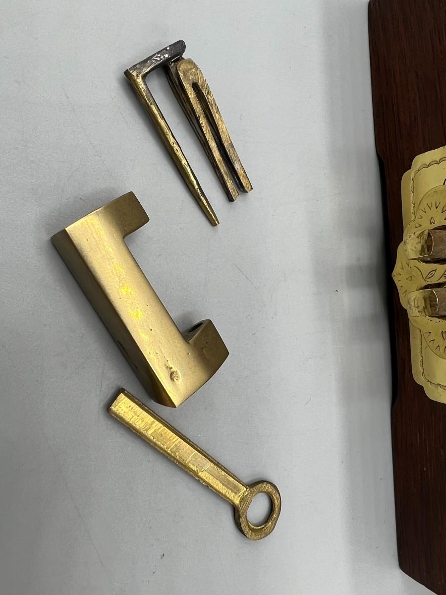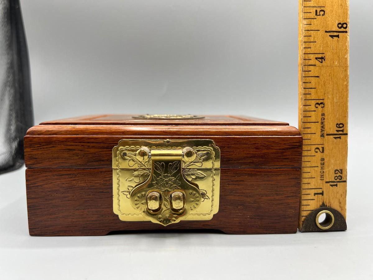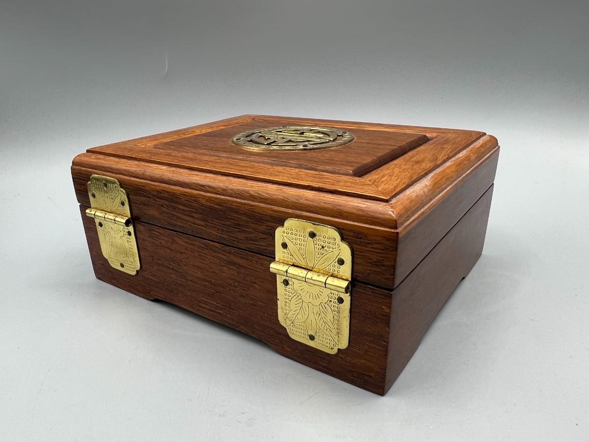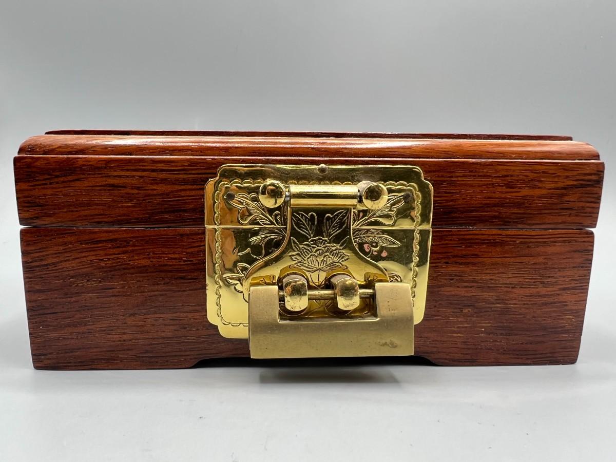 Vintage Chinese Asian Jewelry Trinket Box Wood Brass with Lock & Key