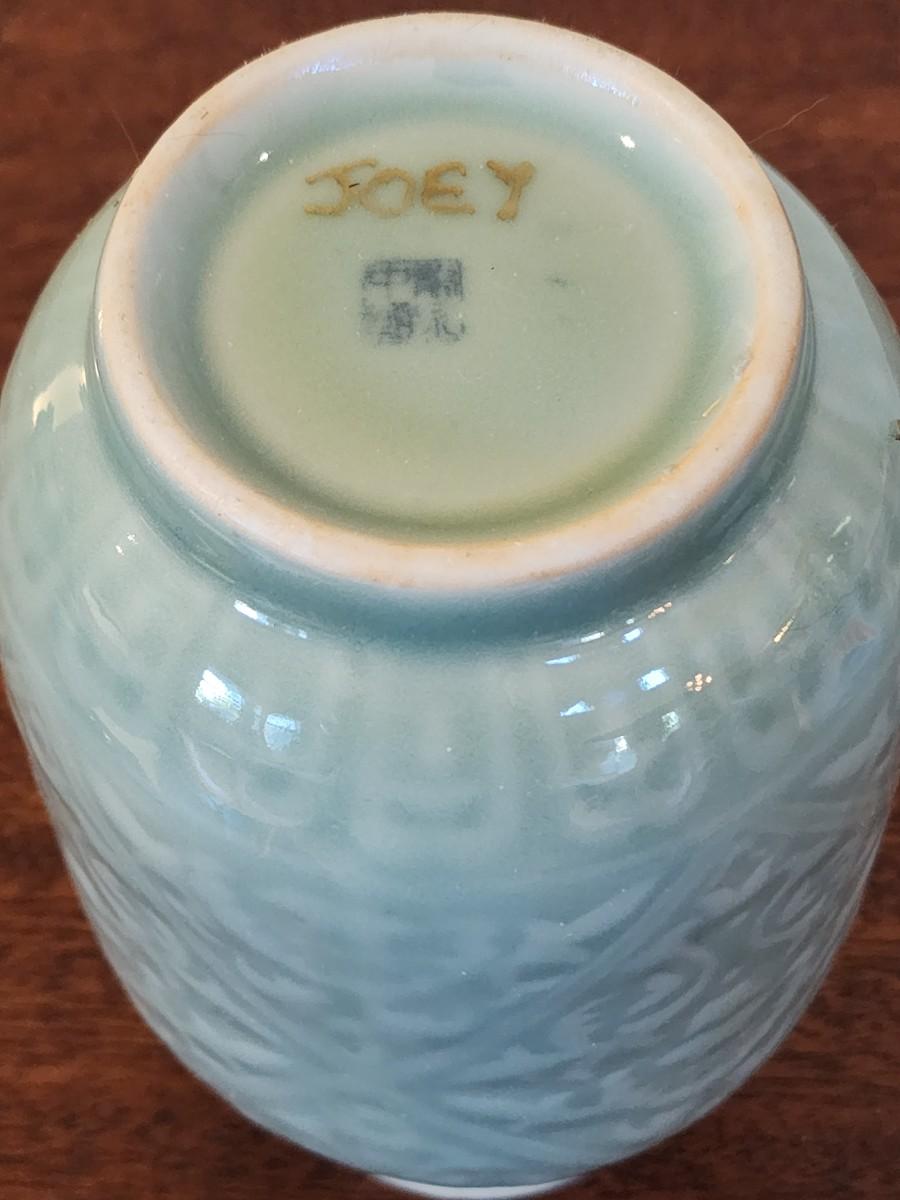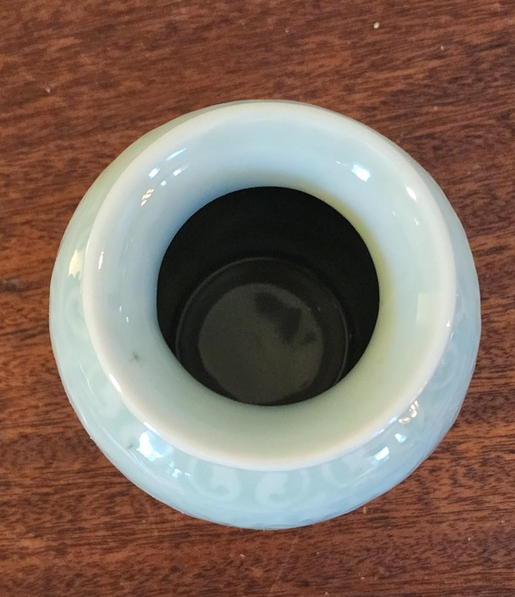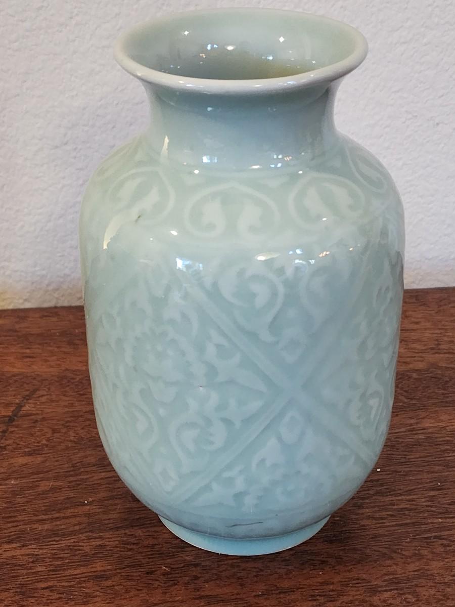 Beautiful 3D relief pattern and lustrous celadon glaze. 7" x 4 1/4