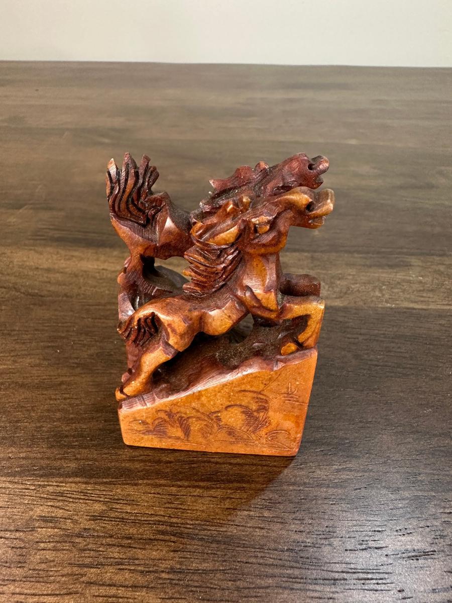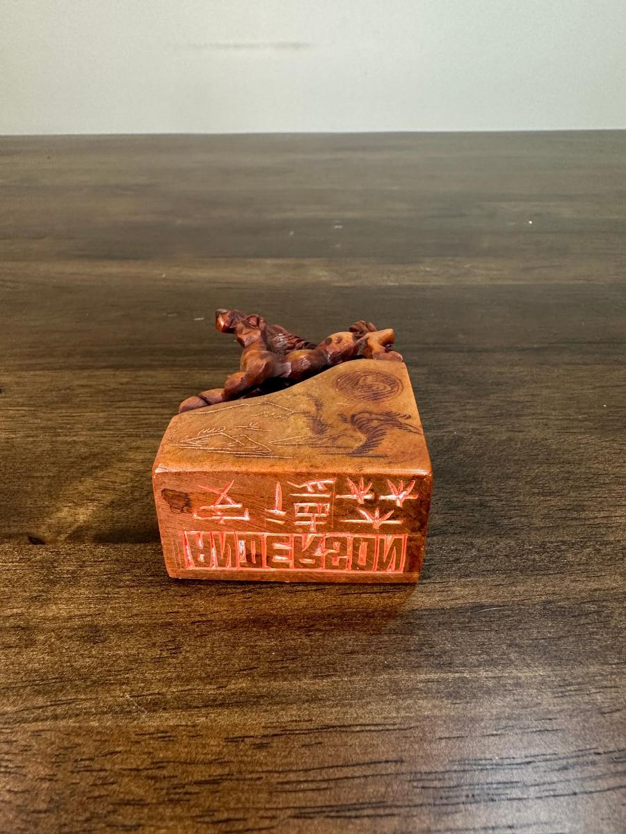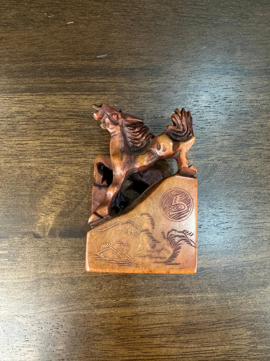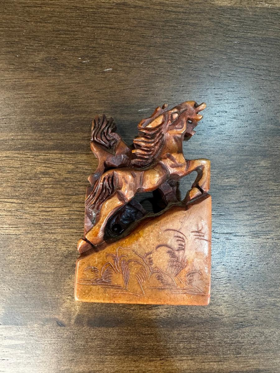 1. VINTAGE CHINESE CHOP STAMP WITH SOAPSTONE HORSES