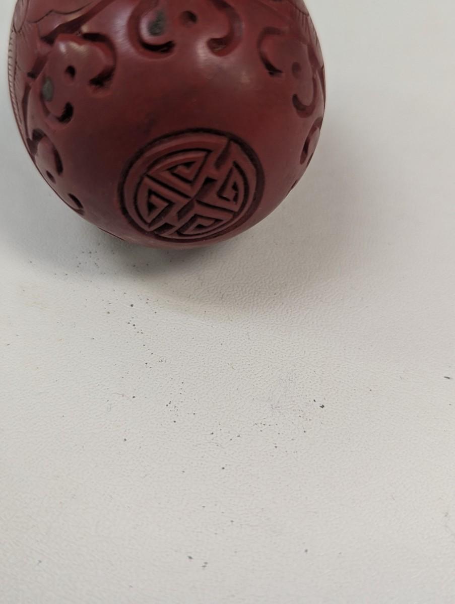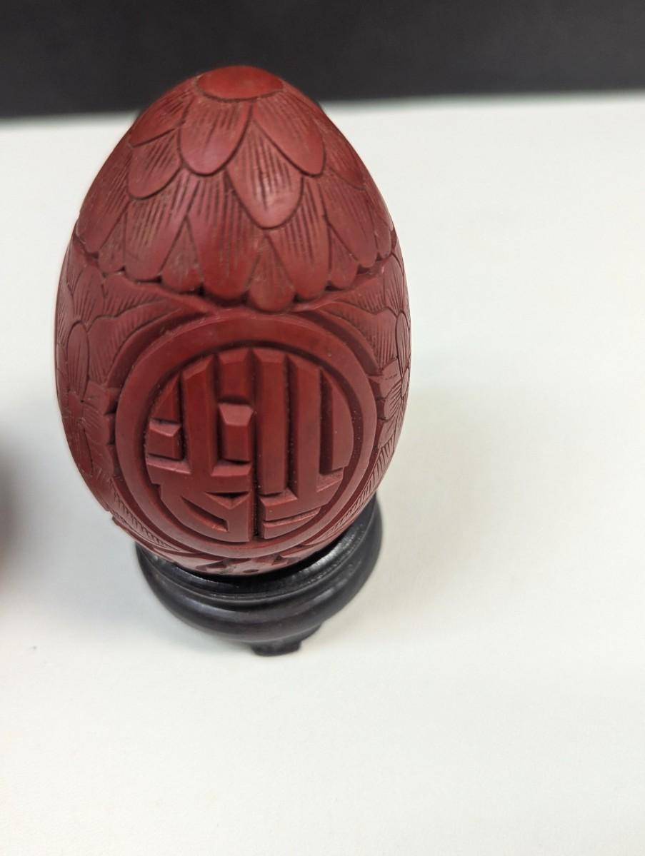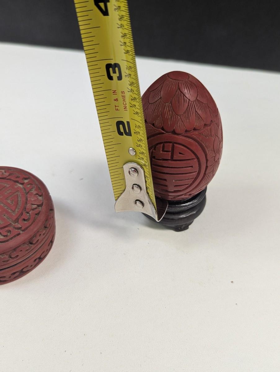 Vintage Chinese Cinnabar Lacquer Carved Wood Box & Carved Cinnabar Egg