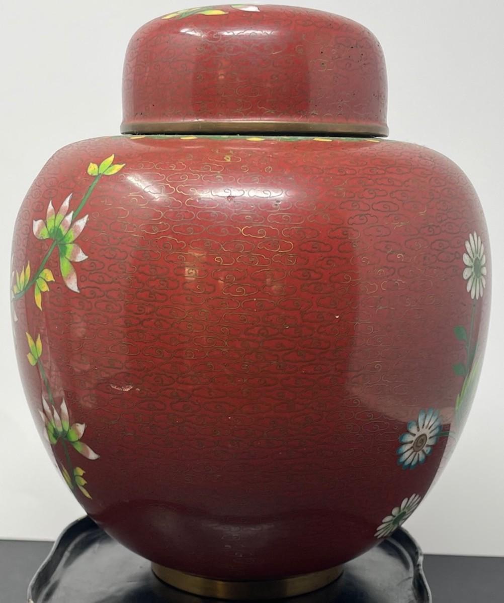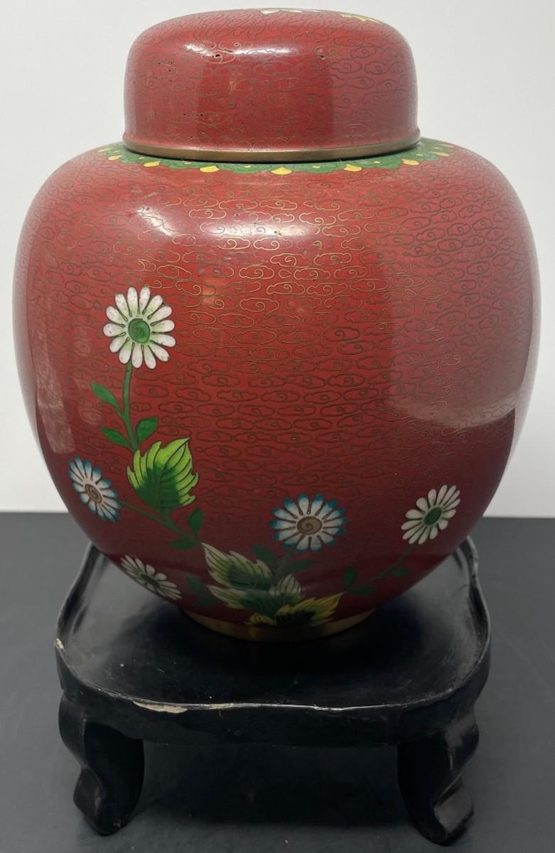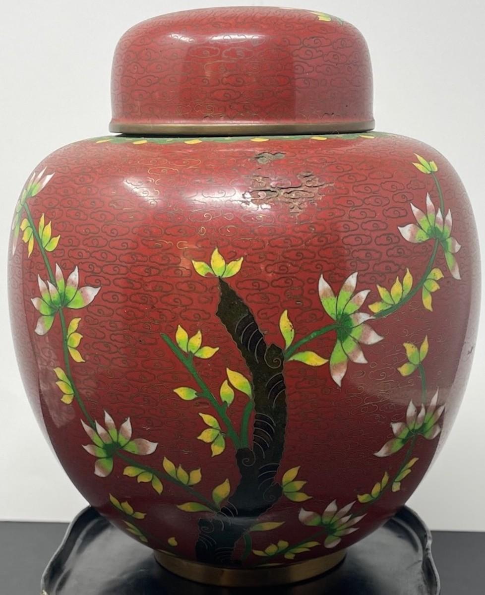 Vintage Chinese Cloisonné floral Ginger Jar / Cover