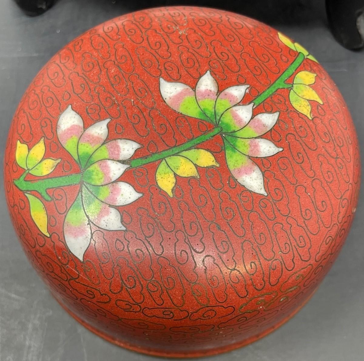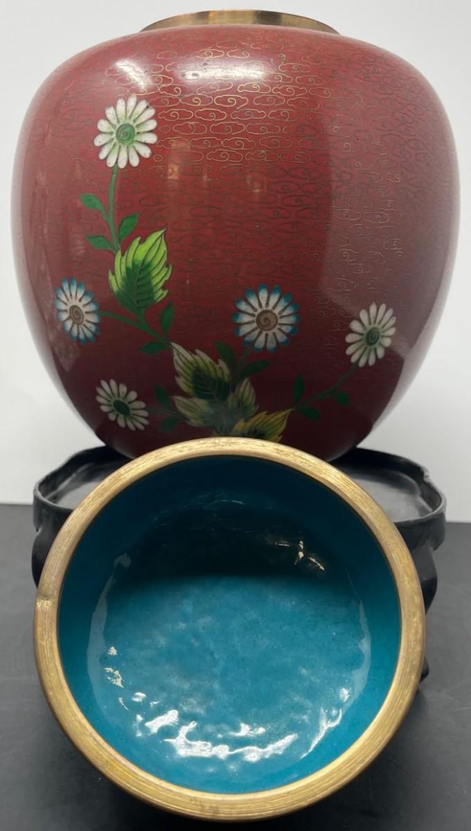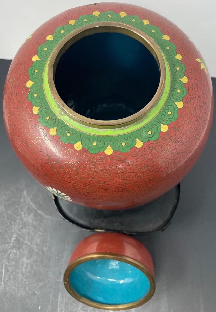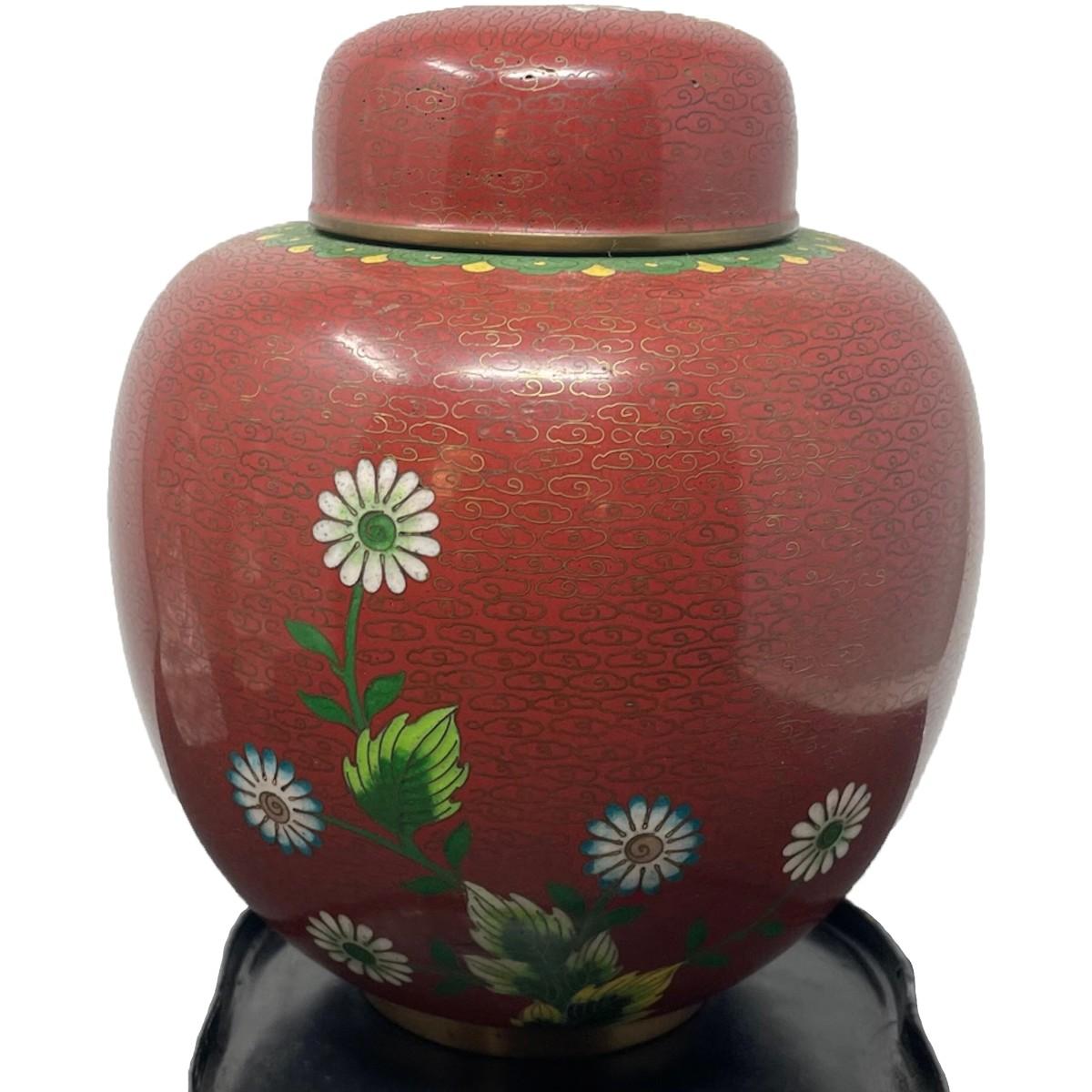 Vintage Chinese Cloisonné floral Ginger Jar / Cover