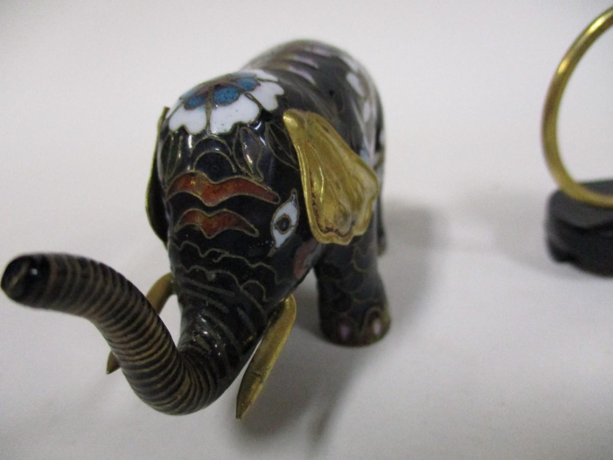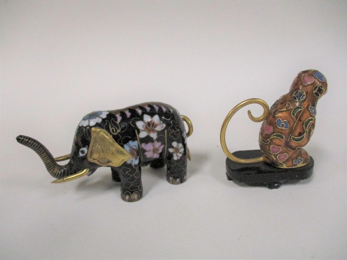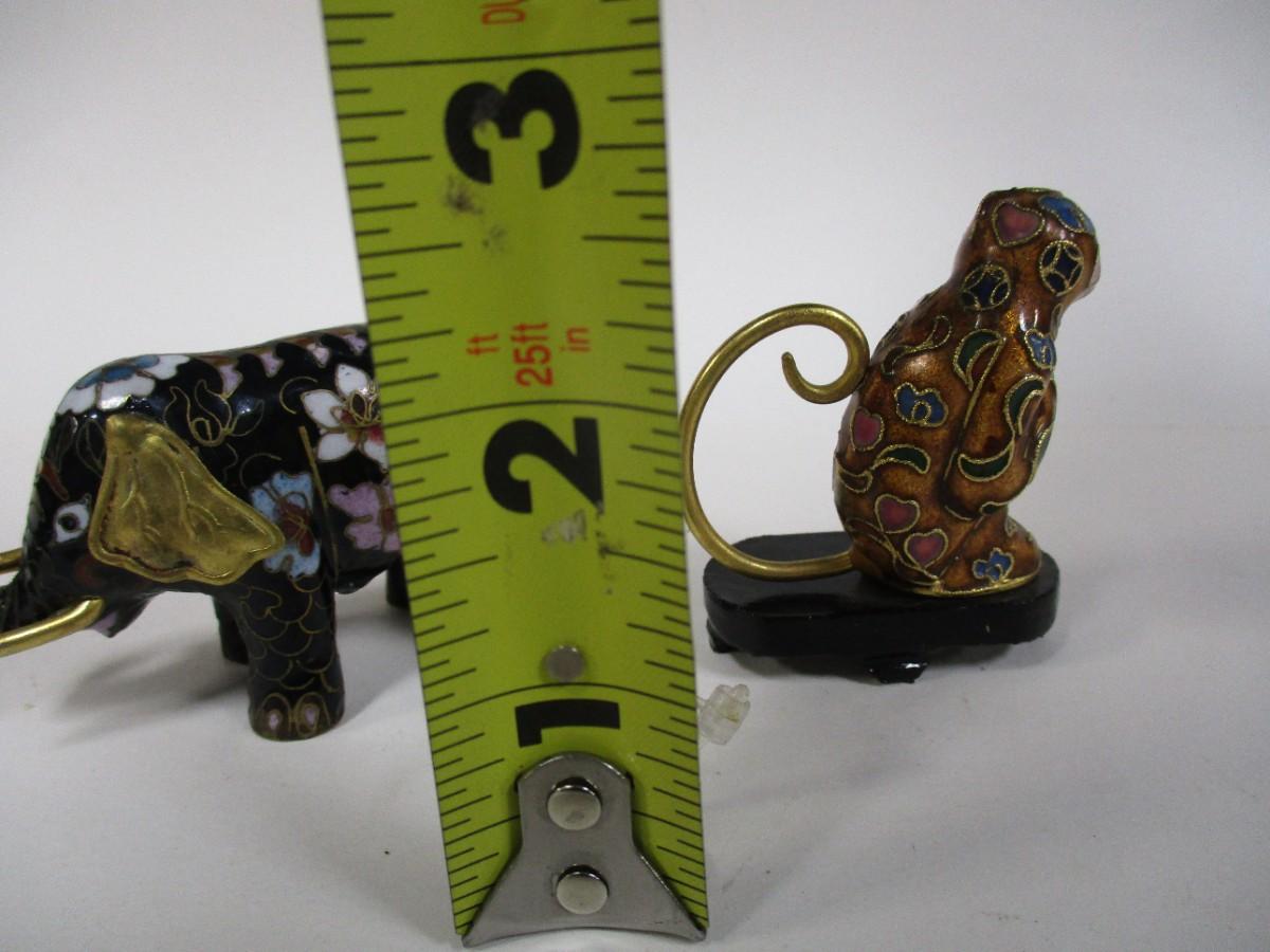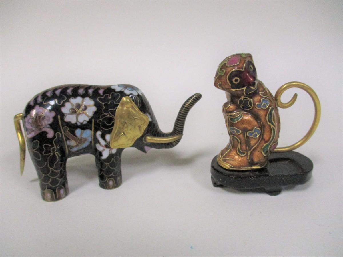 Vintage Chinese Cloisonne Copper Enameled Elephant & Monkey Figure