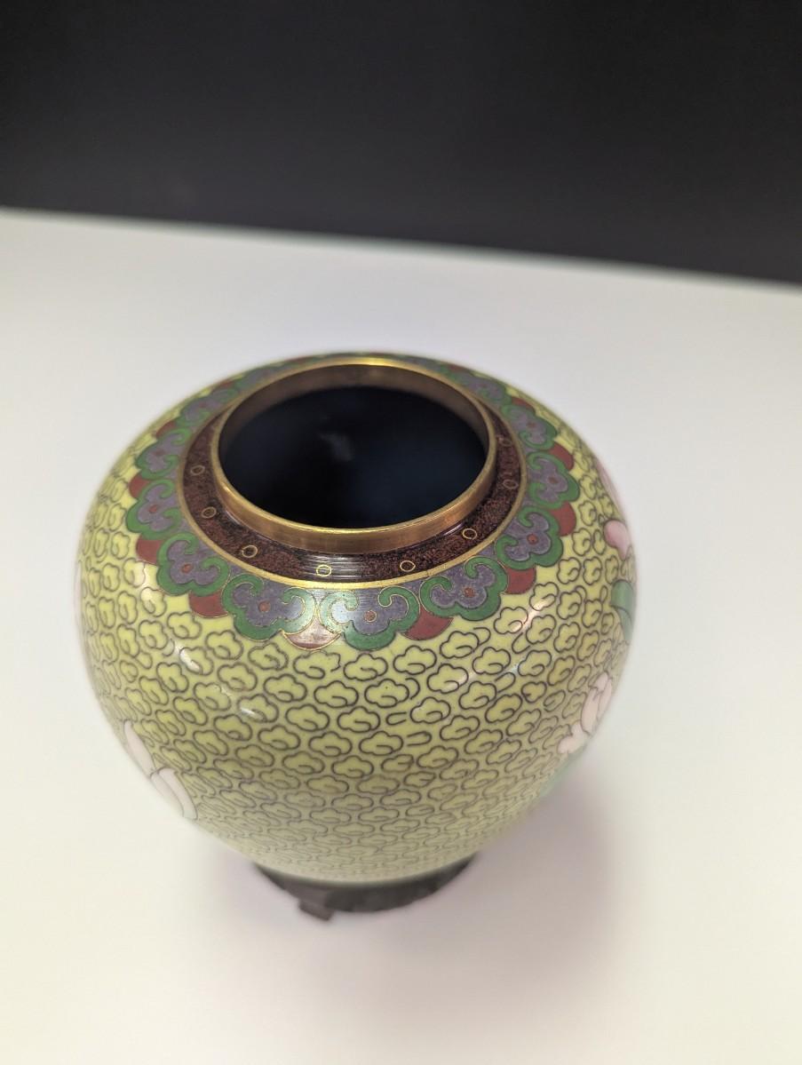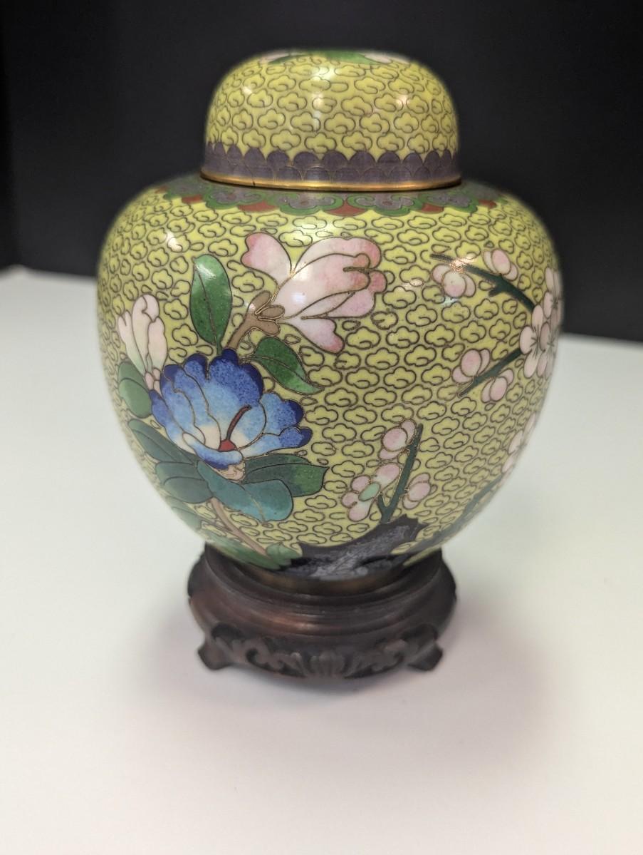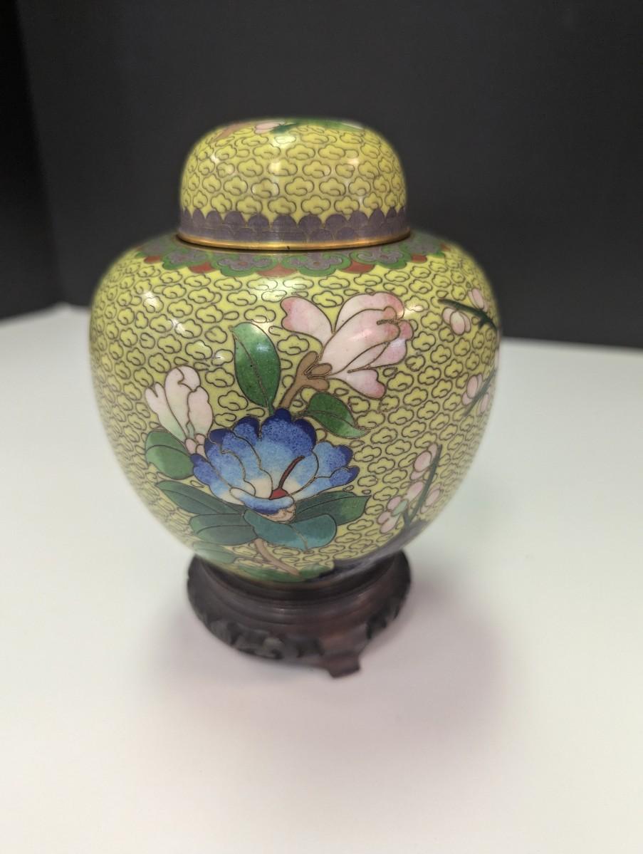 Vintage Chinese Cloisonne Ginger Jar With Lid Floral Design #1