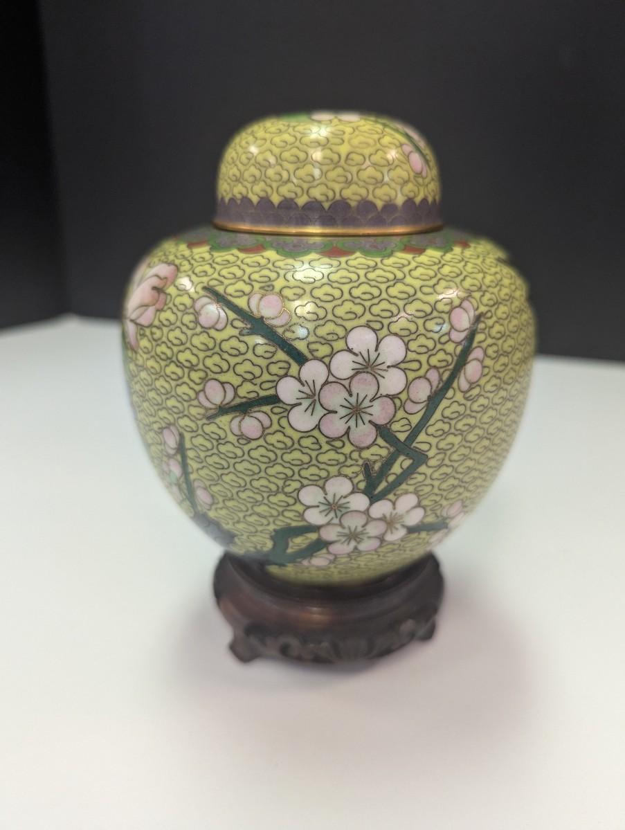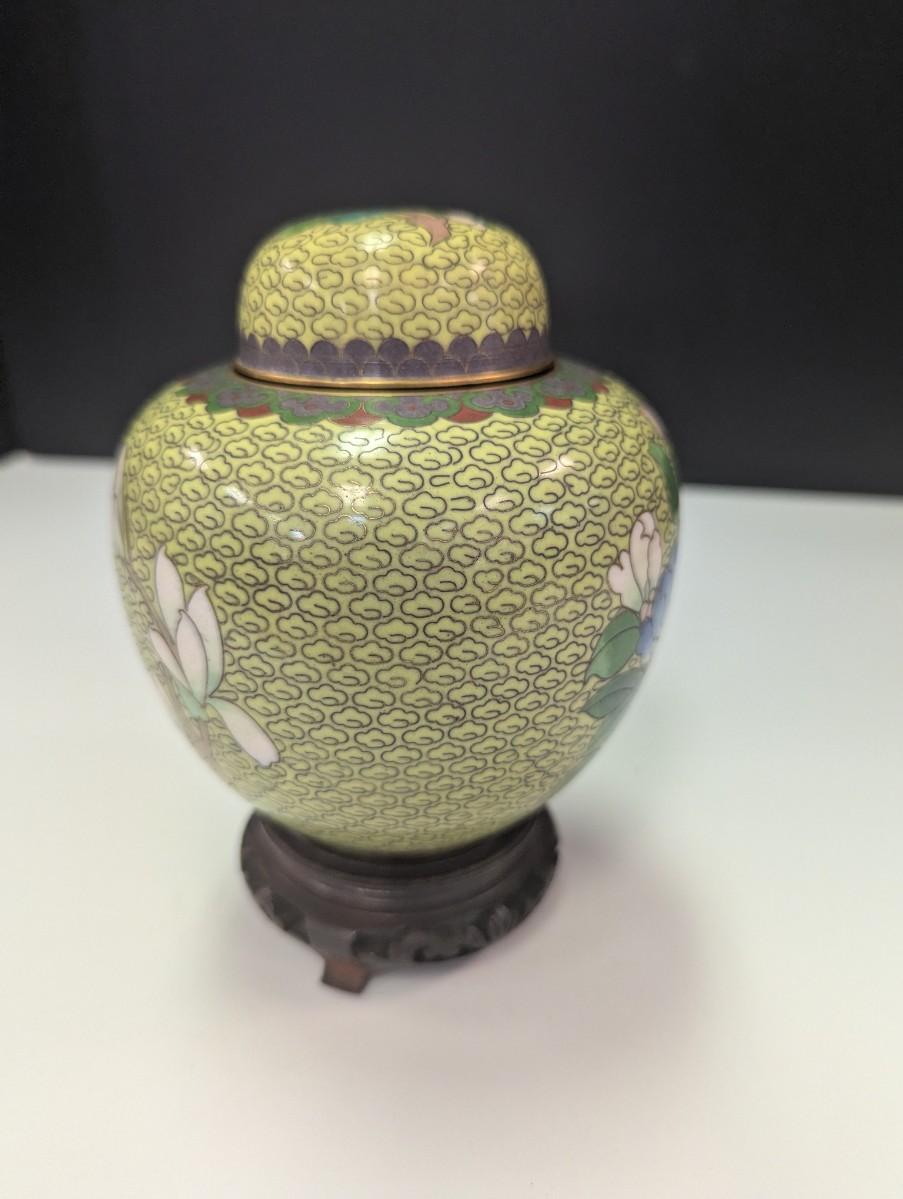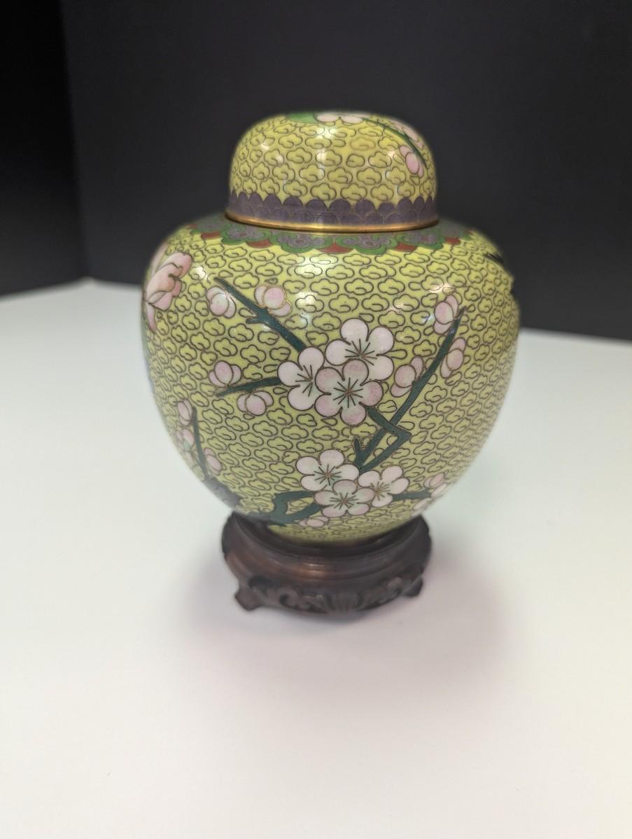 Vintage Chinese Cloisonne Ginger Jar With Lid Floral Design #2