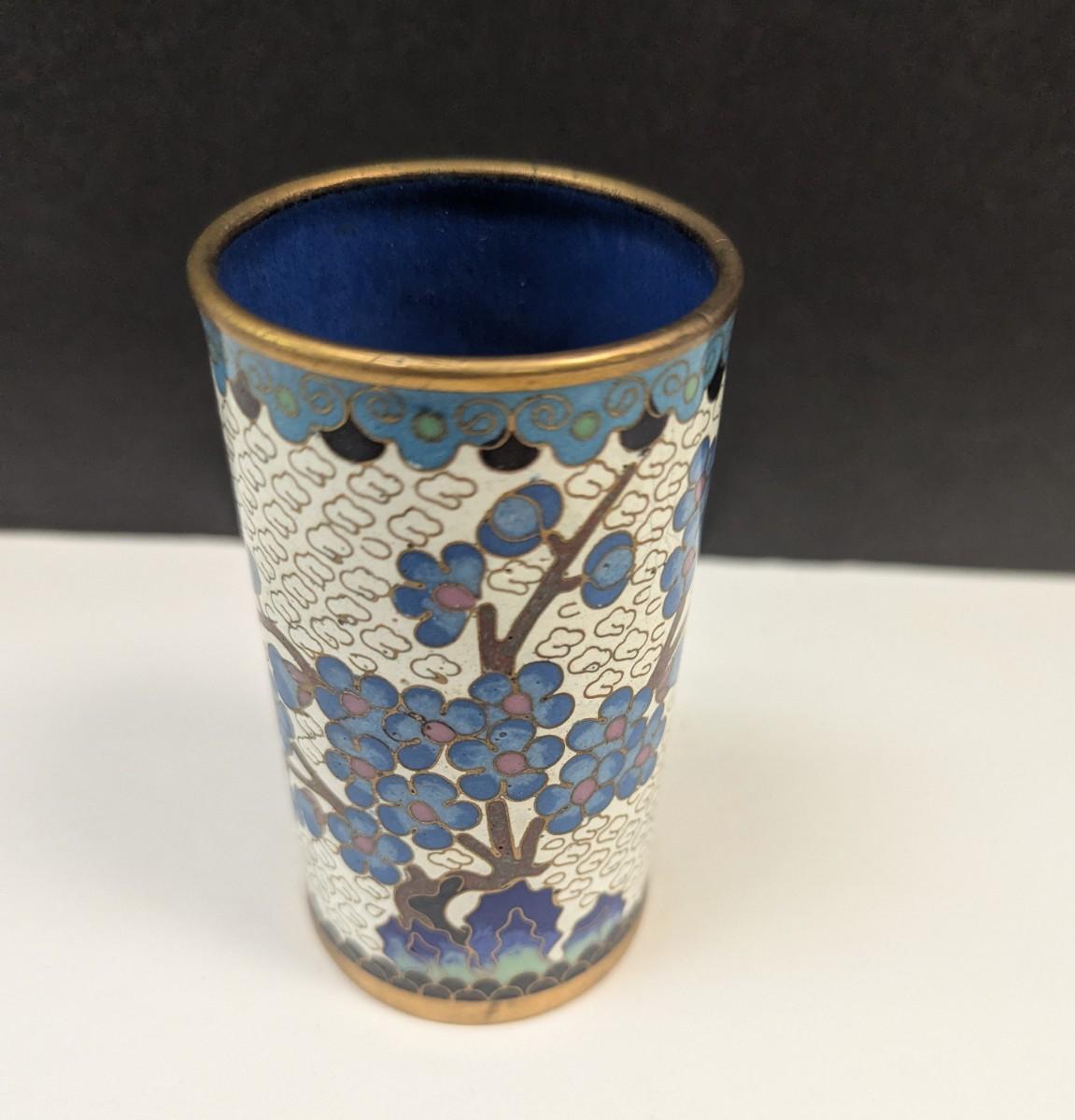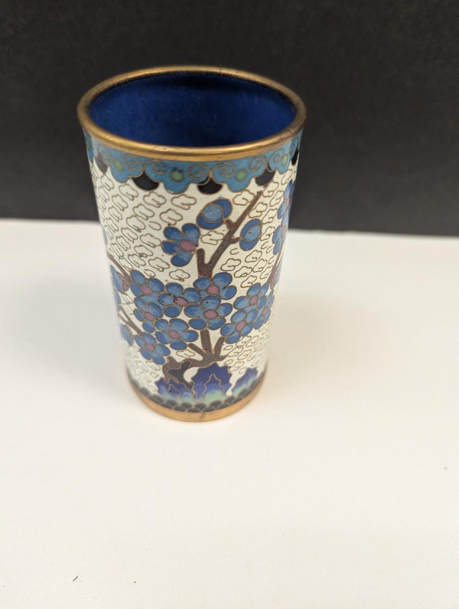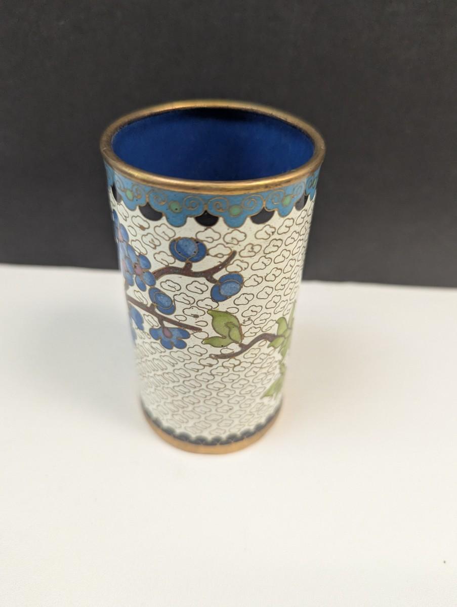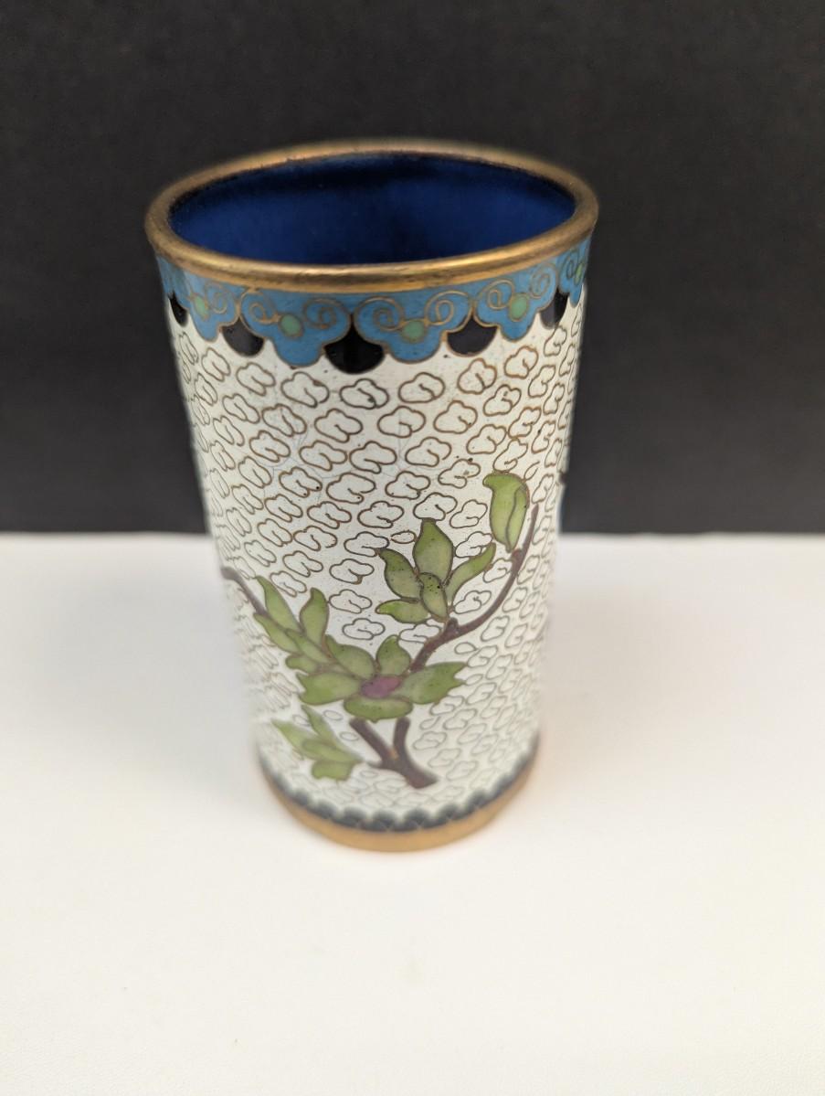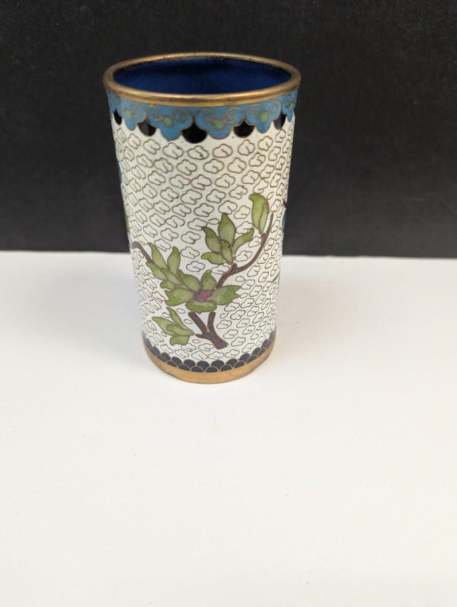 Vintage Chinese Cloisonne Pen Or Paint Pot Floral Enamel #3