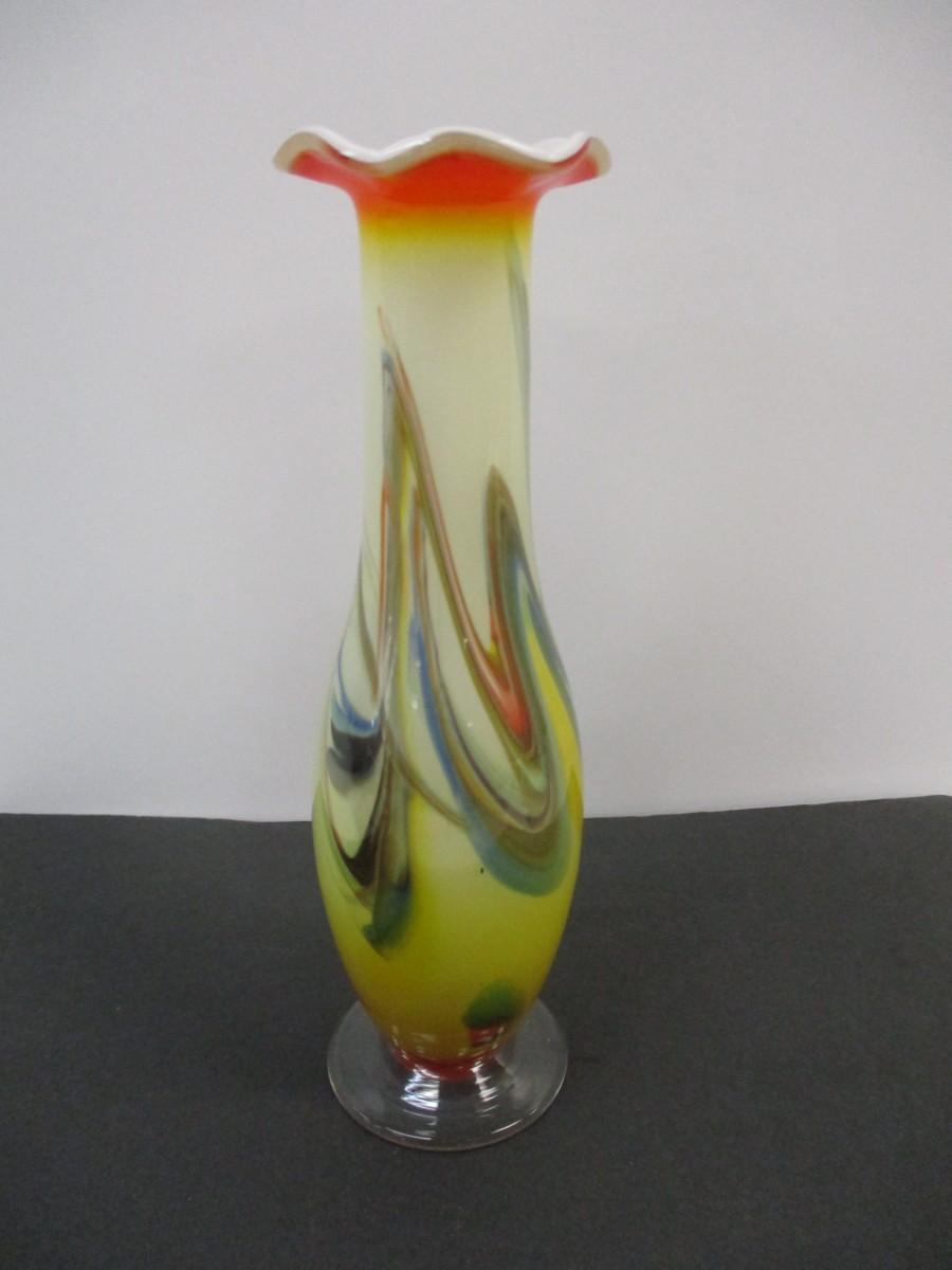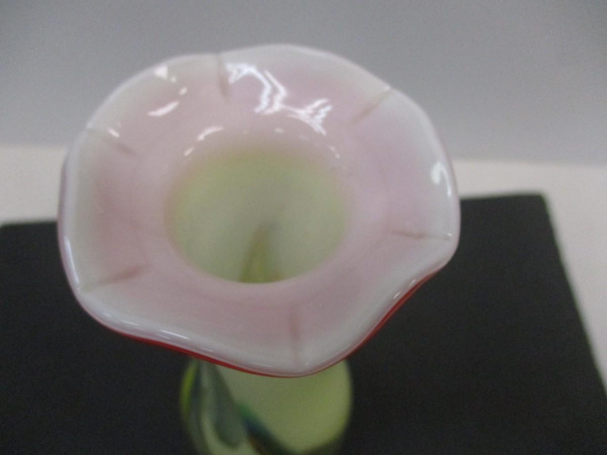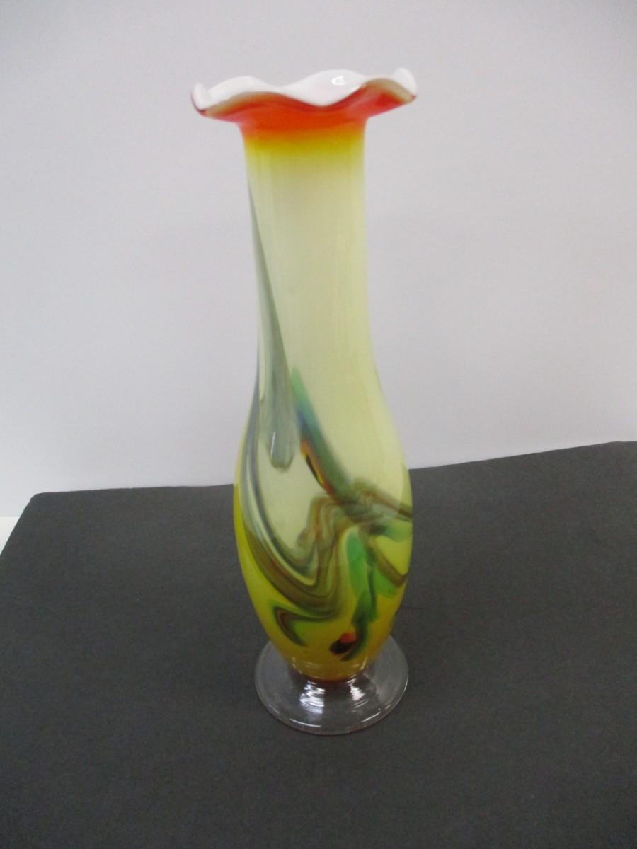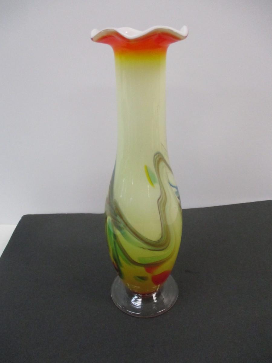 Vintage Chinese Dalian Glass Company ‘Snowflakes’ Vase Crimped Ruffled Top