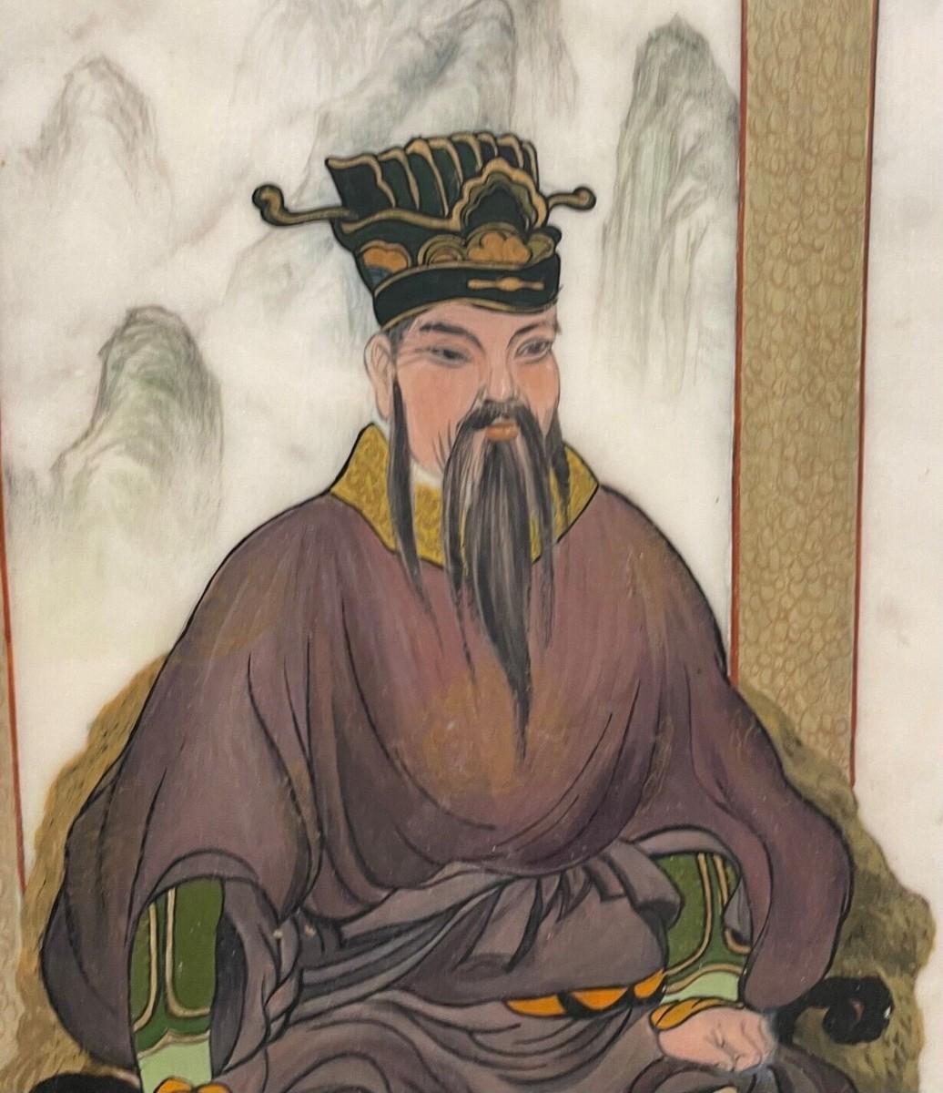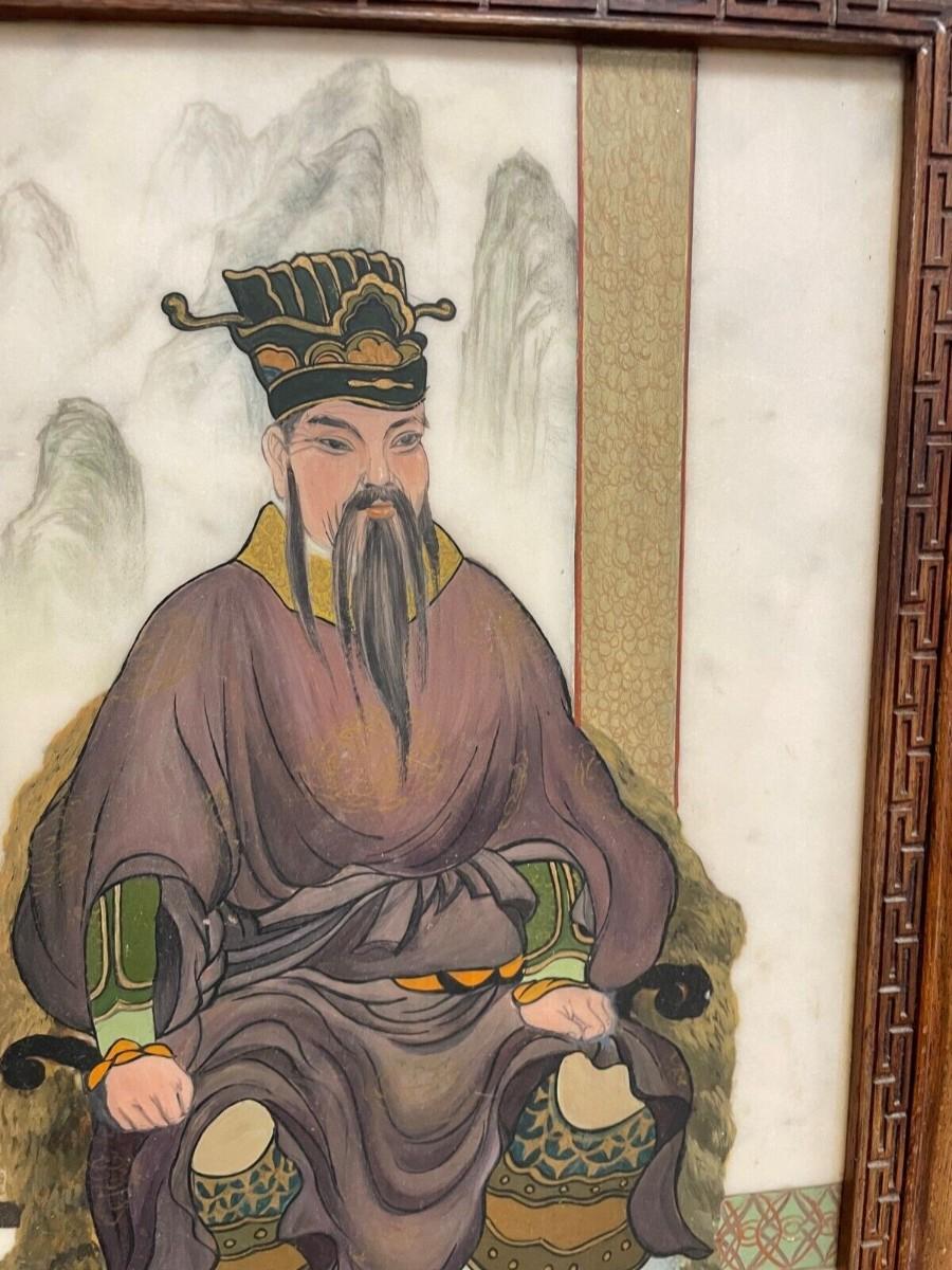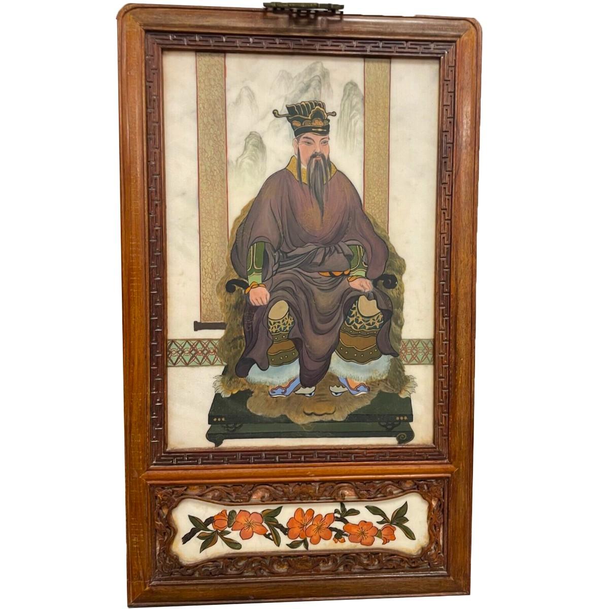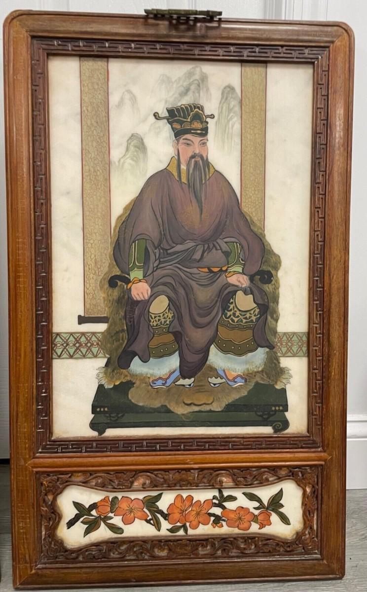 Vintage Chinese Emperor Hand oil Painting on Marble