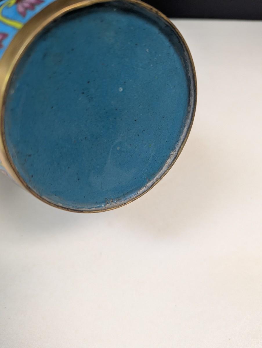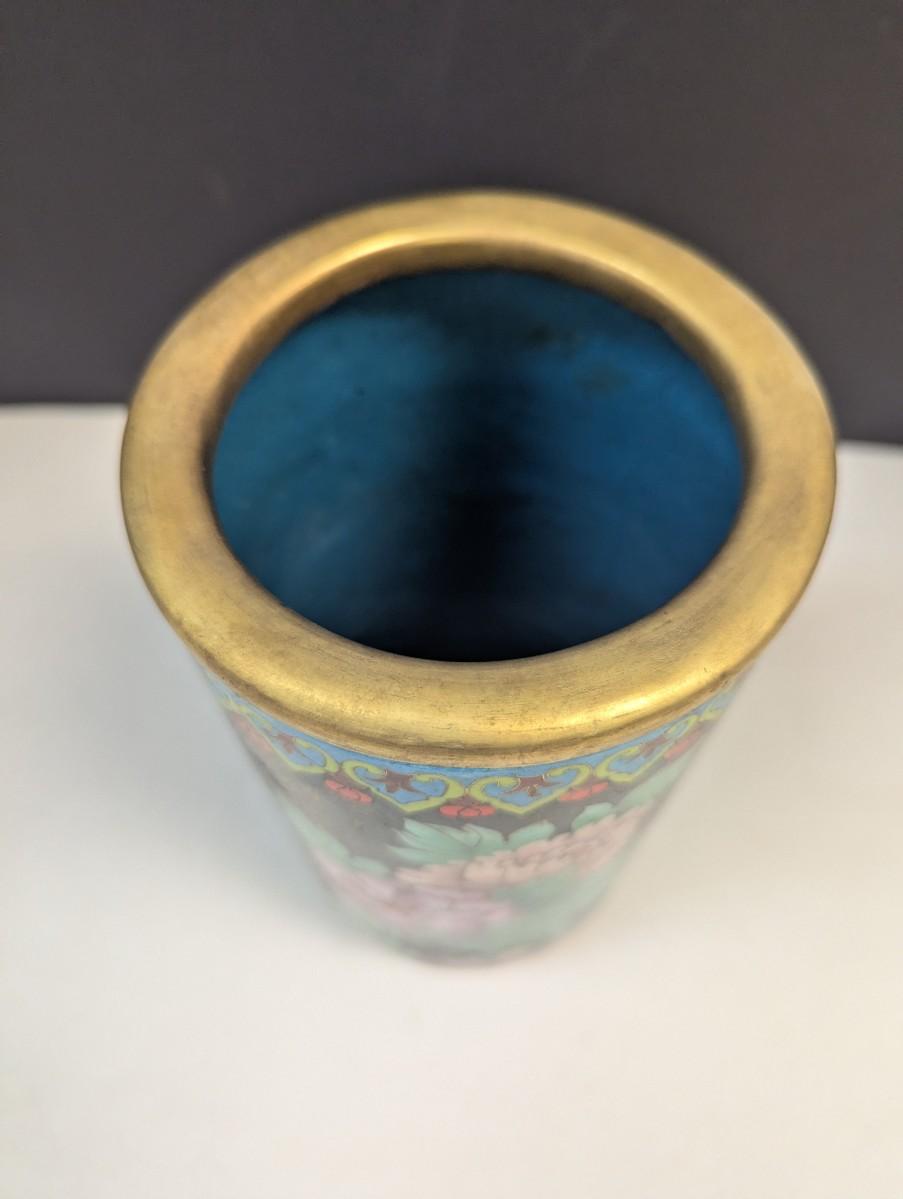 Vintage Chinese Enamel Cloisonne Cylinder Floral Vase Approx 9" Tall #2