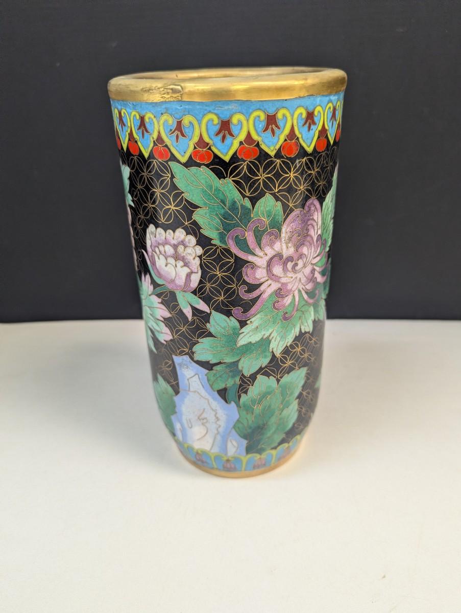 Vintage Chinese Enamel Cloisonne Cylinder Floral Vase Approx 9" #2