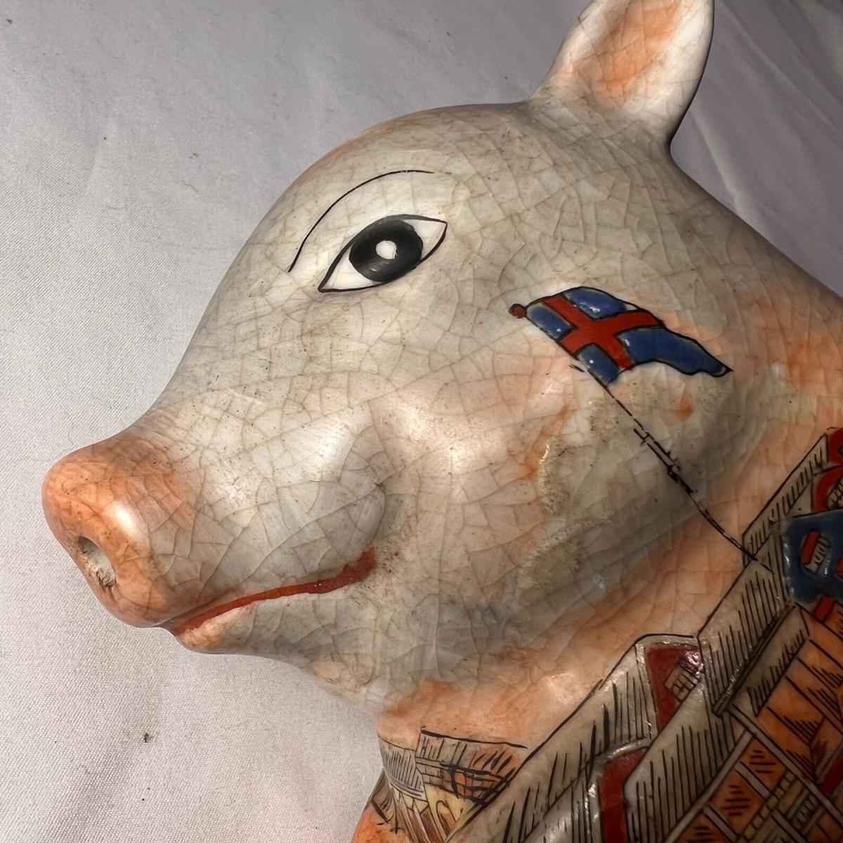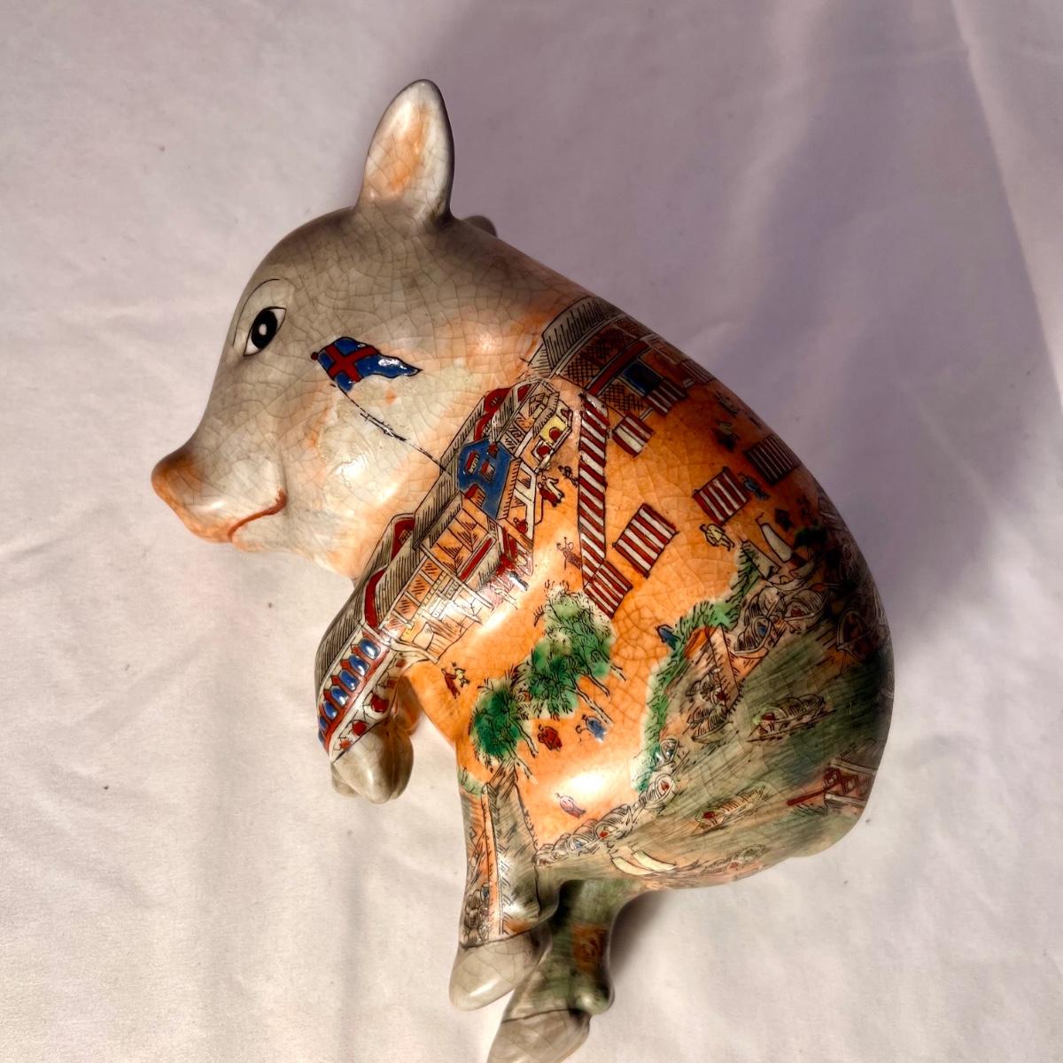 Vintage Chinese Famille Rose Lucky Pig Figurine (LR-RG)